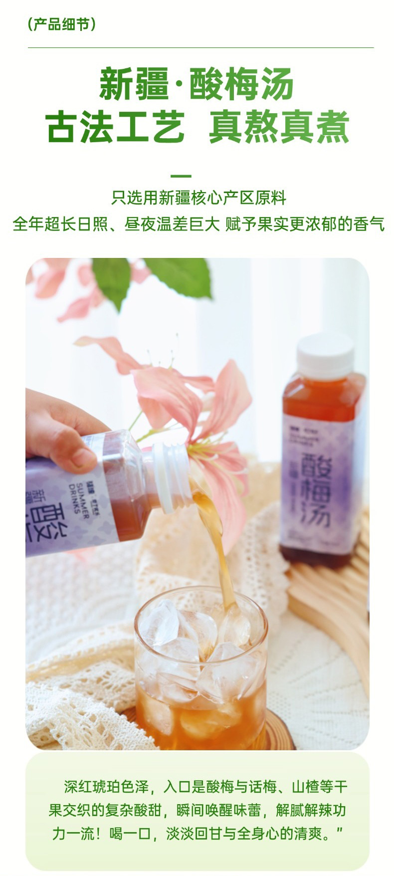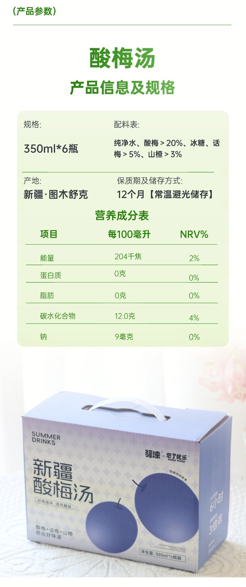 酸梅汤(加糖):纯净水、酸梅>20%、冰糖、话梅>5%、山楂>3%