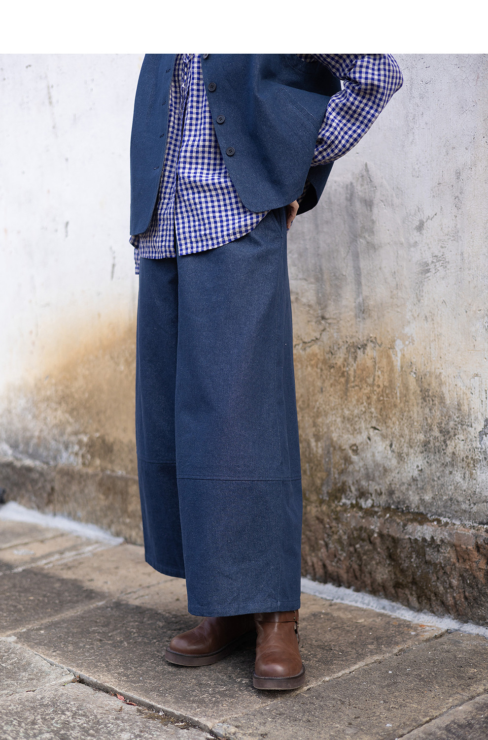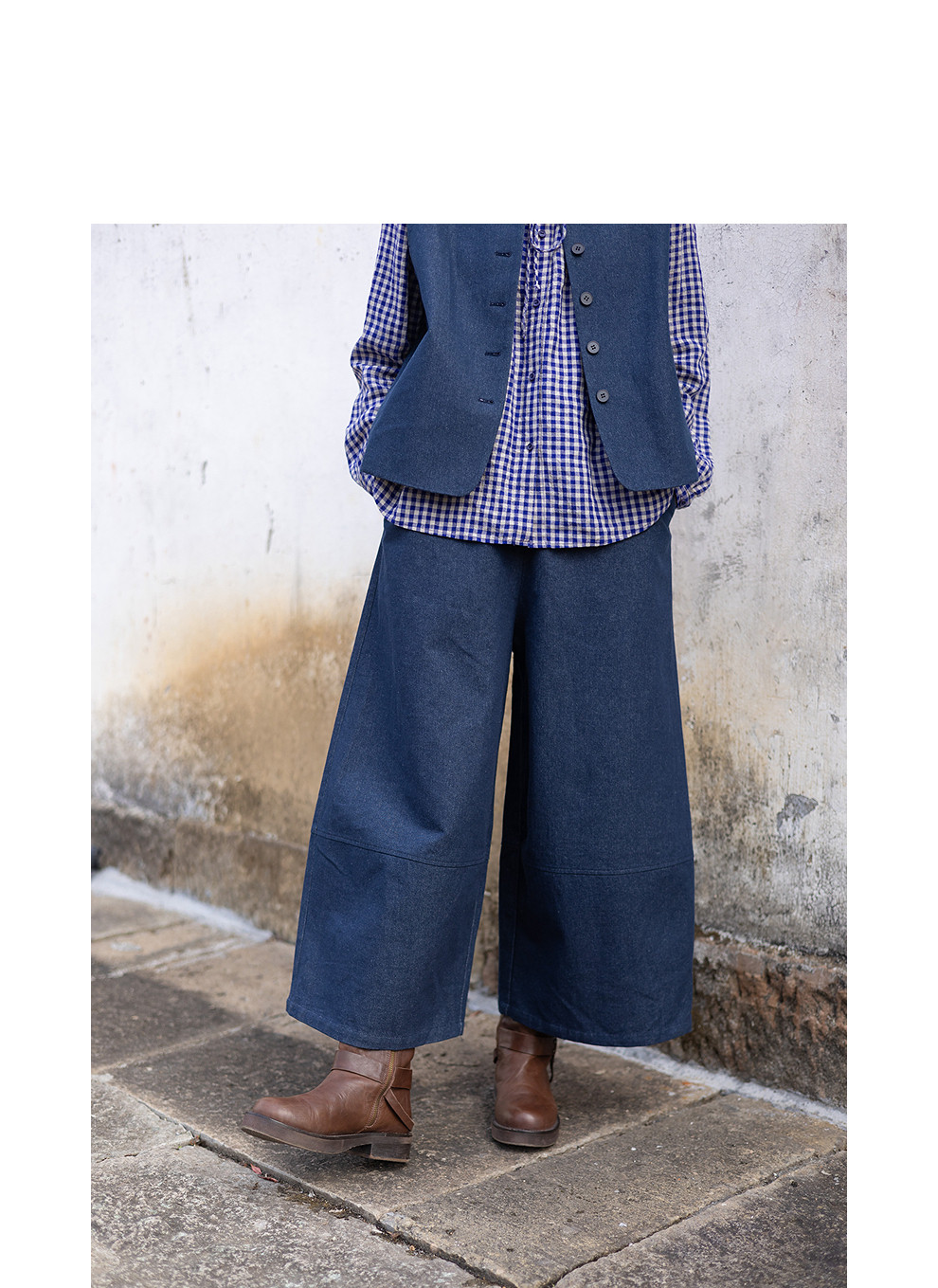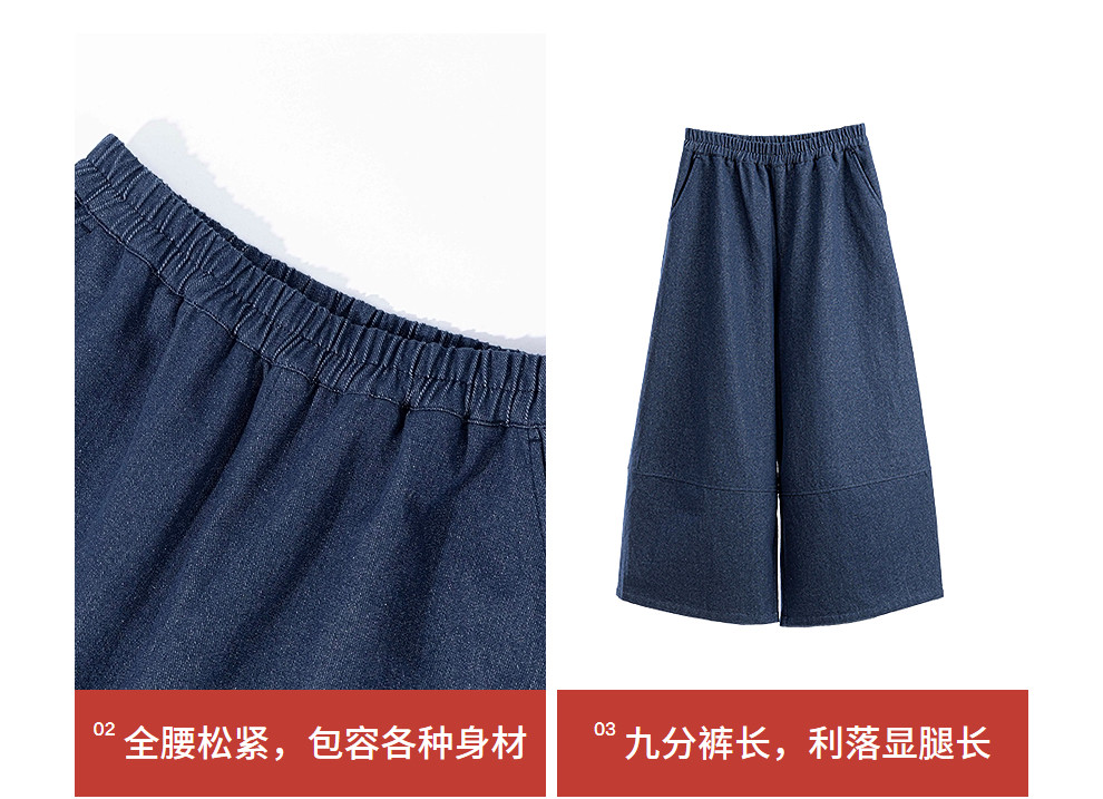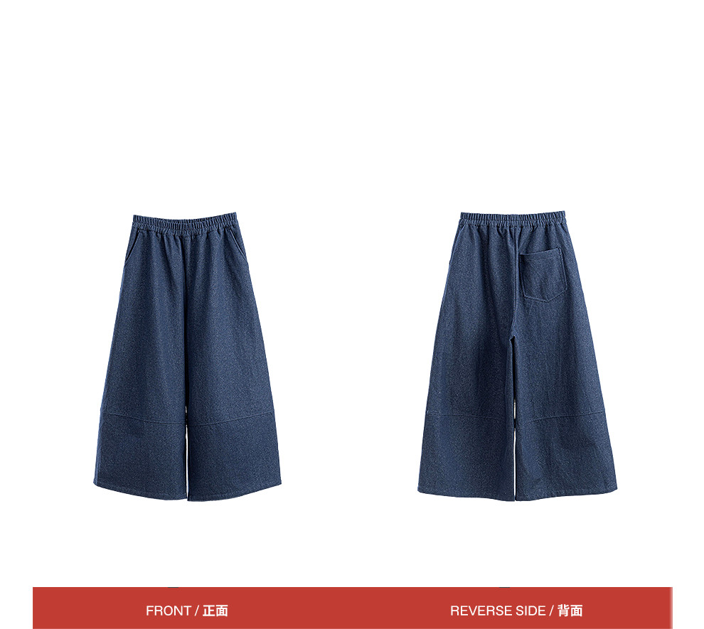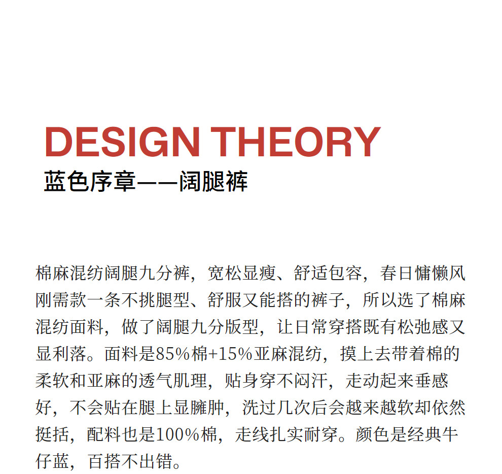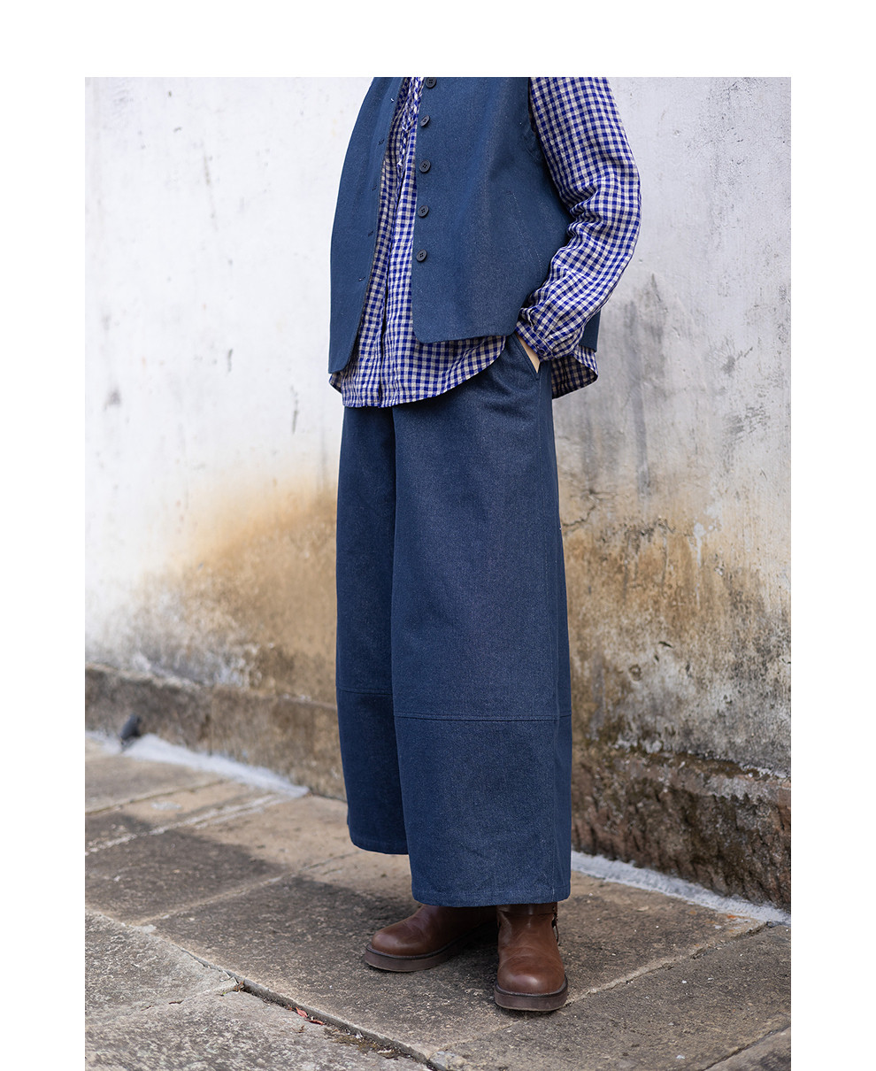 绽放004朵/ 蓝色序章-阔腿裤·棉麻混纺直筒休闲裤宽松显瘦九分裤