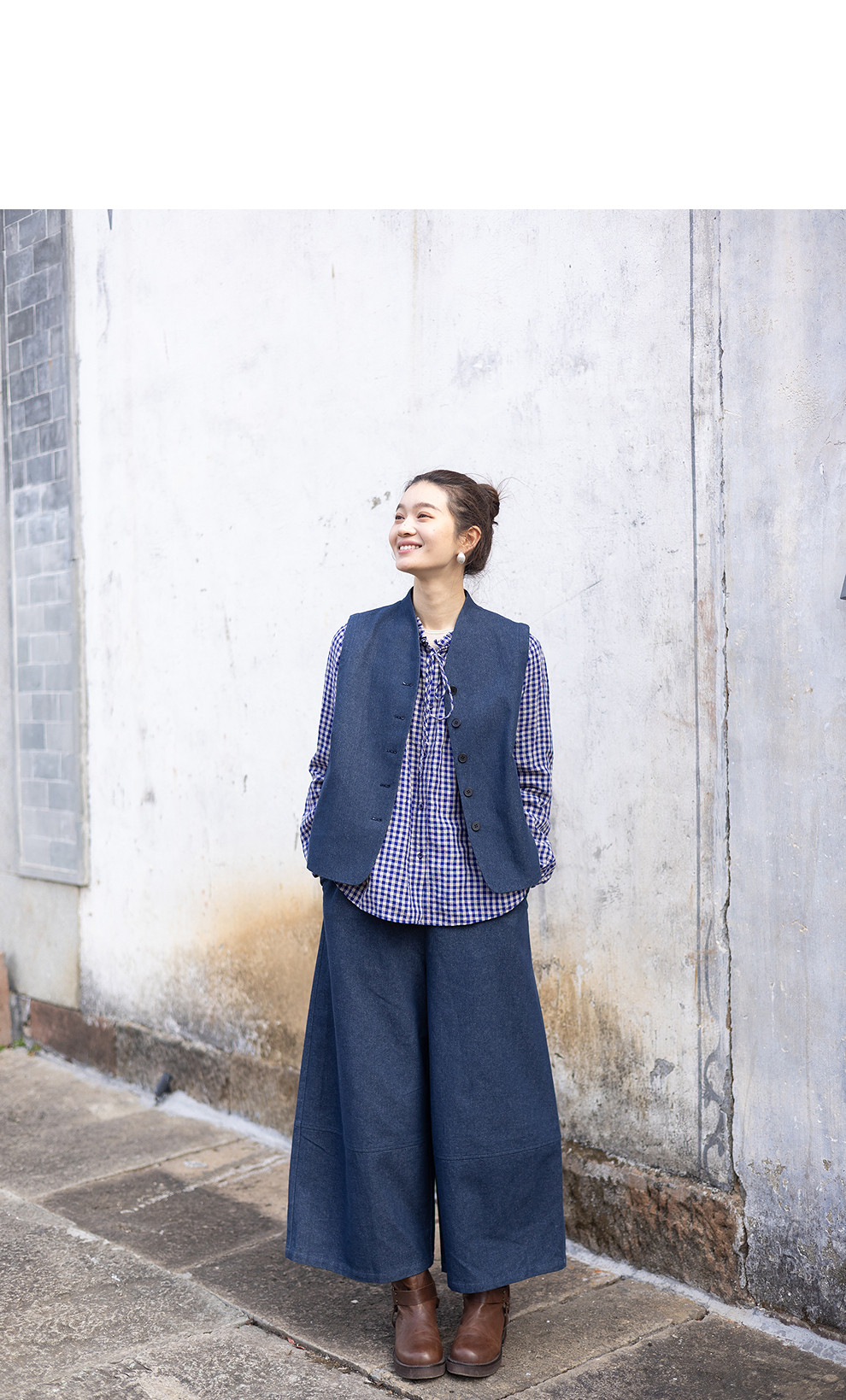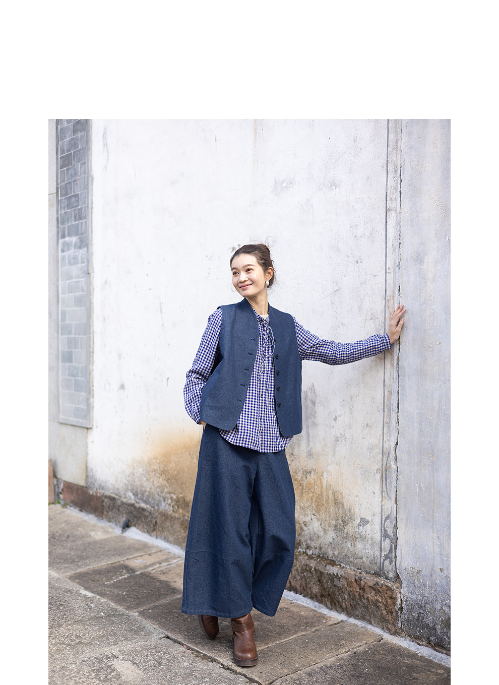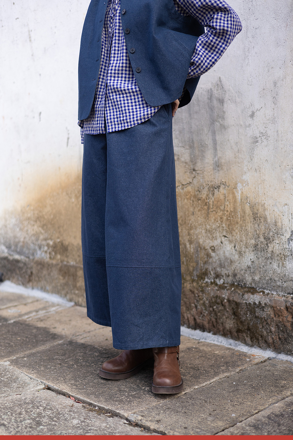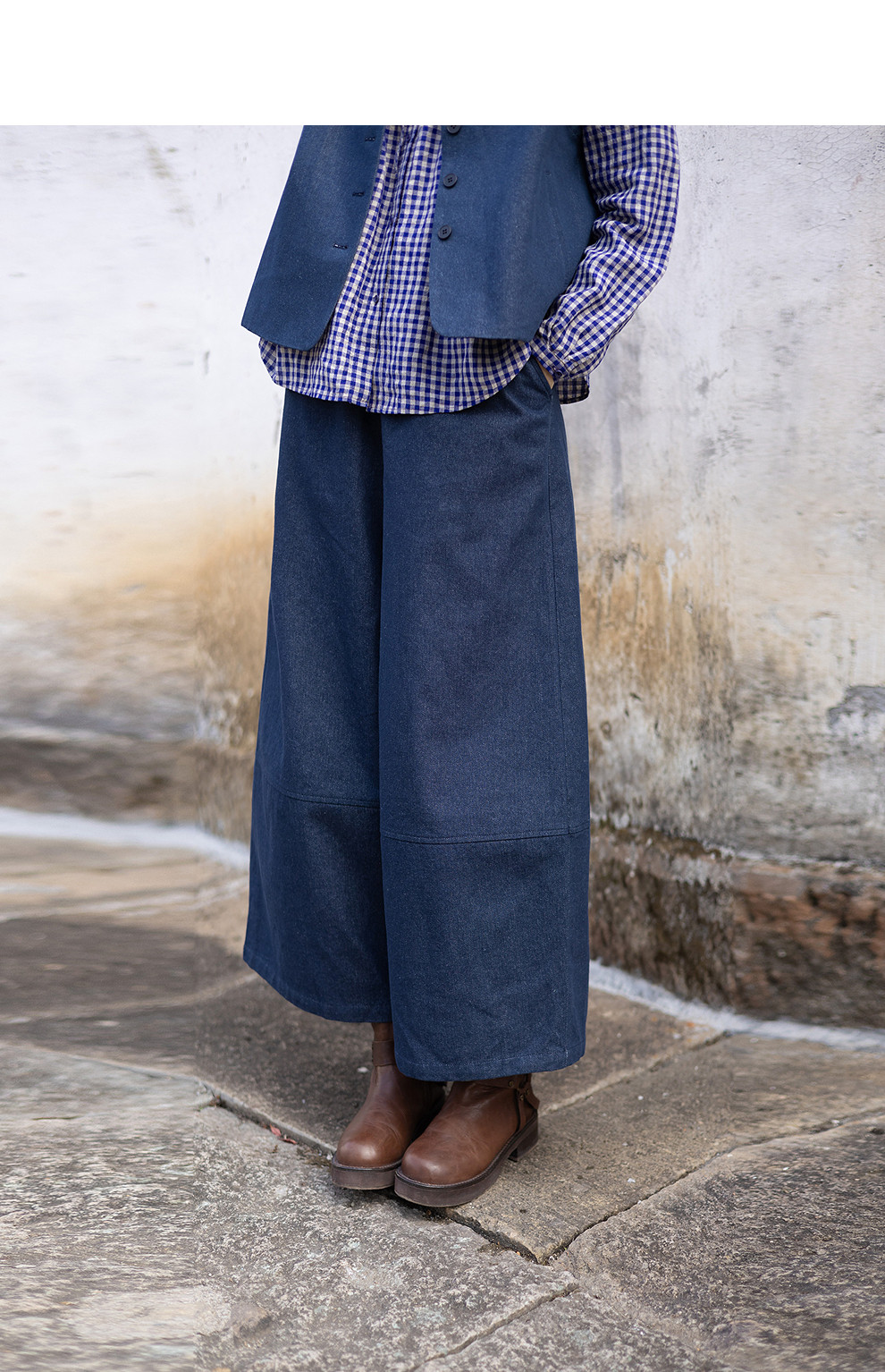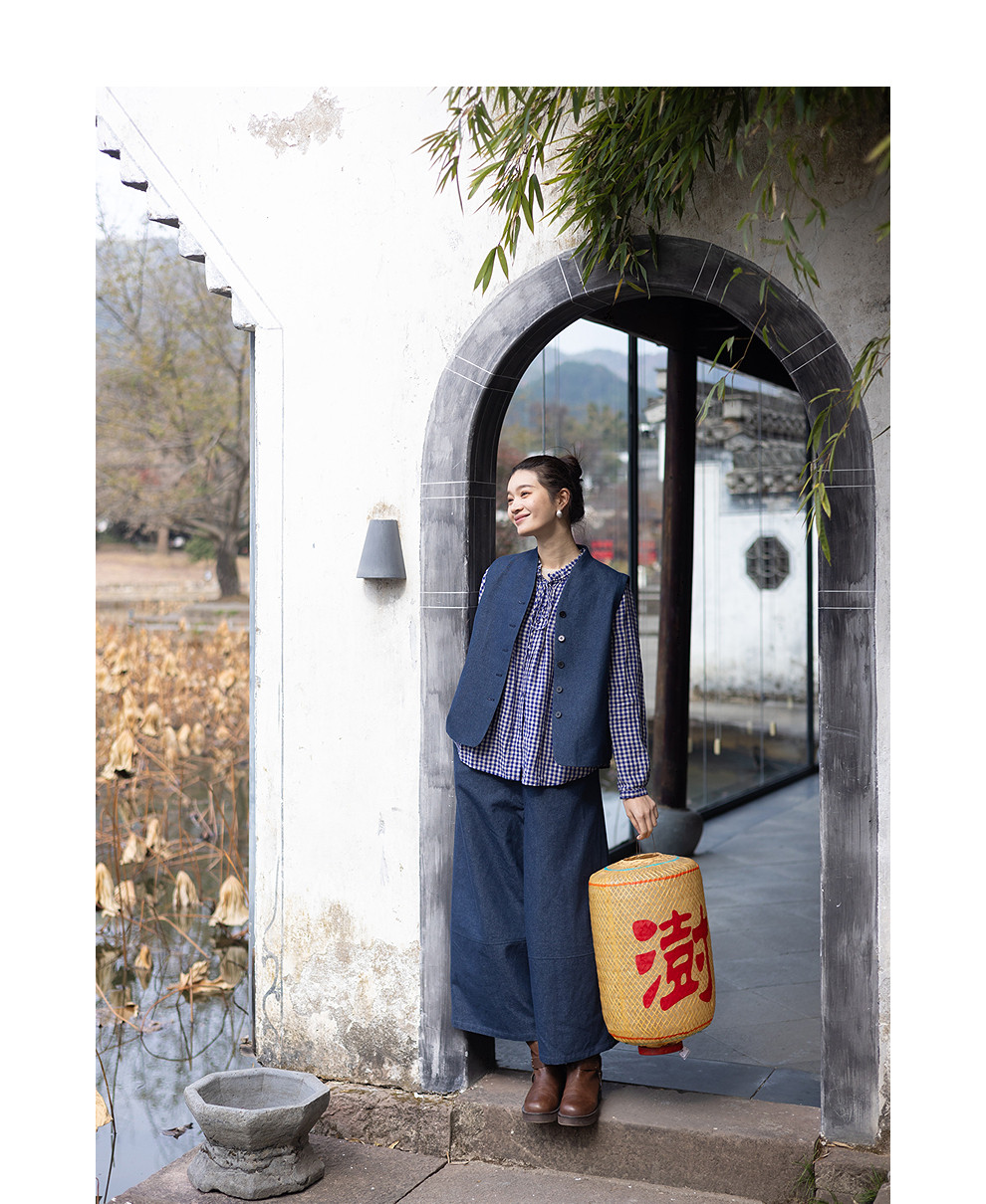 绽放004朵/ 蓝色序章-阔腿裤·棉麻混纺直筒休闲裤宽松显瘦九分裤