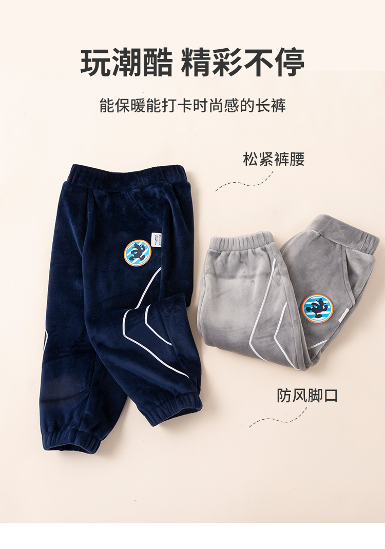 迪士尼童装2024秋冬新款加绒保暖长裤小男孩时尚休闲裤束脚裤224DK0435