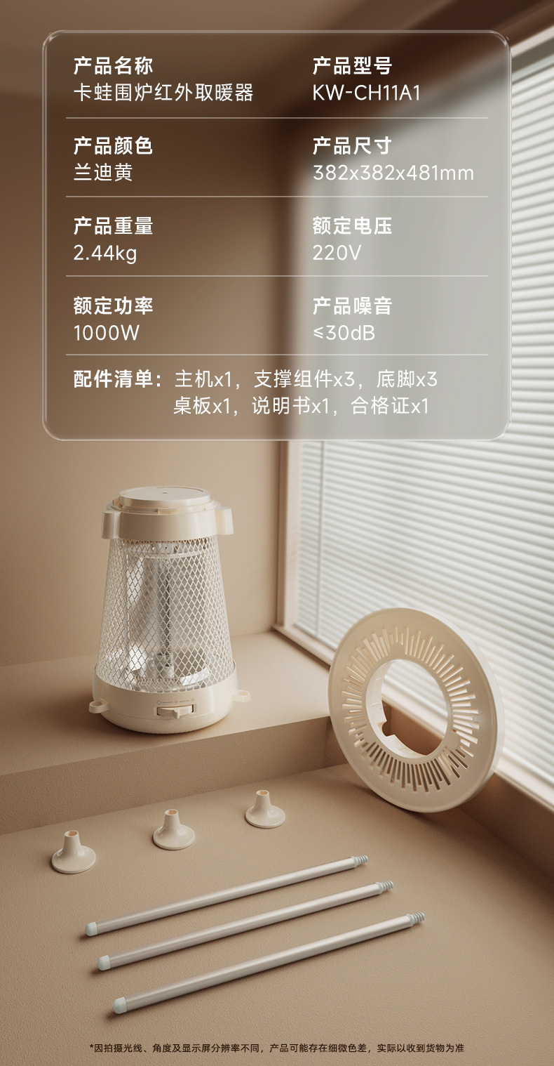 卡蛙围炉红外取暖器, 能让一家人围在一起的取暖器,3秒速热,暖人、暖茶、暖物又暖心 [72小时发货]