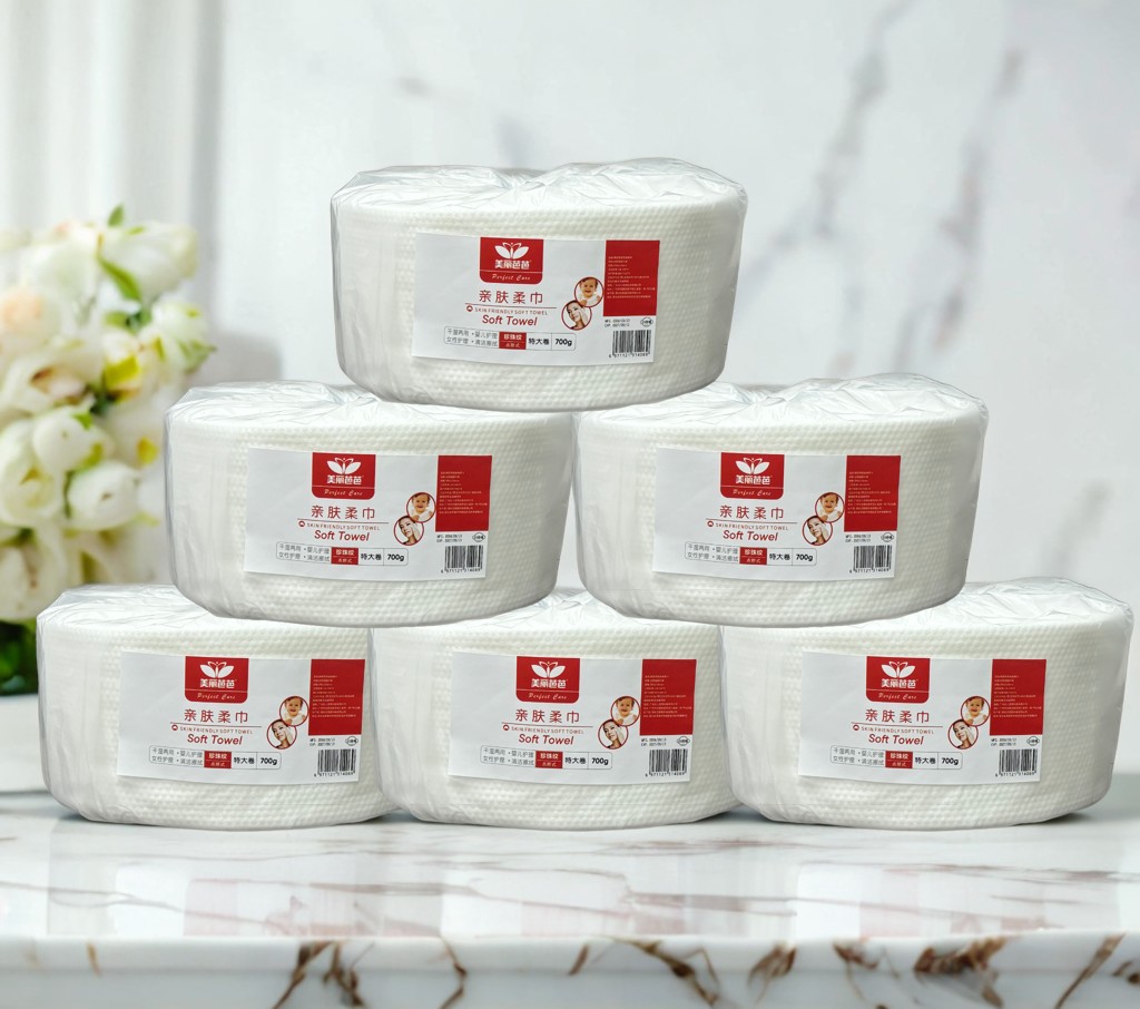 美丽芭芭-珍珠棉纯棉加厚柔巾卷 一次性洗脸巾 卷巾面巾(红标每卷约700g)加厚