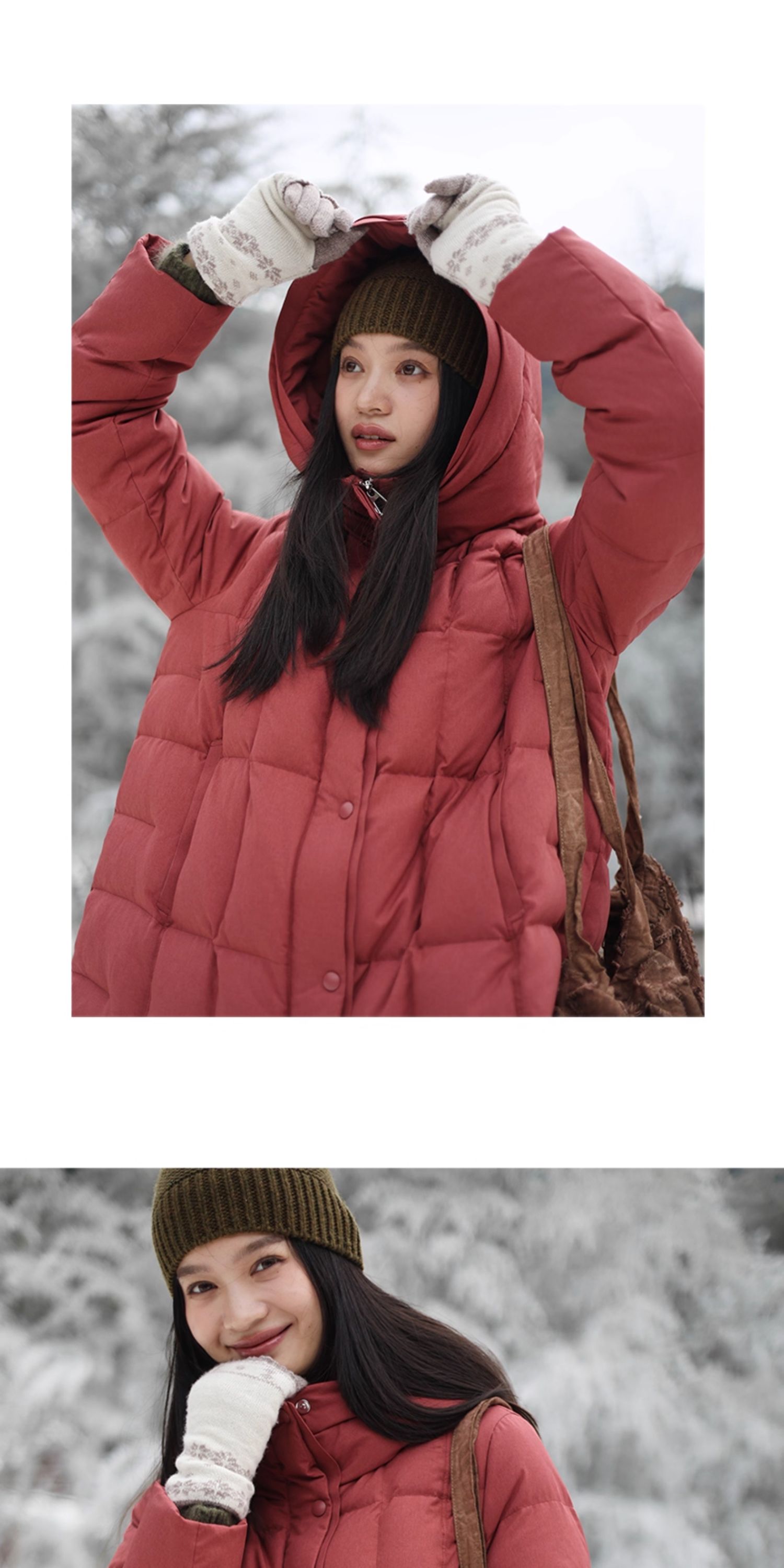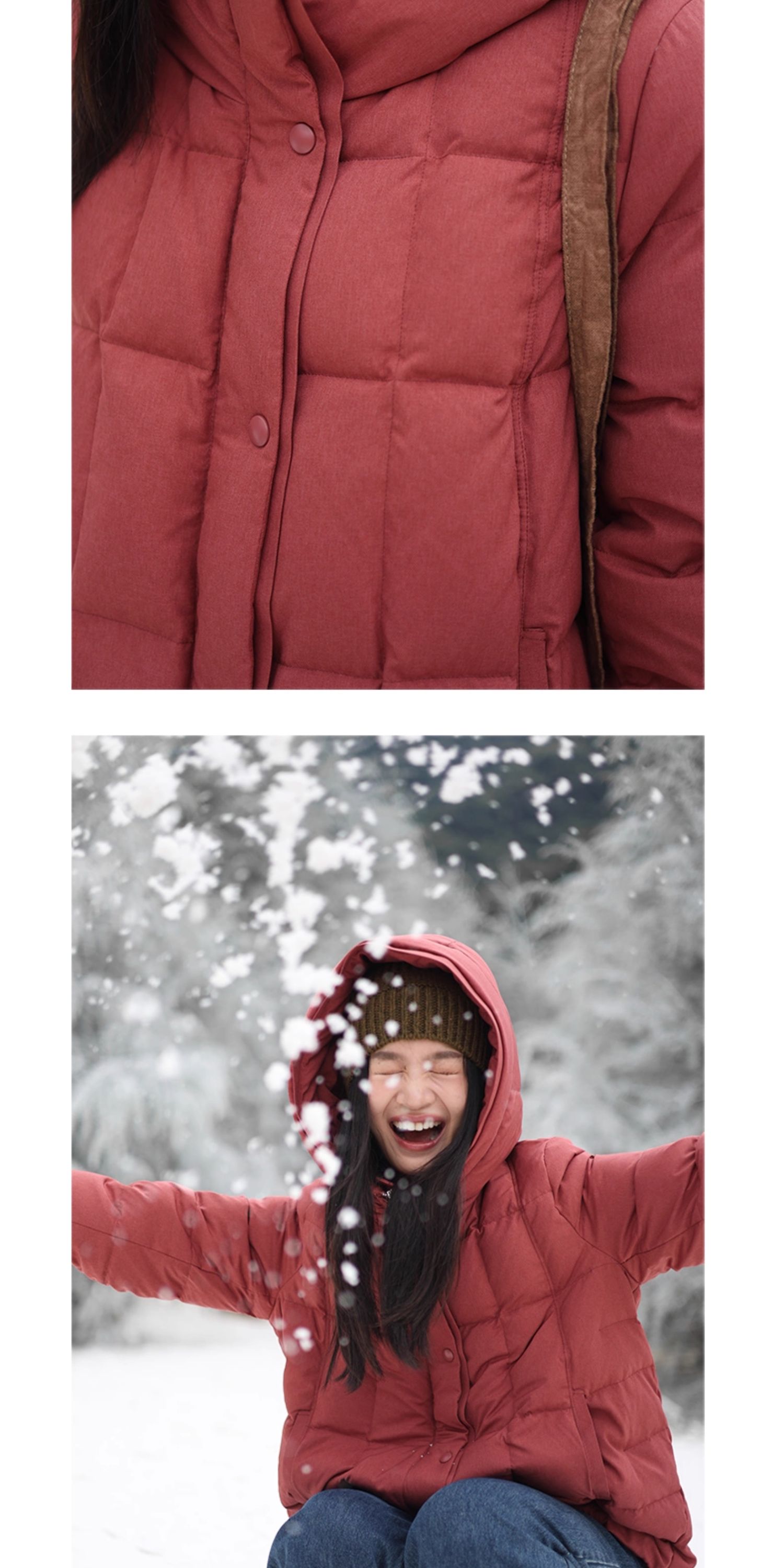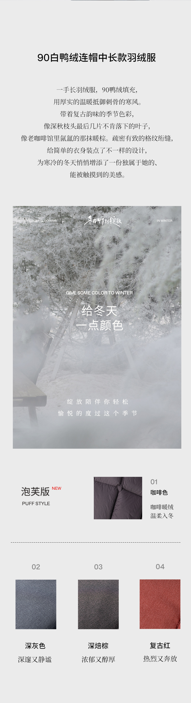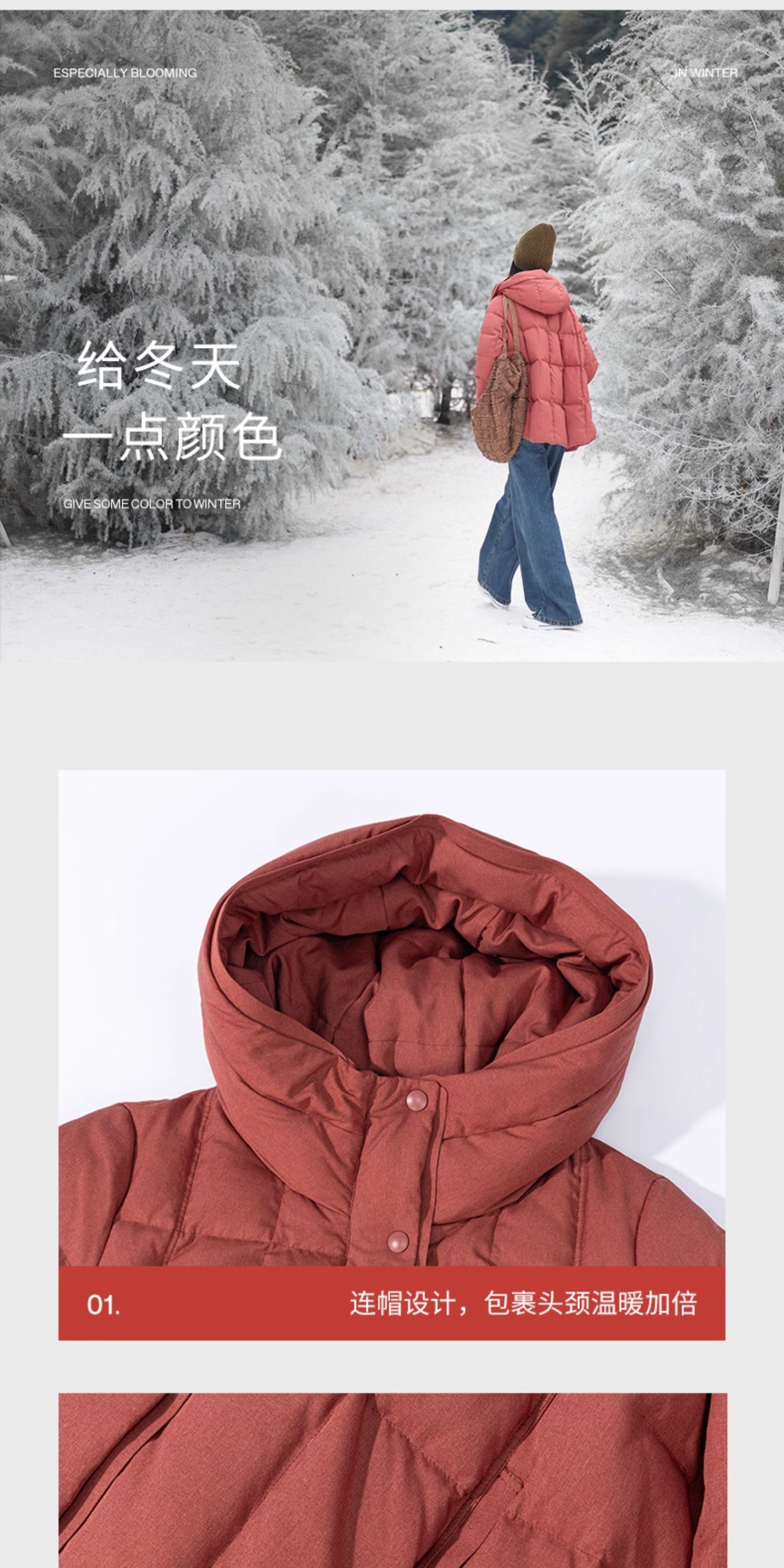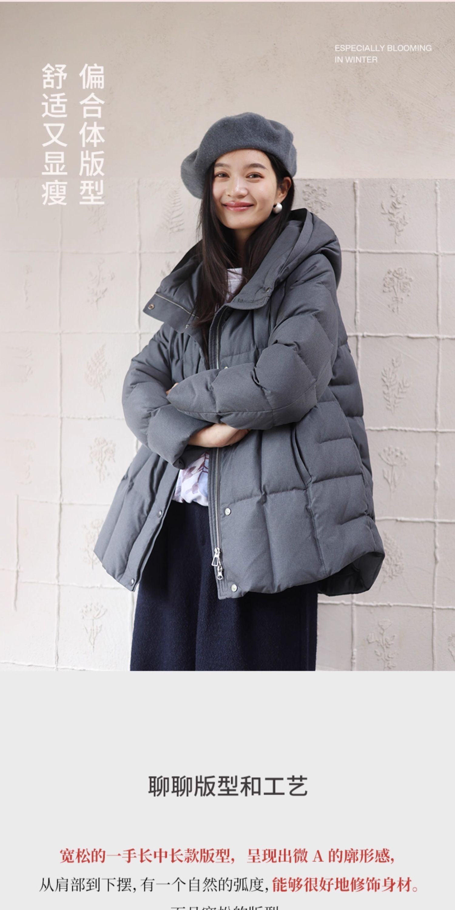 特绽放758朵/安全感羽绒服·90白鸭绒廓形一手长连帽中长款羽绒服