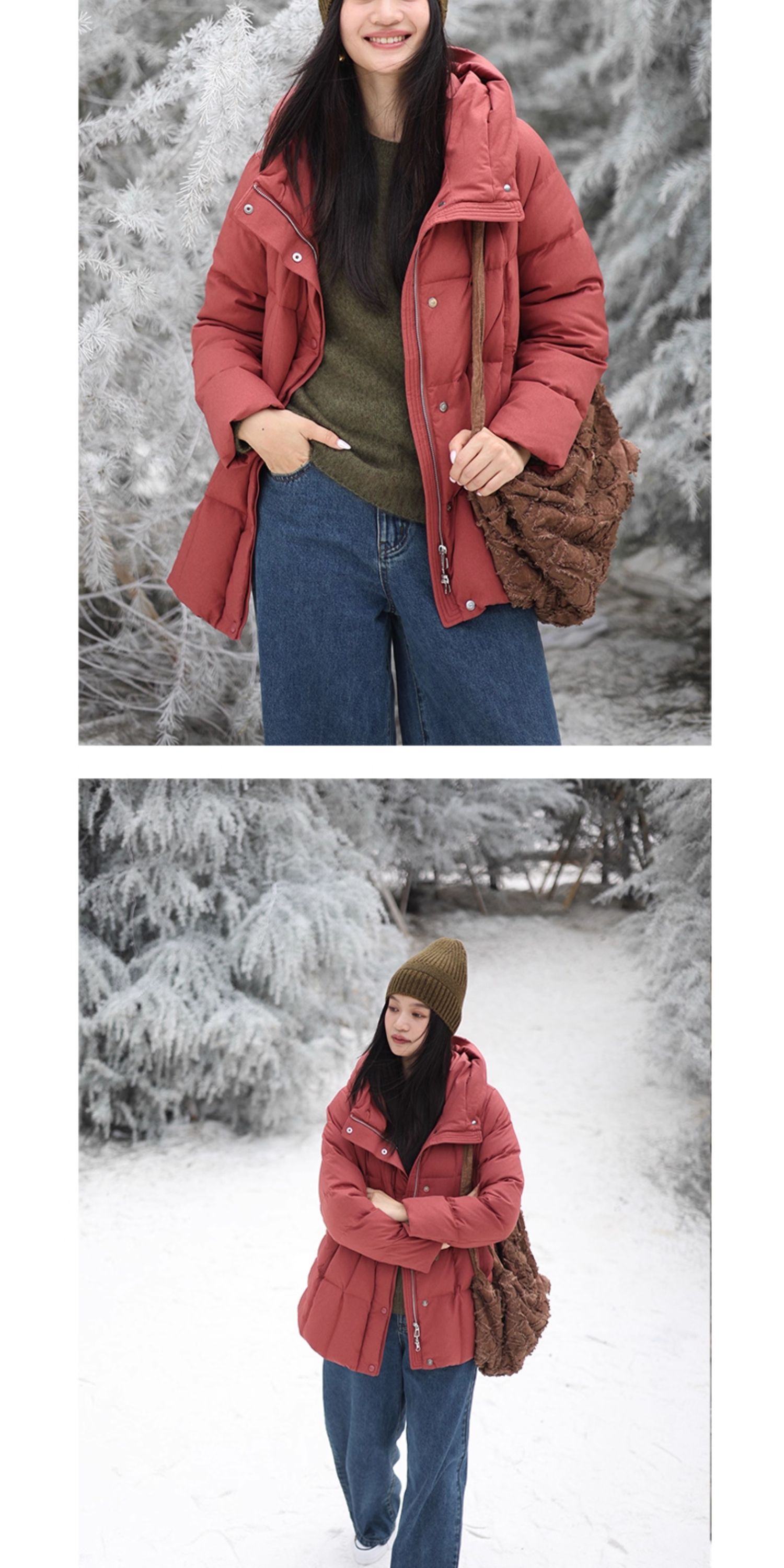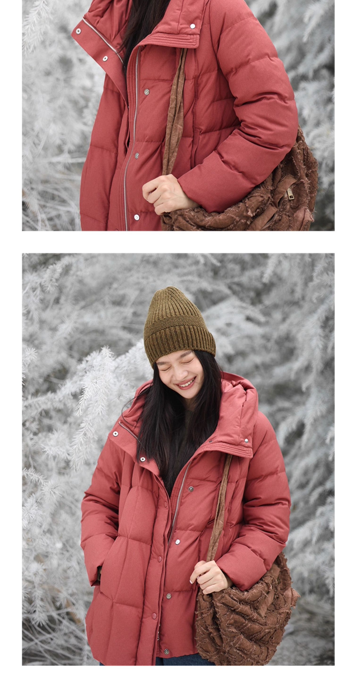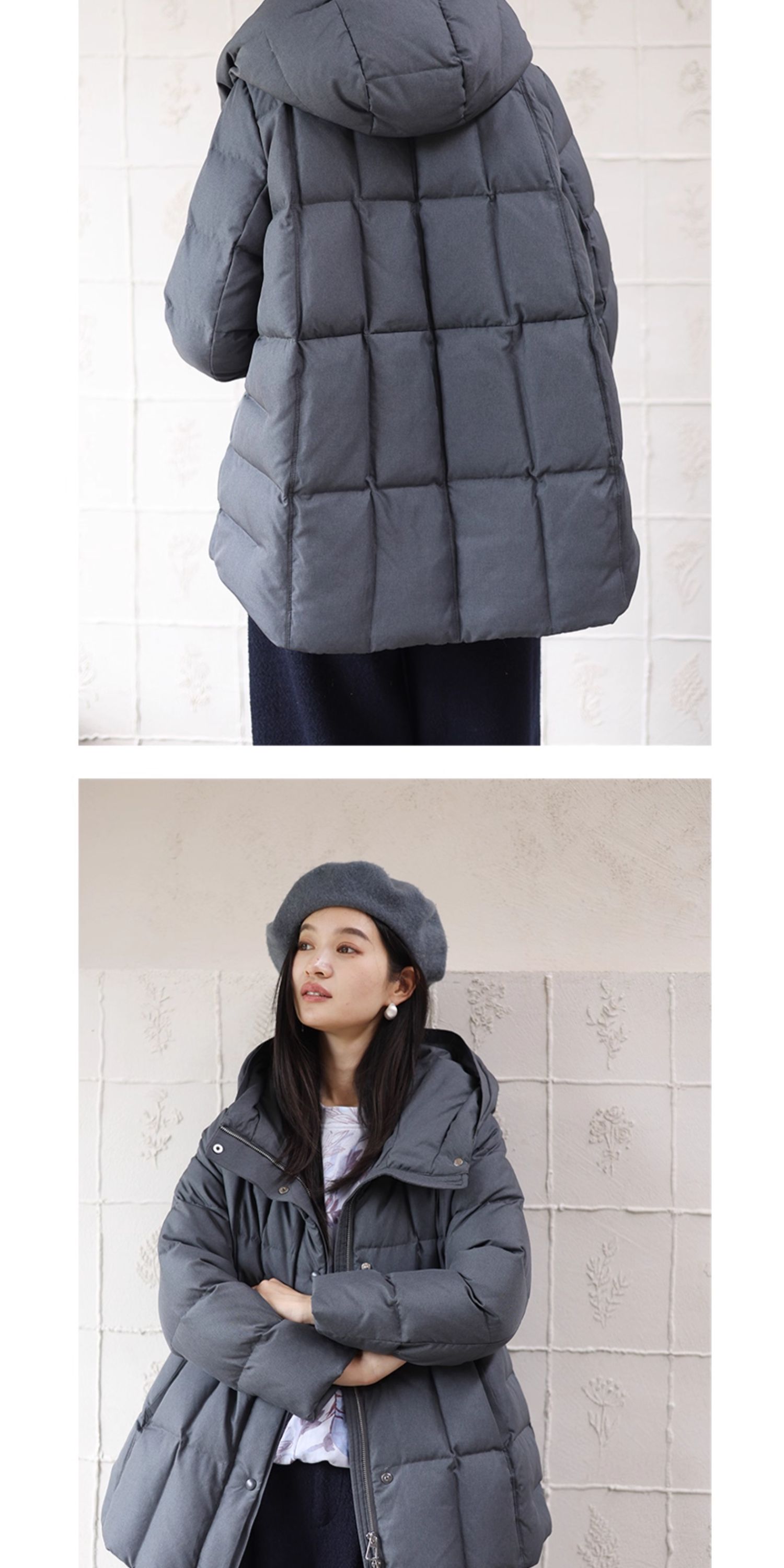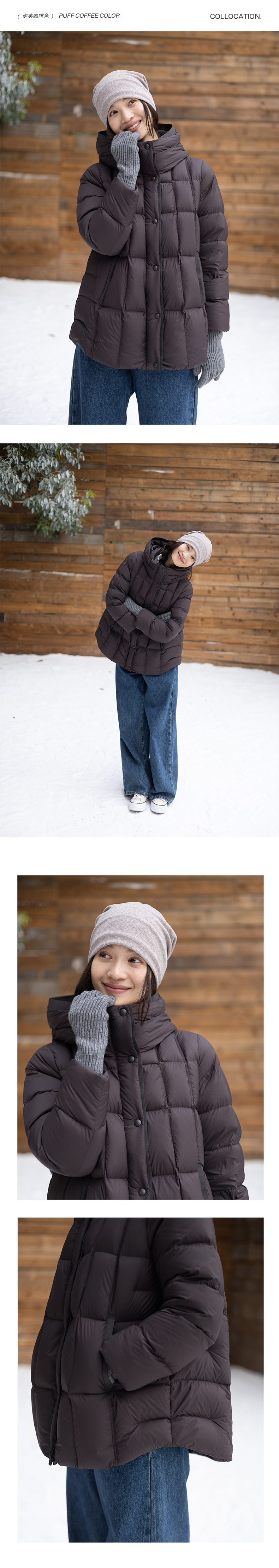 特绽放758朵/安全感羽绒服·90白鸭绒廓形一手长连帽中长款羽绒服