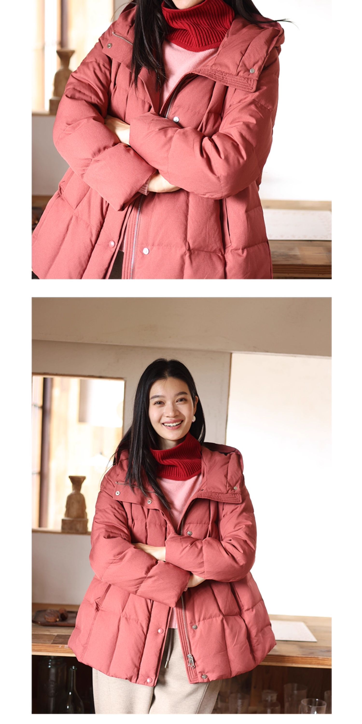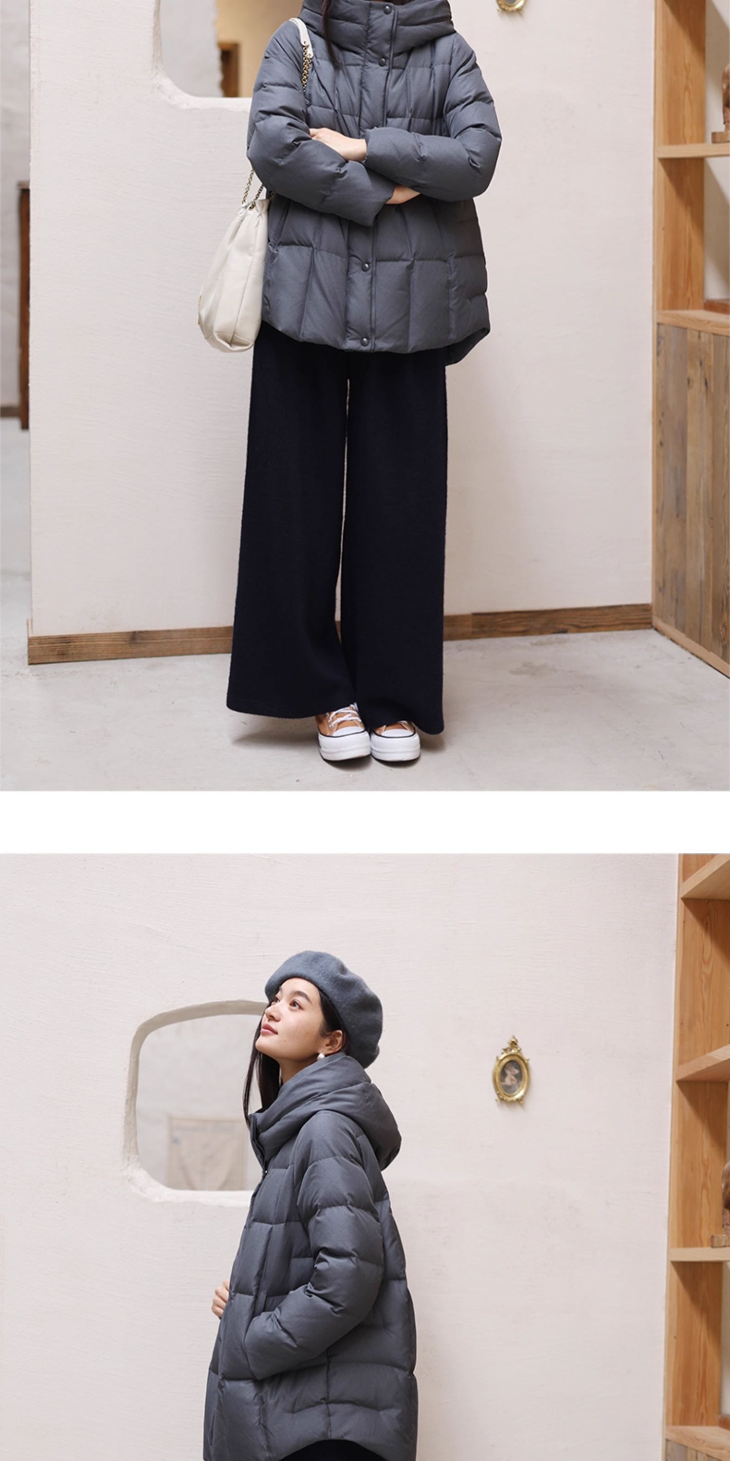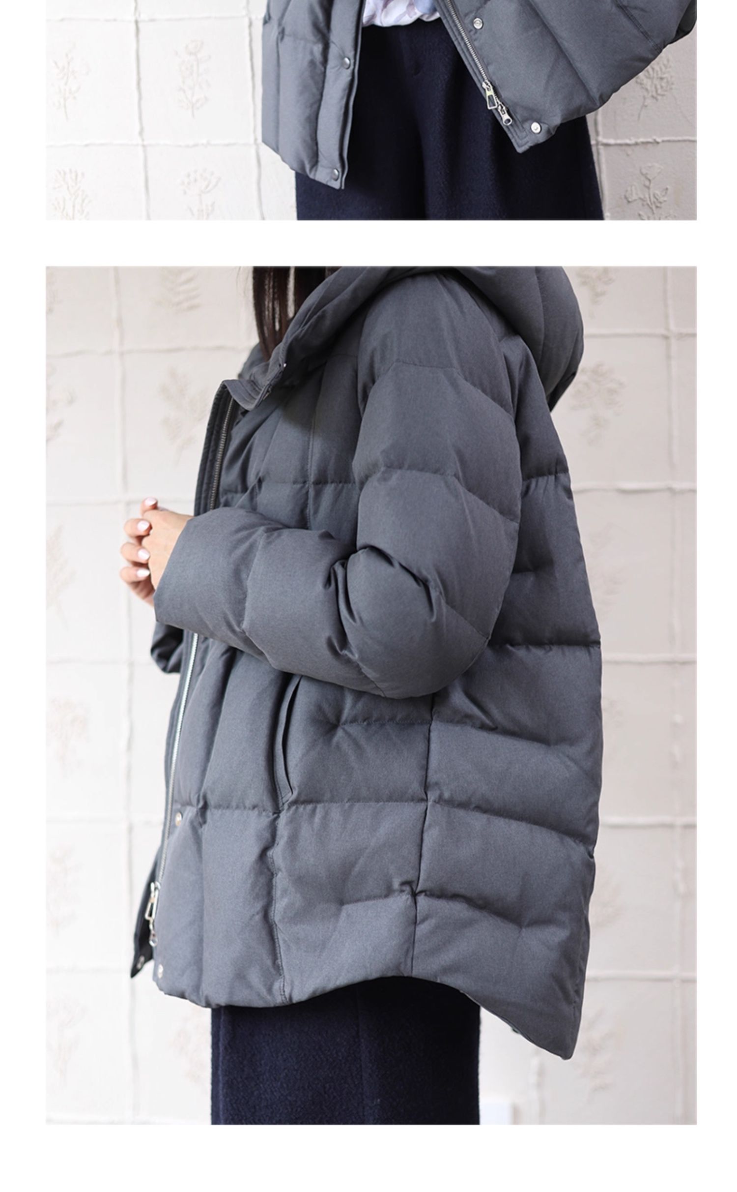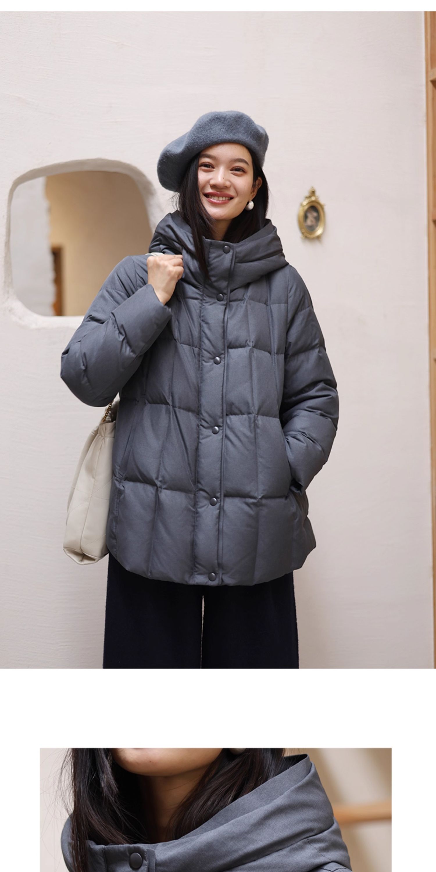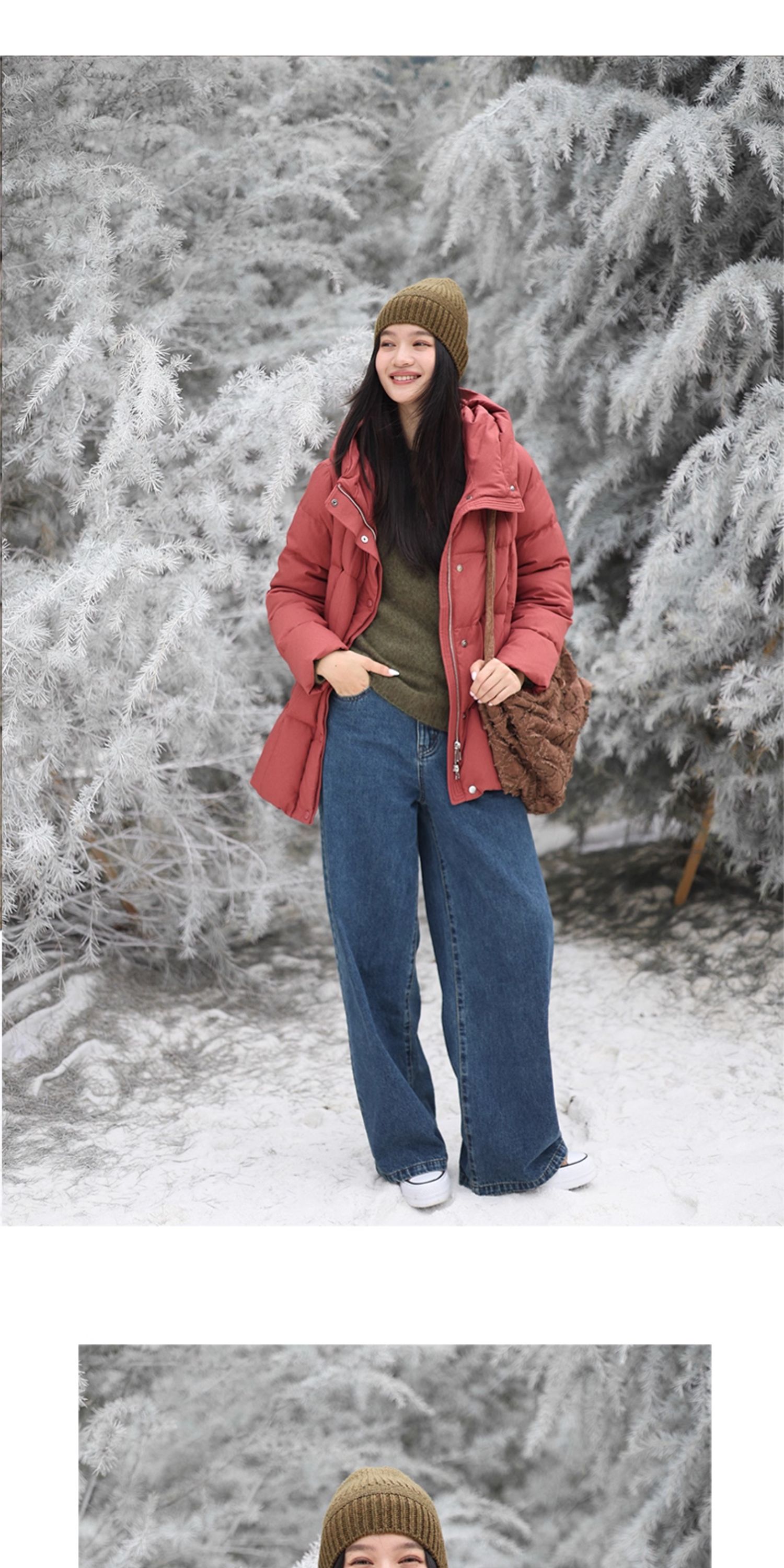 特绽放758朵/安全感羽绒服·90白鸭绒廓形一手长连帽中长款羽绒服