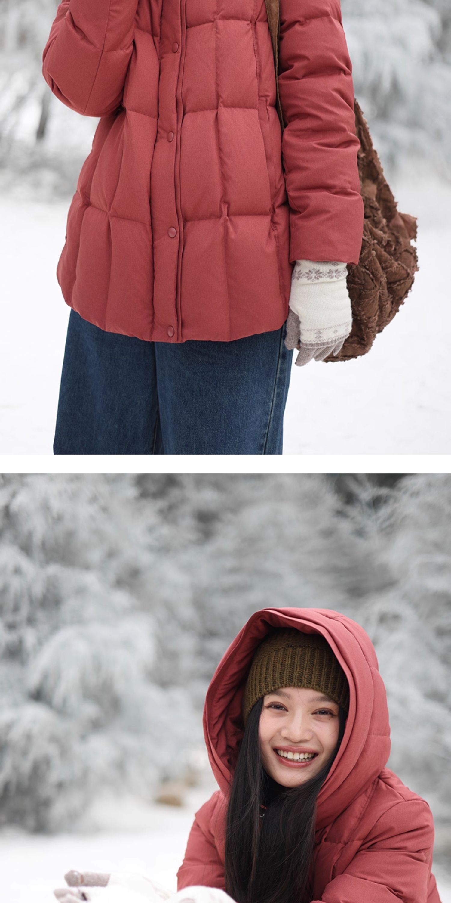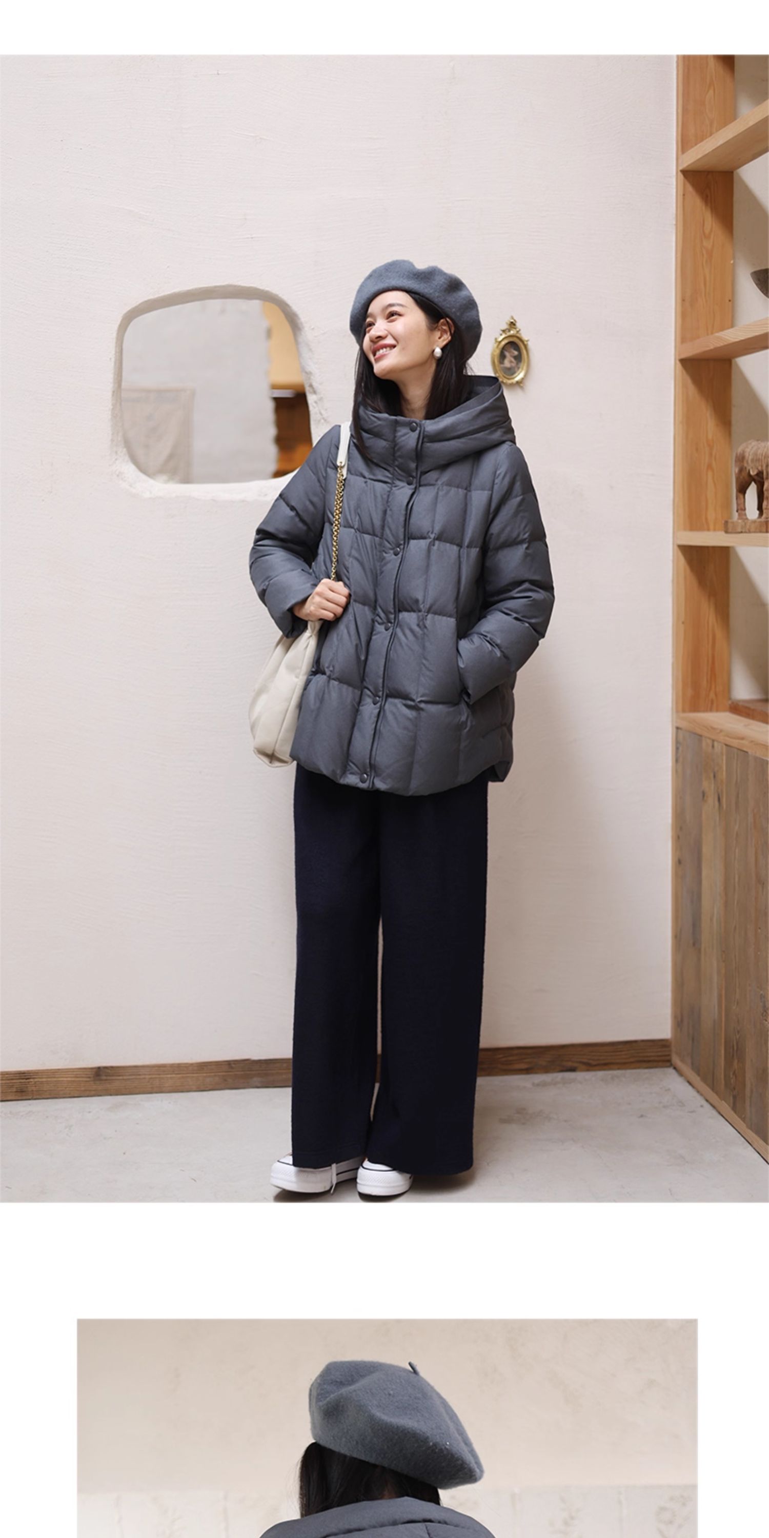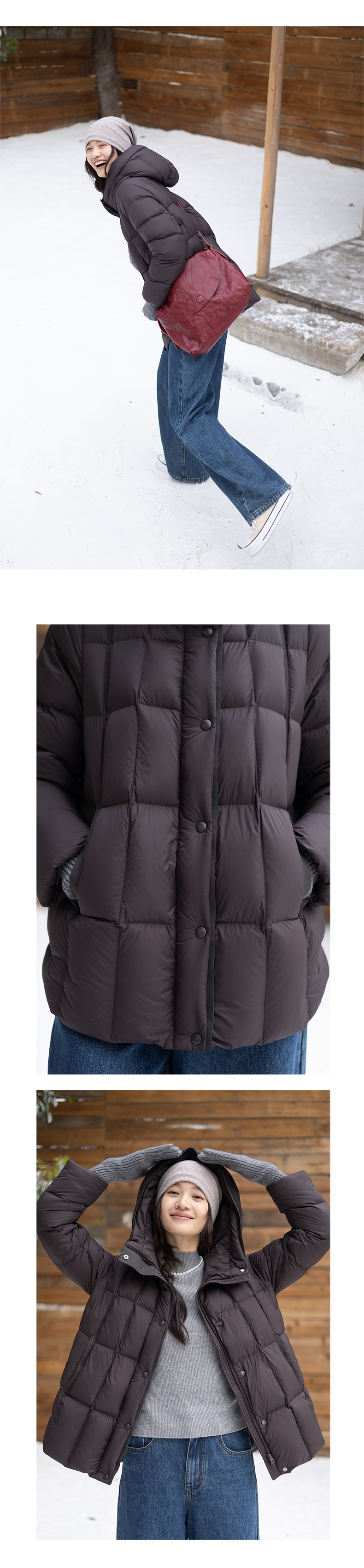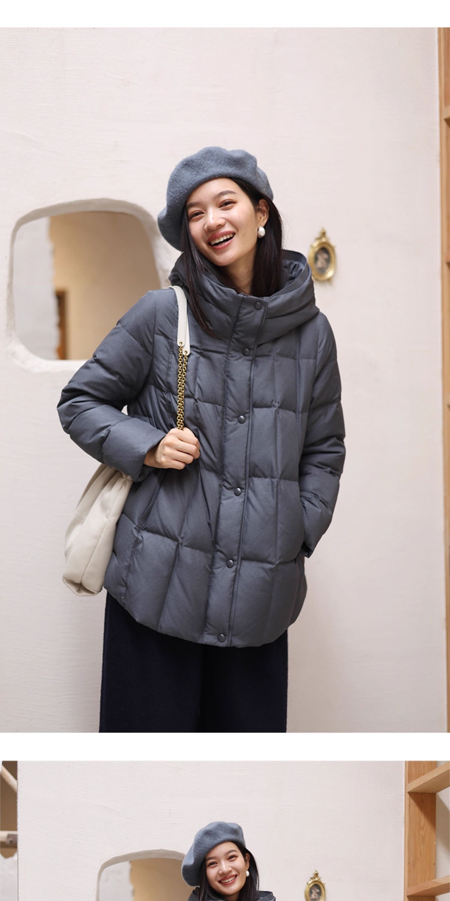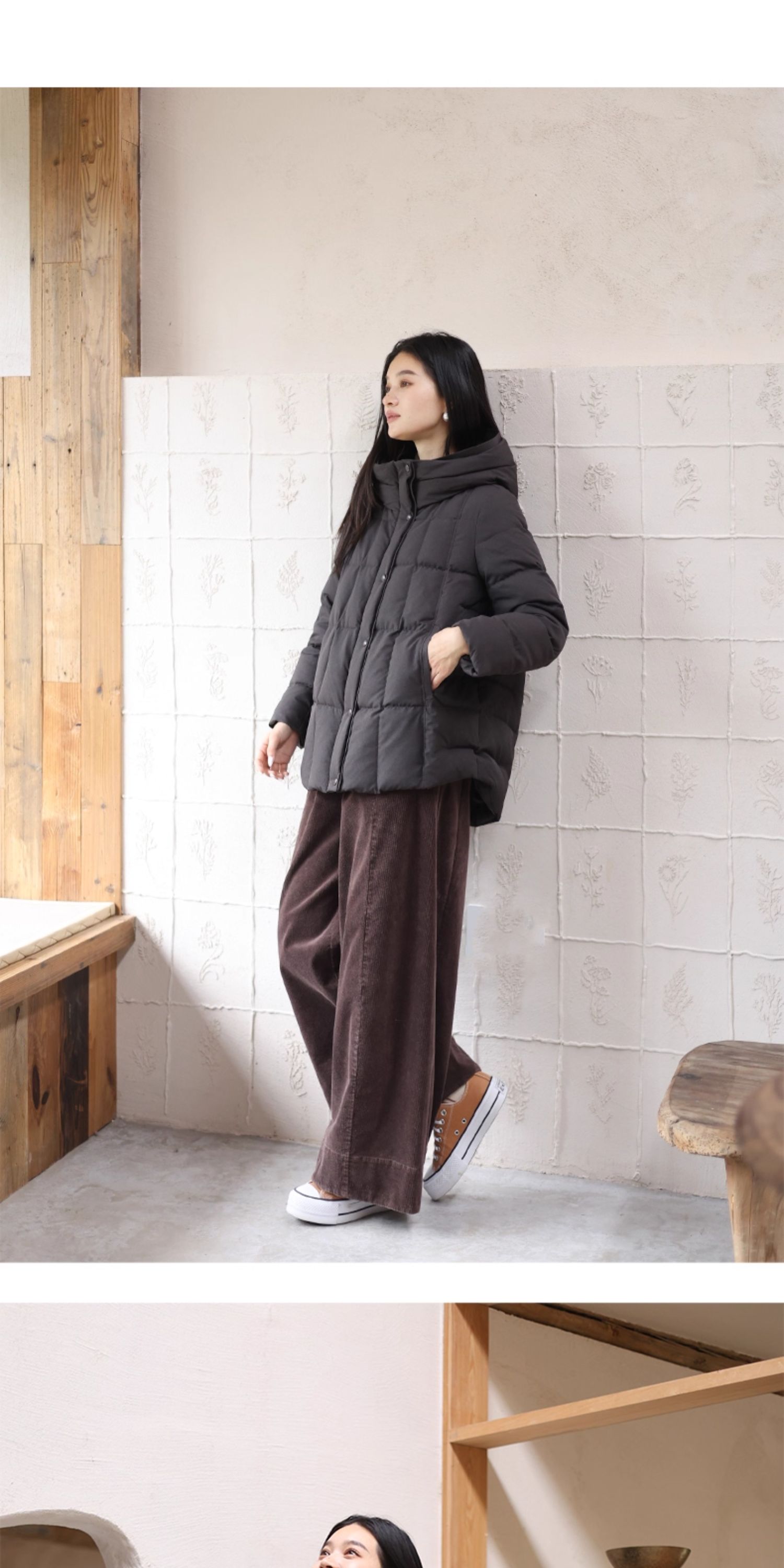 特绽放758朵/安全感羽绒服·90白鸭绒廓形一手长连帽中长款羽绒服
