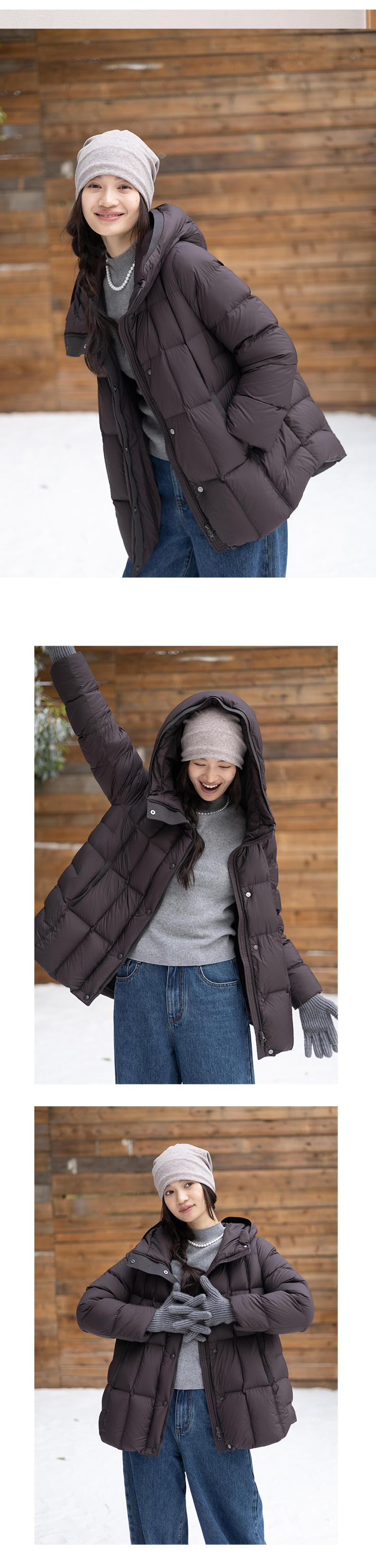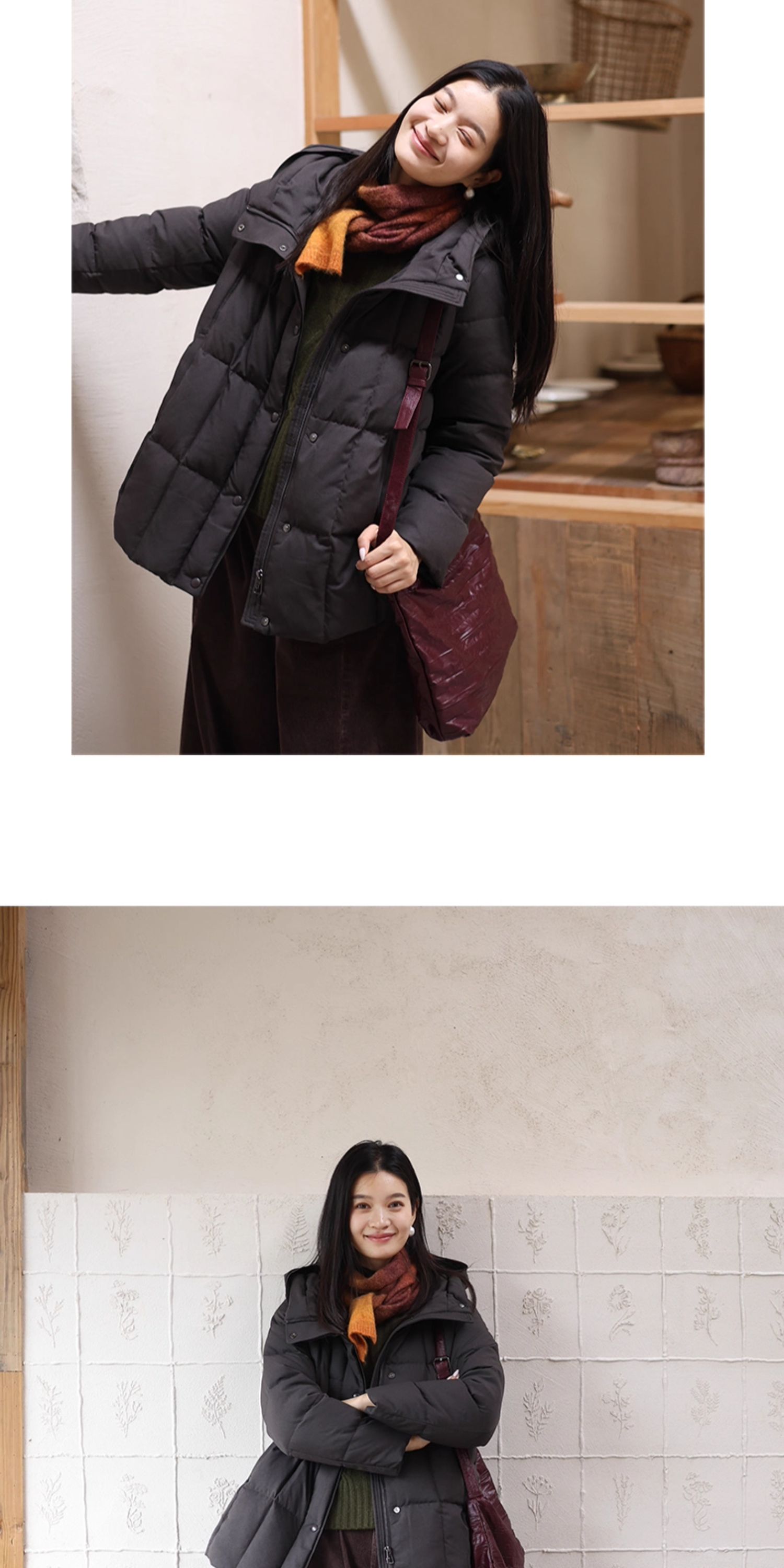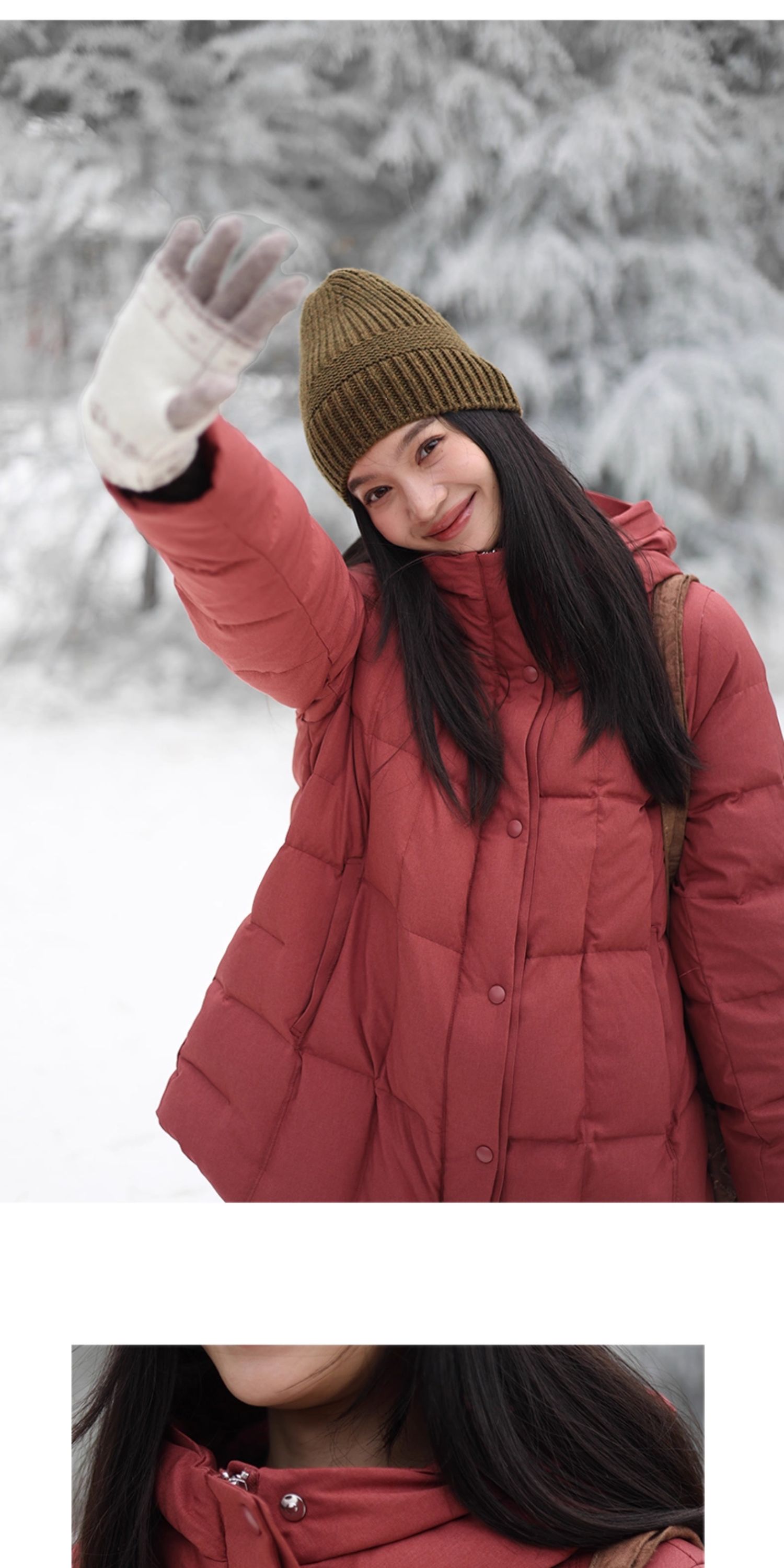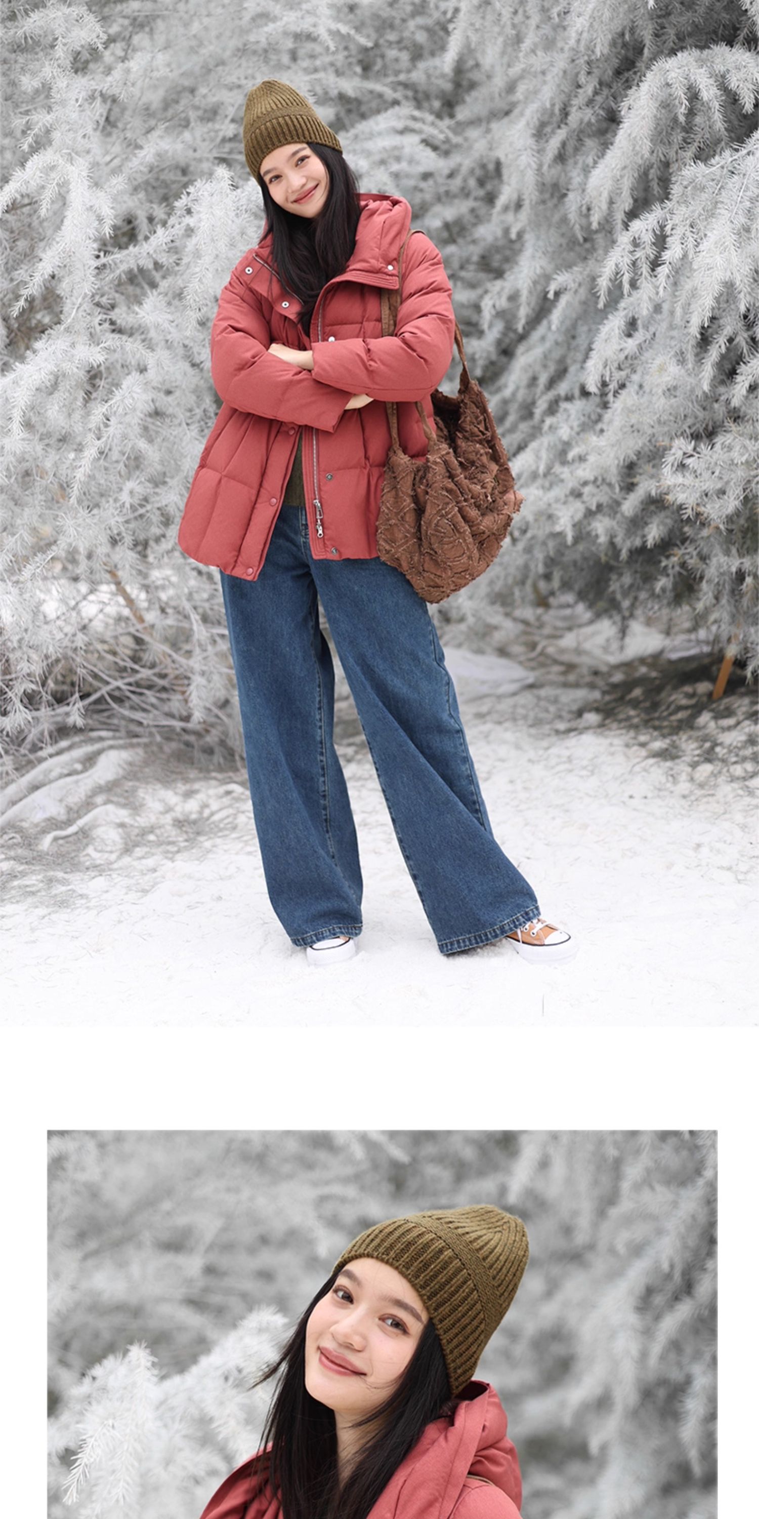 特绽放758朵/安全感羽绒服·90白鸭绒廓形一手长连帽中长款羽绒服