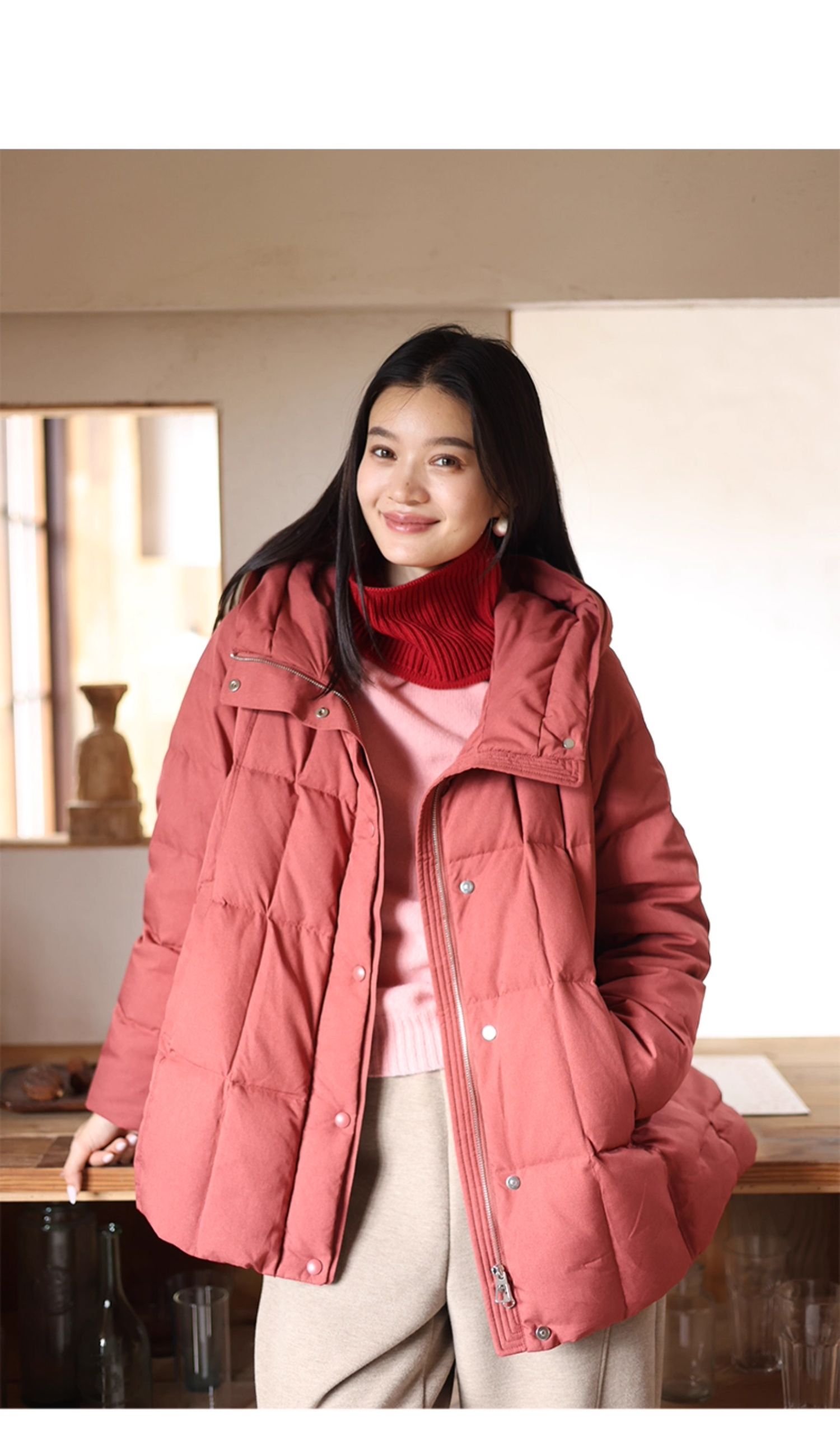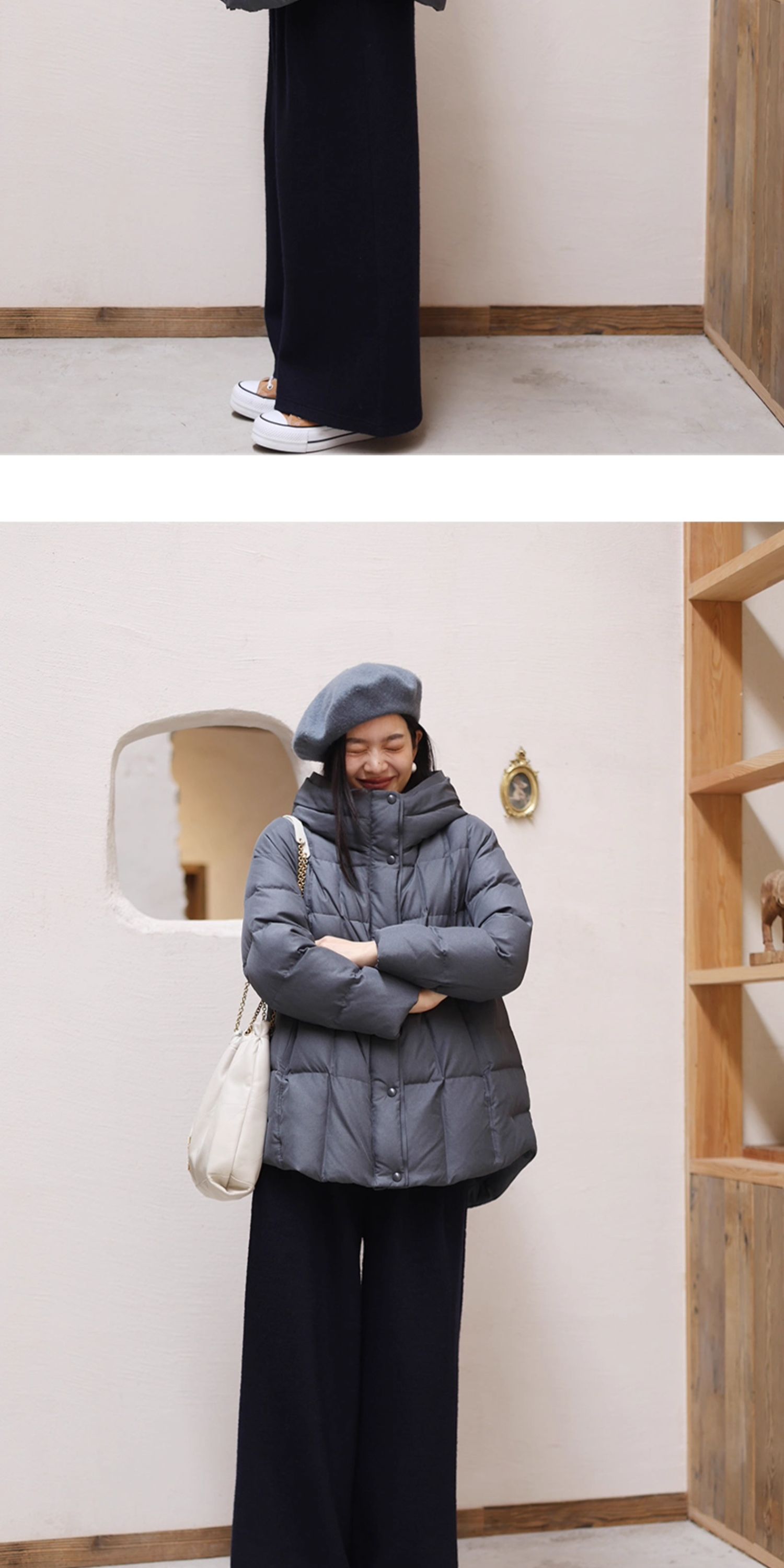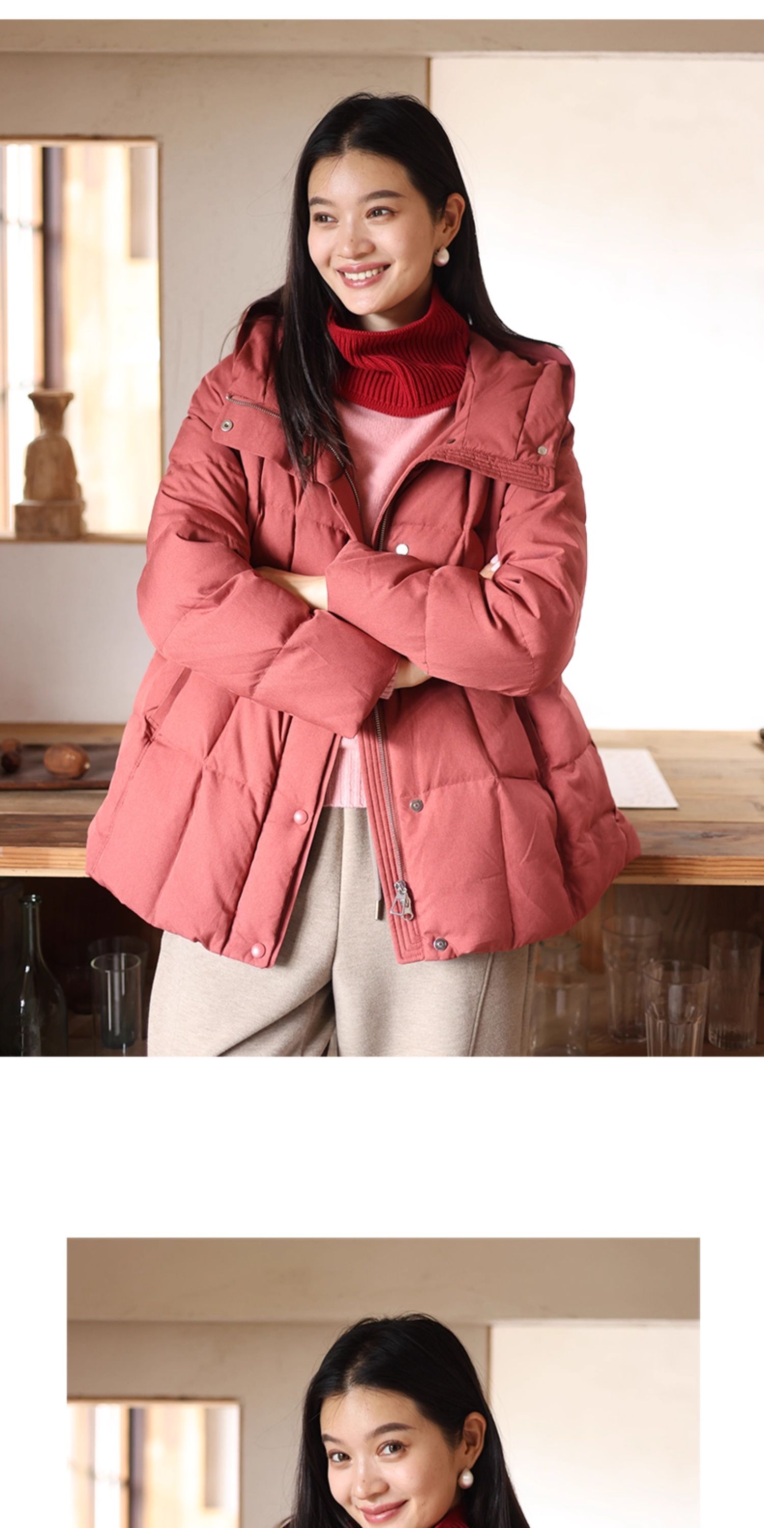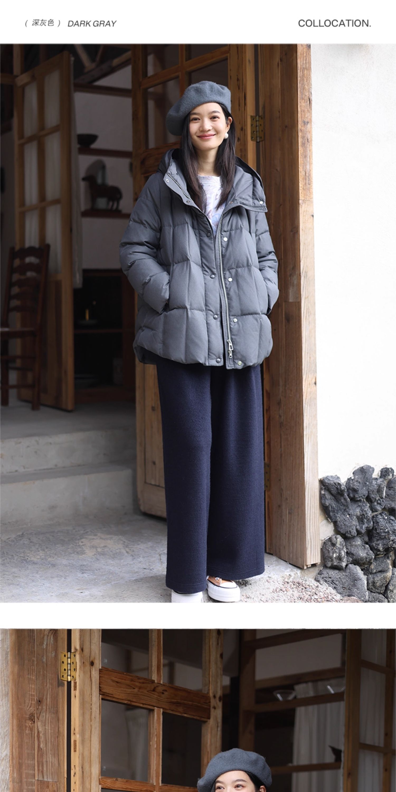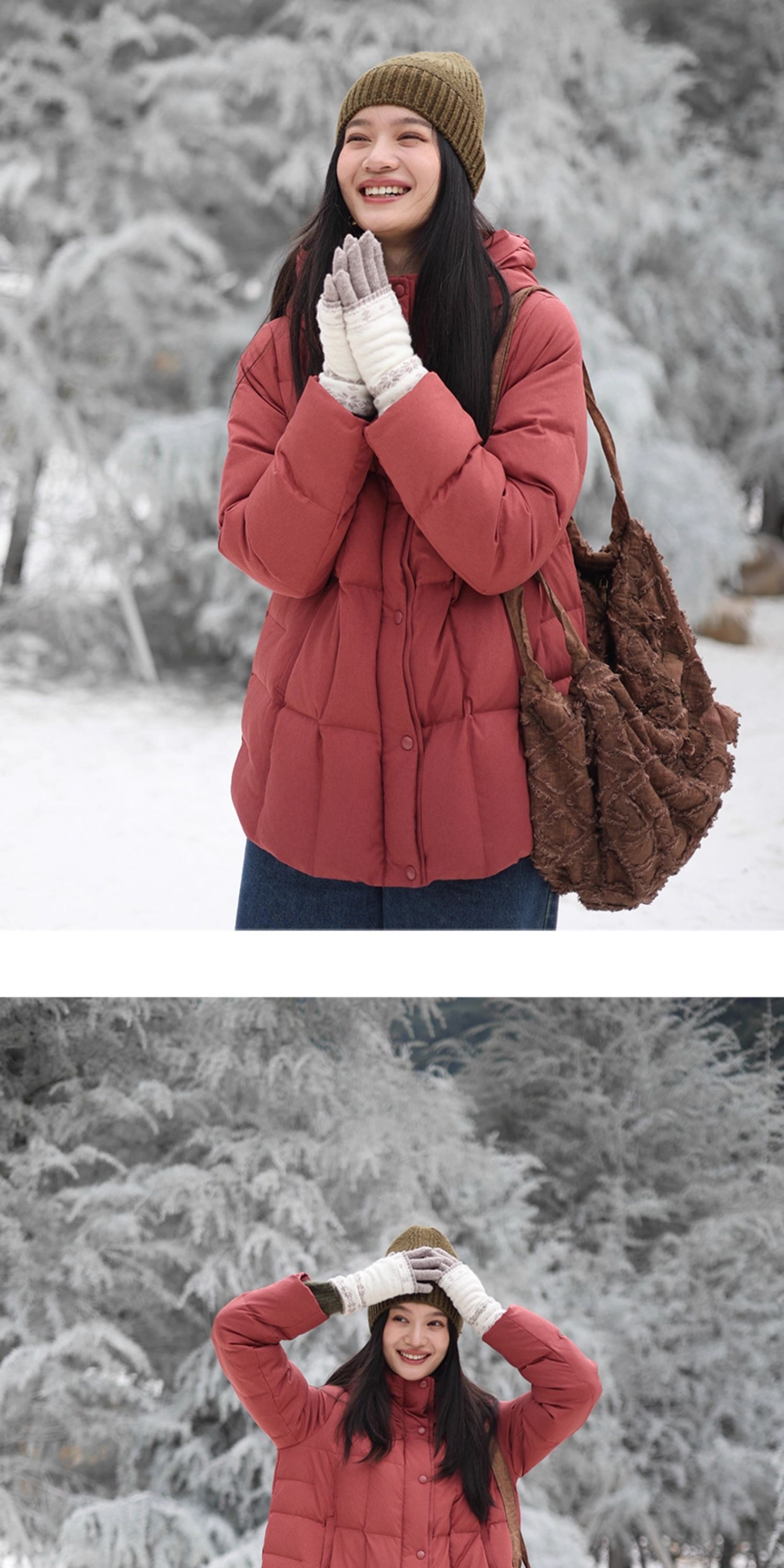特绽放758朵/安全感羽绒服·90白鸭绒廓形一手长连帽中长款羽绒服