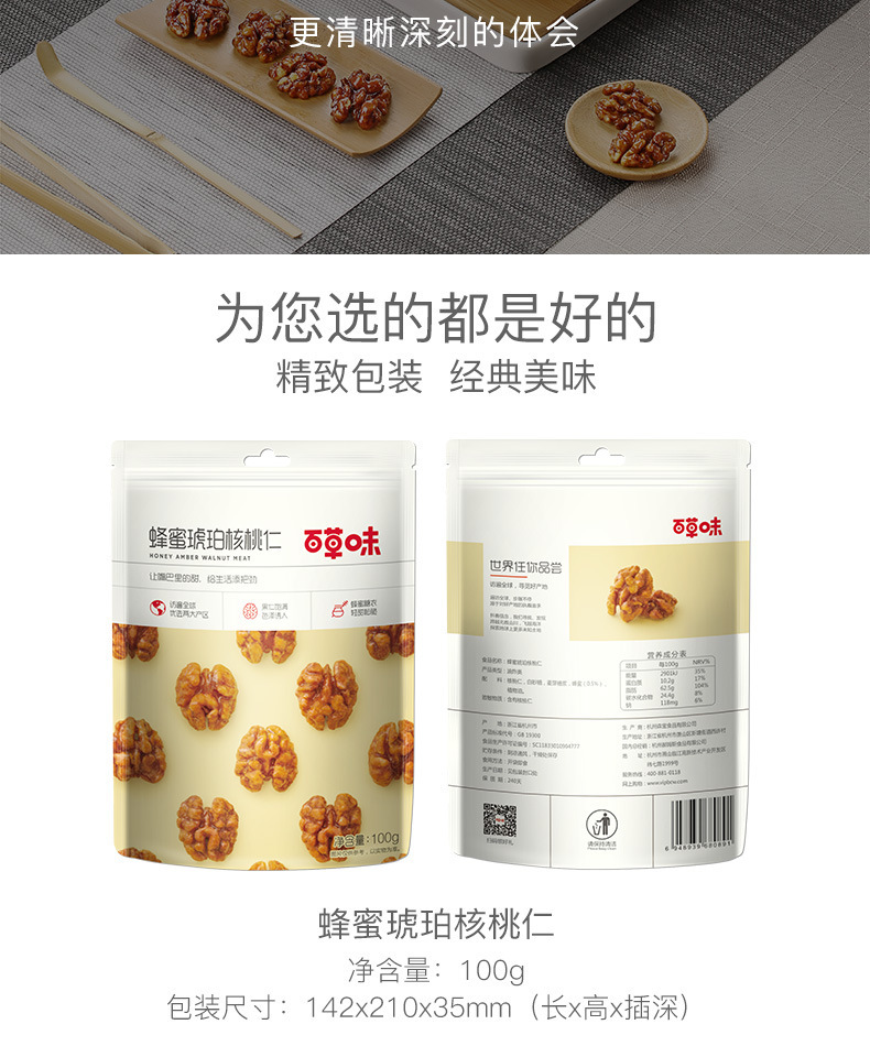 百草味蜂蜜琥珀核桃仁100g坚果果干休闲零食果仁核桃仁