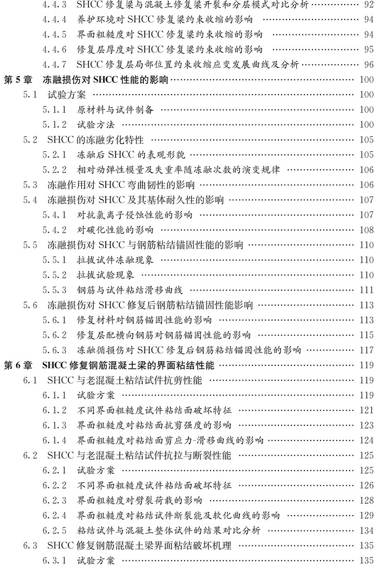 本书着重介绍了应变硬化水泥基复合材料(SHCC)的基本设计理论,工作性能,基本力学性能,开裂损伤失效机理,干缩特性,耐久性劣化规律,以及作为修复加固材料时界面约束收缩规律,界面粘结锚固机理,SHCC修复梁的刚度、裂缝和变形计算等。
