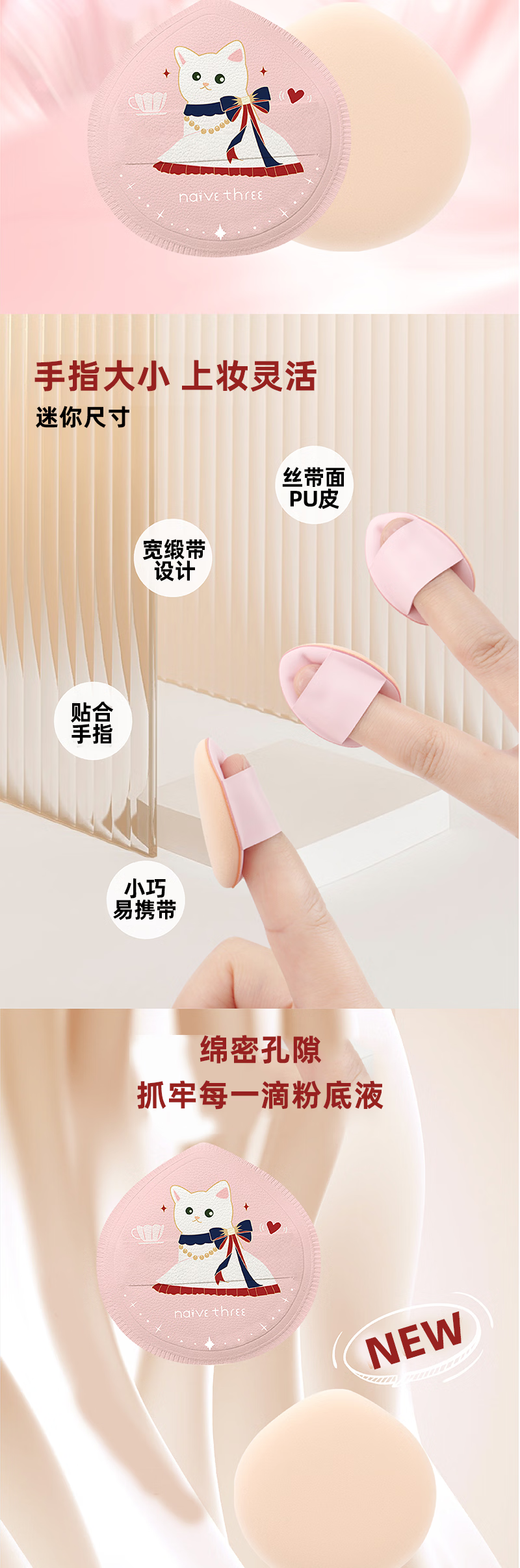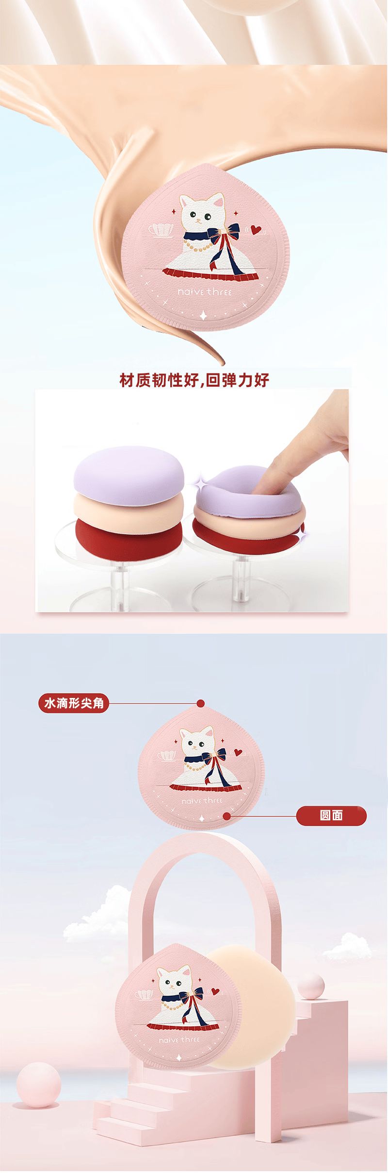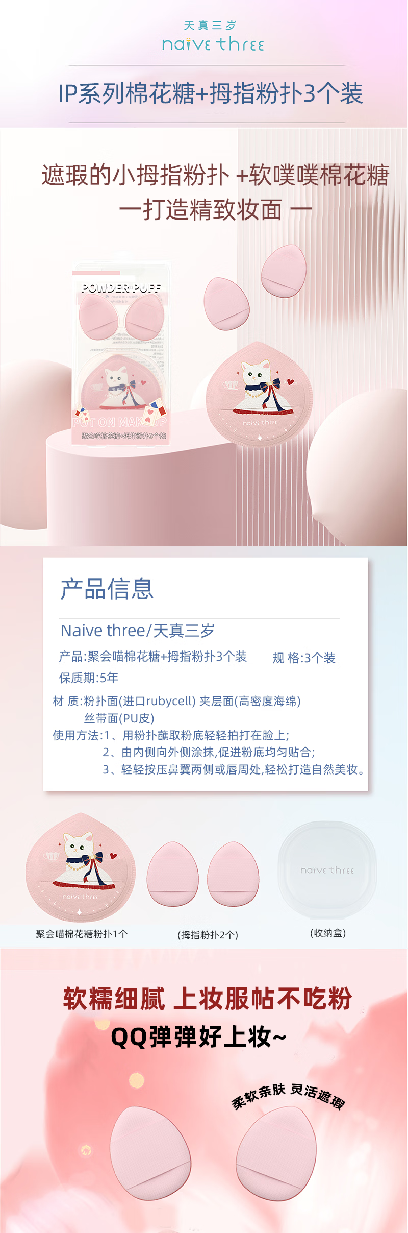 天真三岁聚会喵棉花糖粉扑+拇指粉扑套装【30174112】