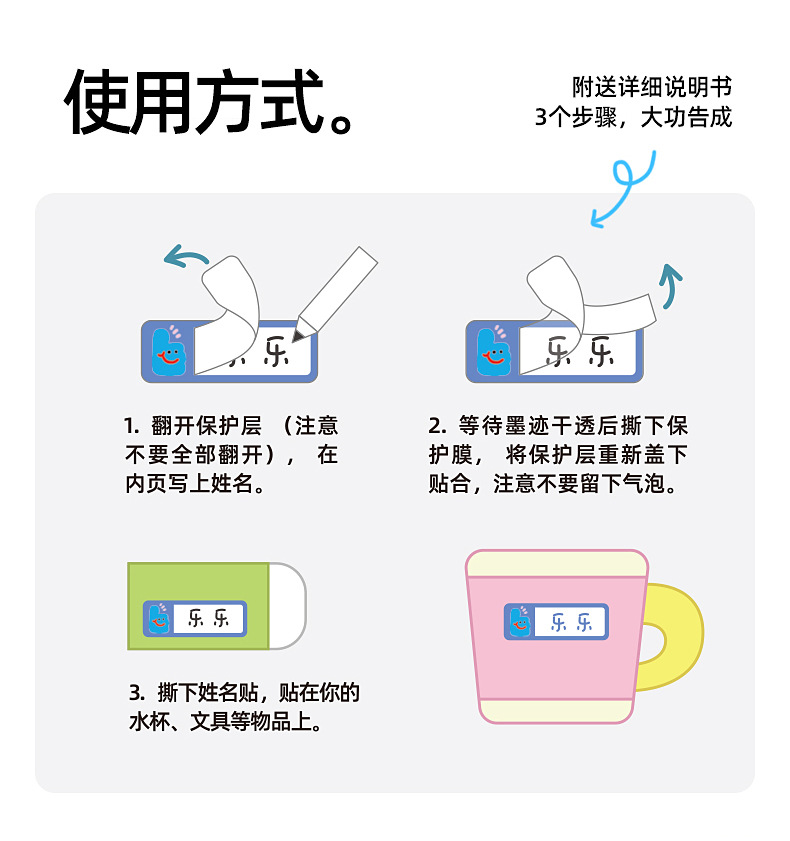 【免缝免熨烫的防水姓名贴】美乐童年儿童防水姓名贴 可爱卡通贴纸 幼儿园入园名字贴套装玩具