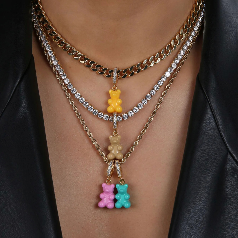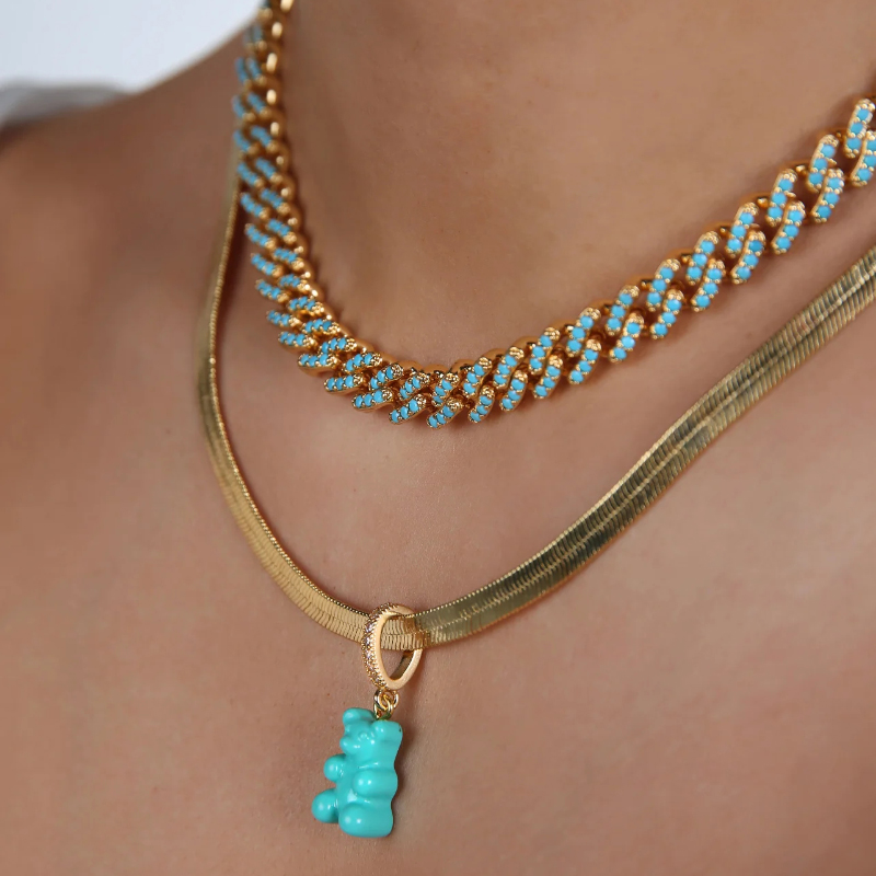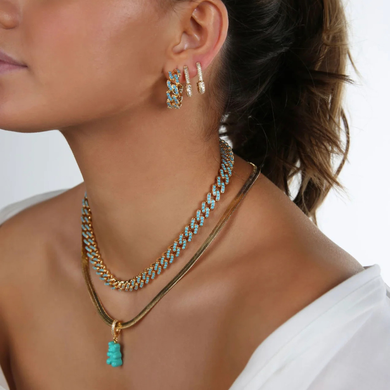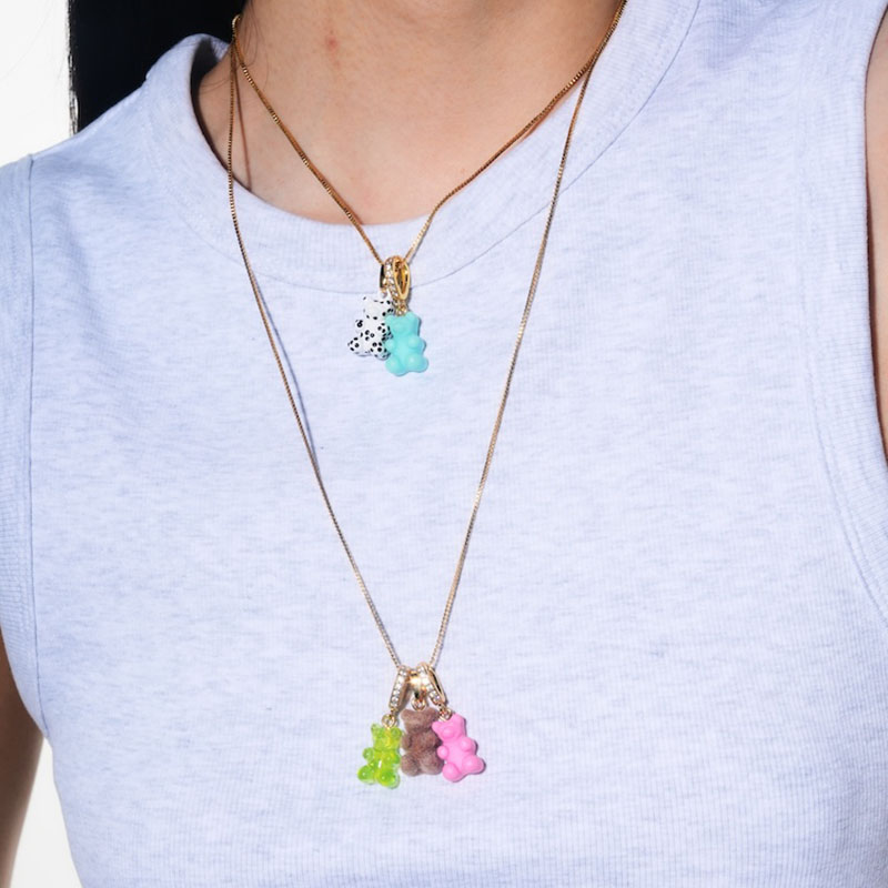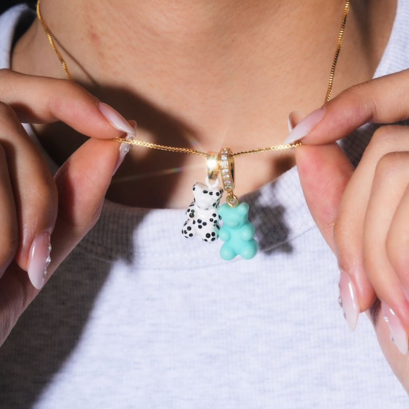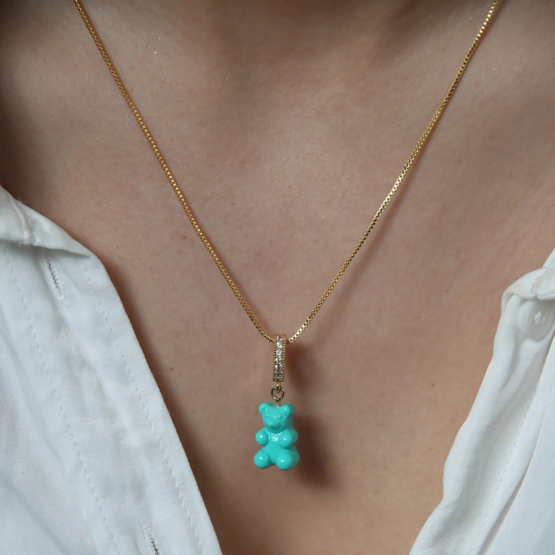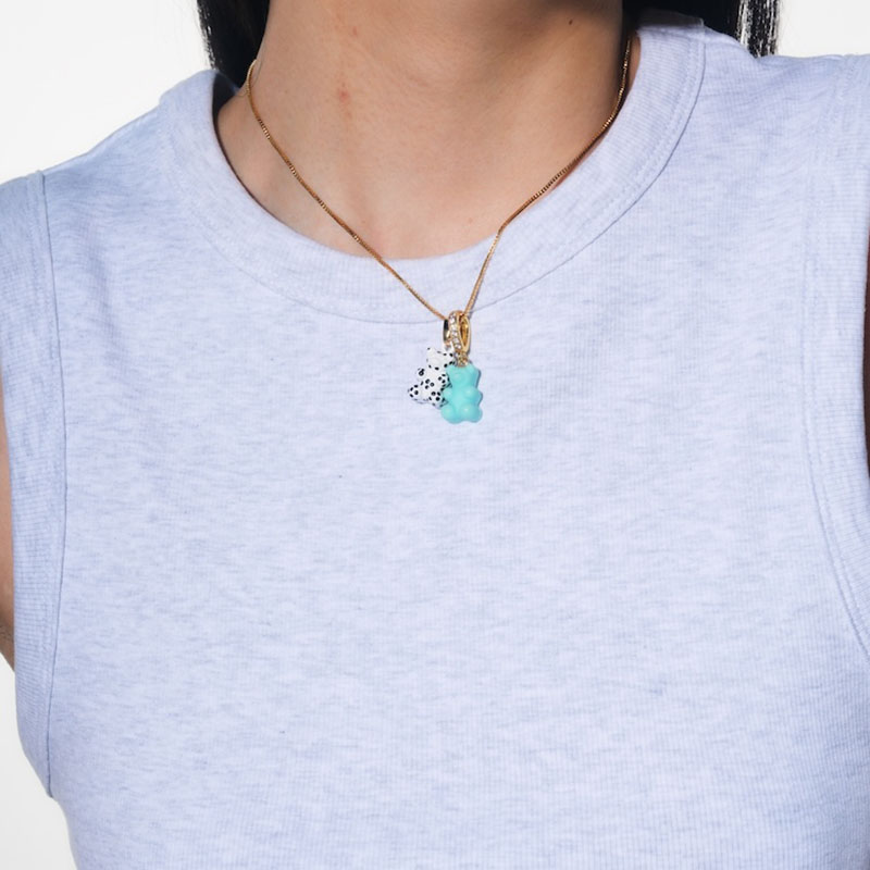 北京仓|CRYSTAL HAZE-Nostalgia Bear-pave-湖水蓝色小熊 吊坠(金色环扣)[挪威设计师]
