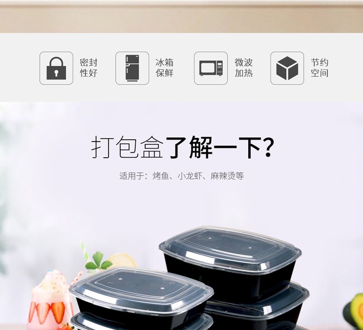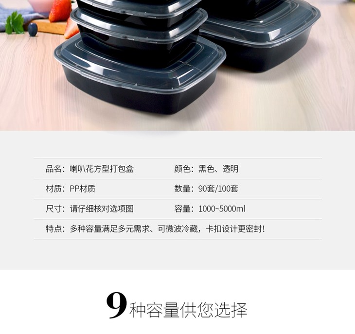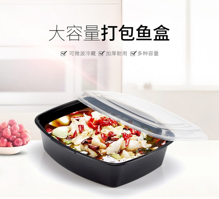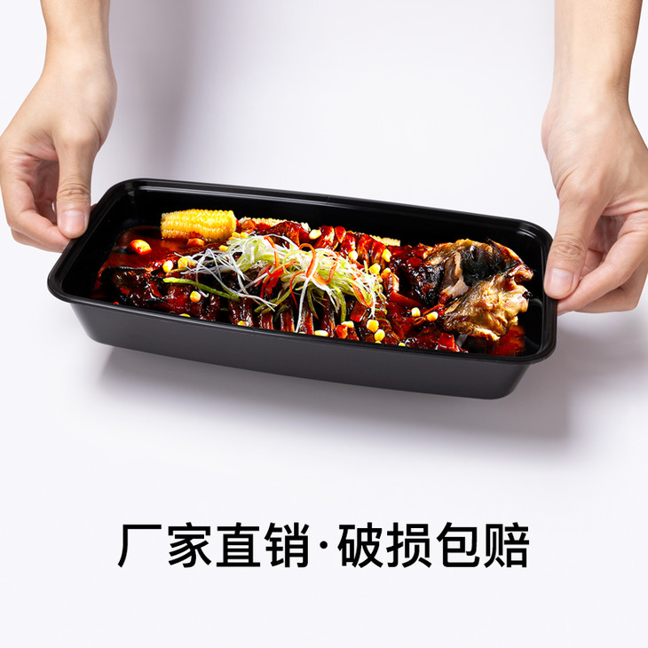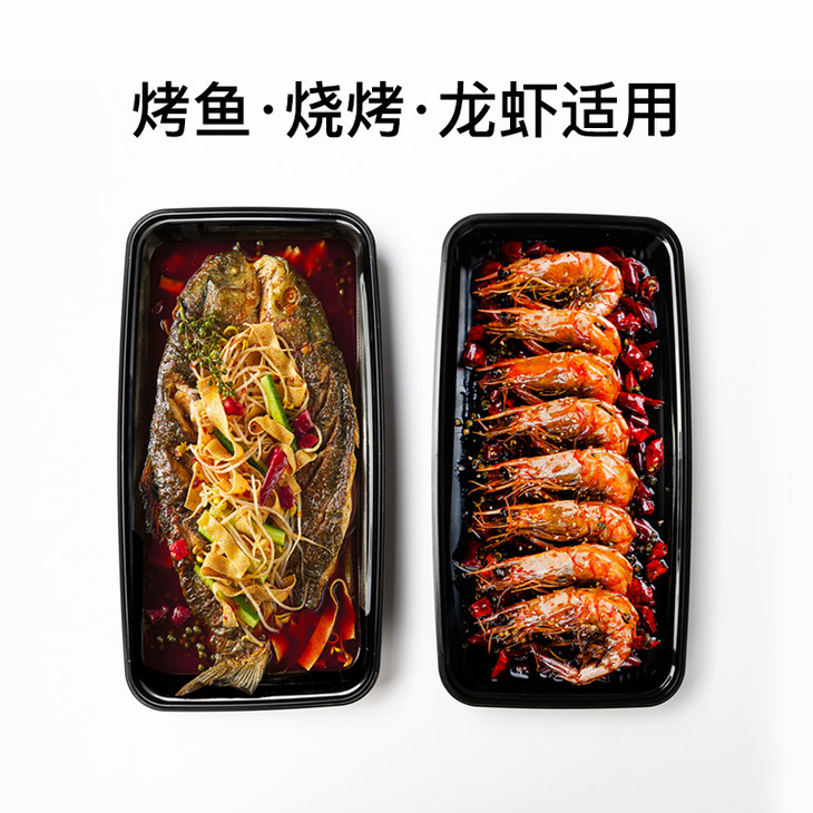 喇叭花5000ml一次性烤鱼盒烤串外卖打包盒长方形黑色龙虾海鲜盒