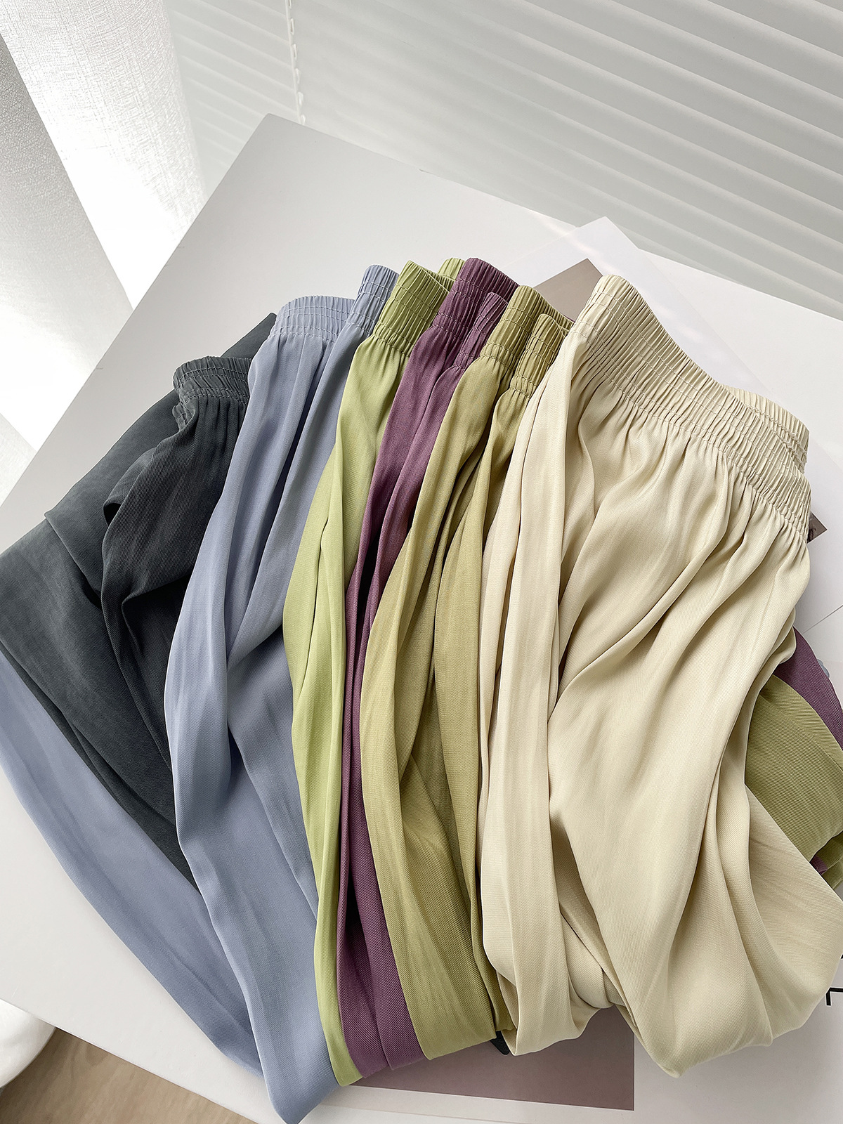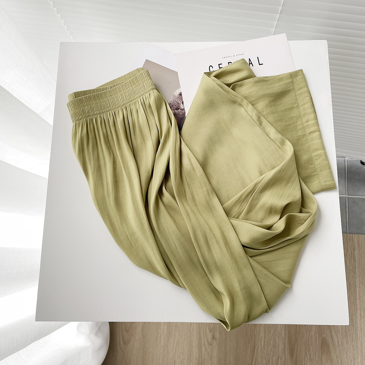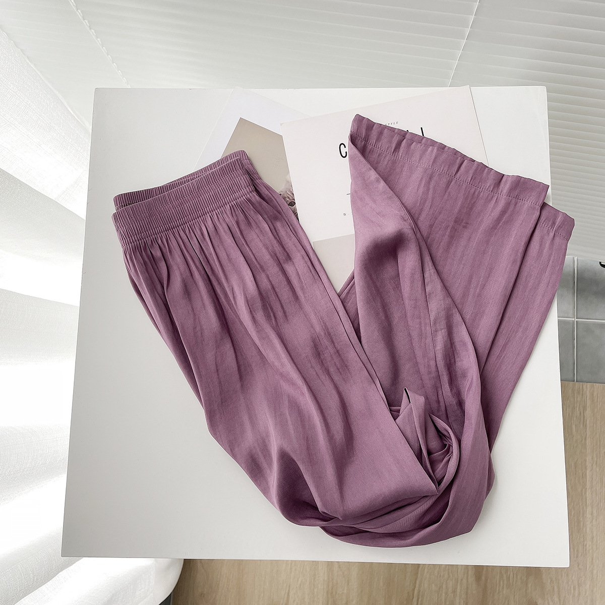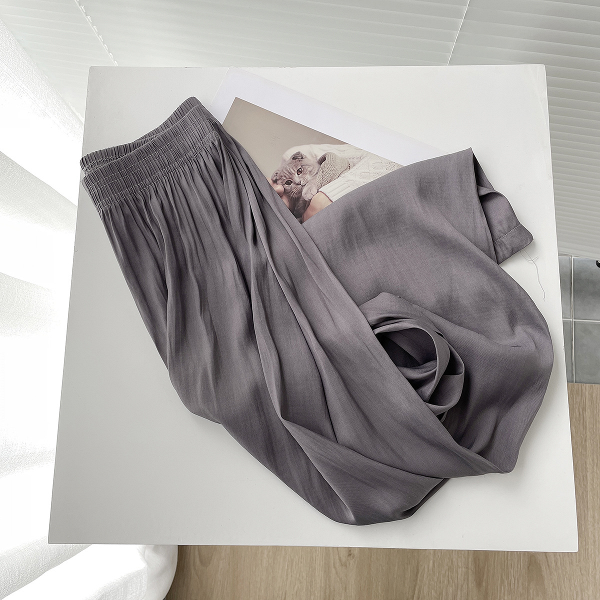 【轻薄垂顺 自带空调风凉感!】2024夏季薄宽松简约风冰丝阔腿裤女高腰防晒垂感休闲运动 长裤装