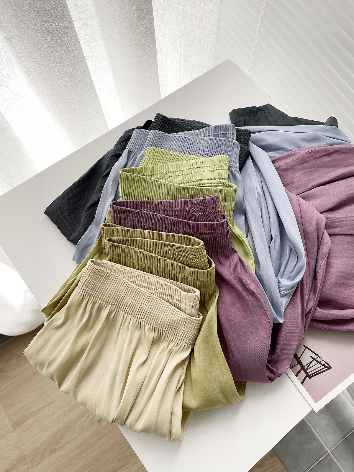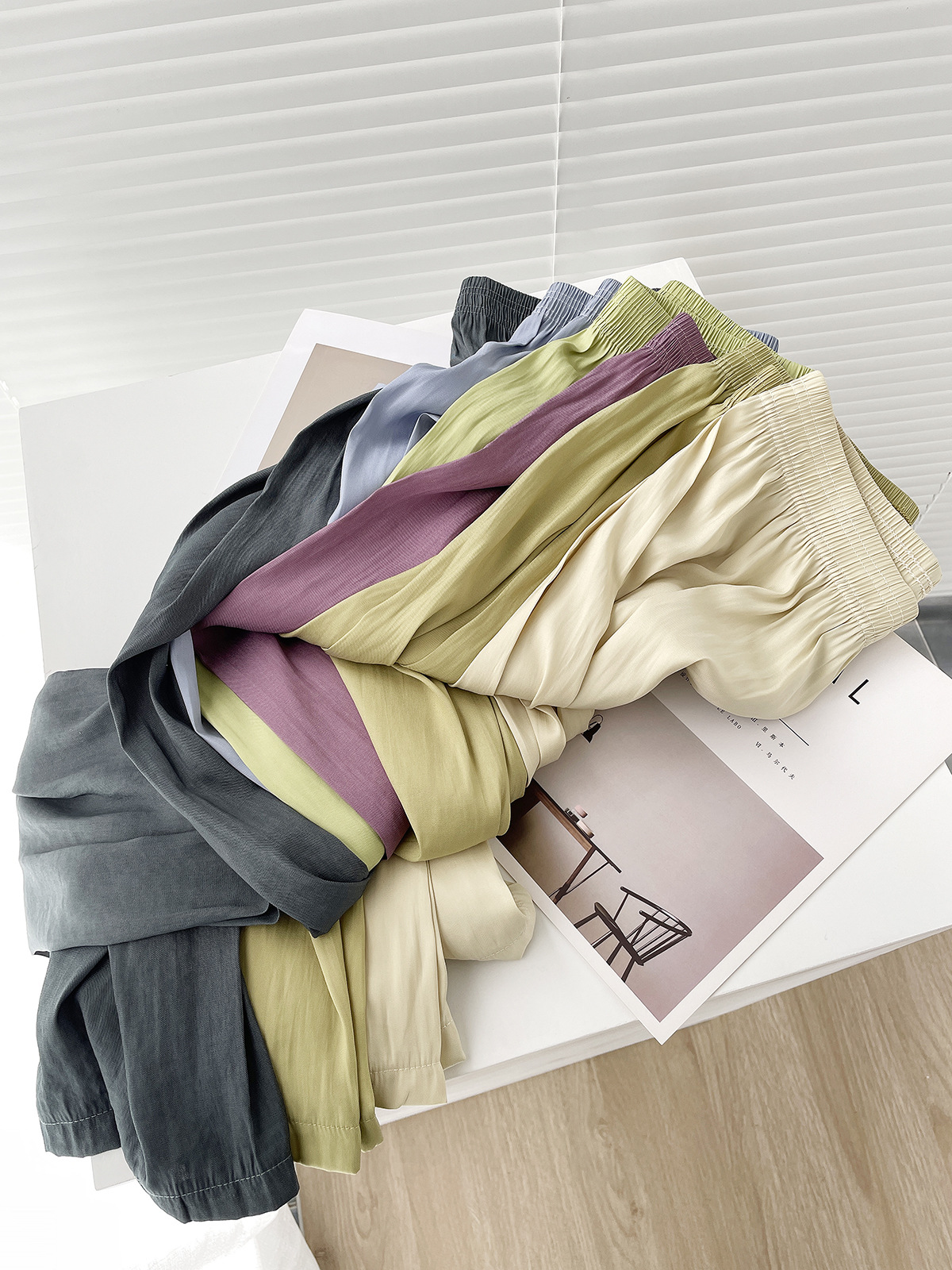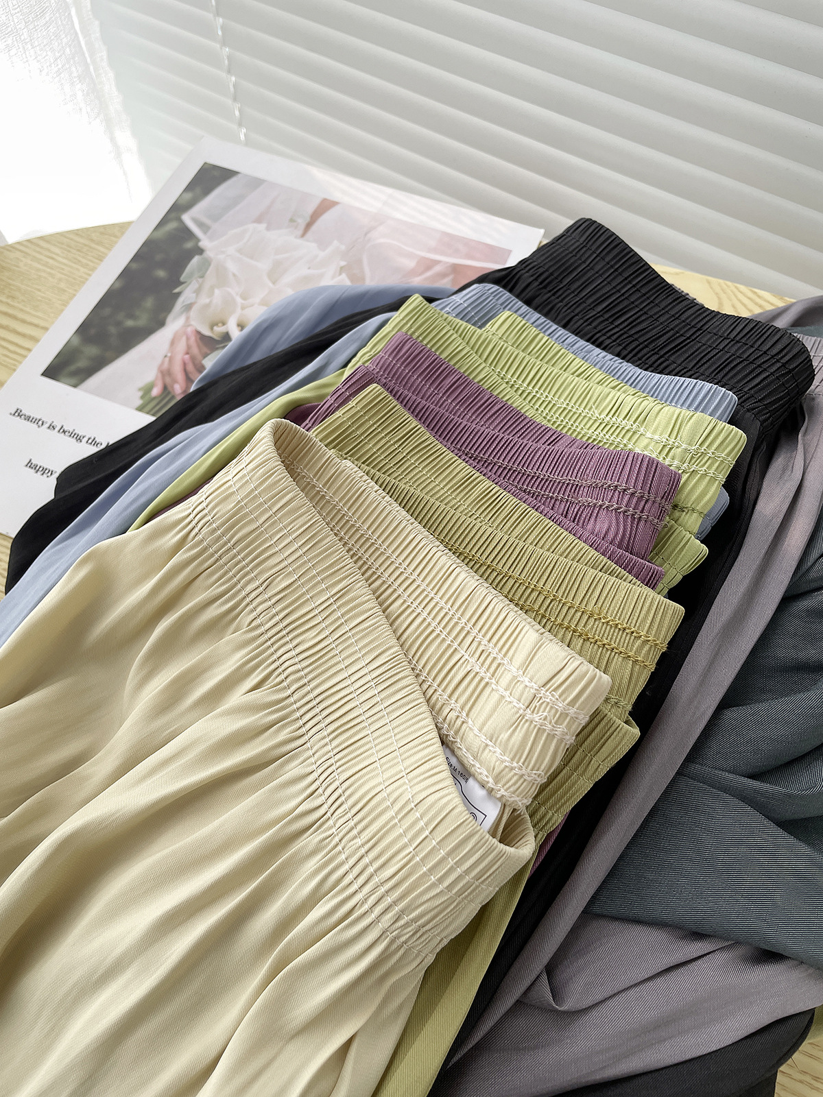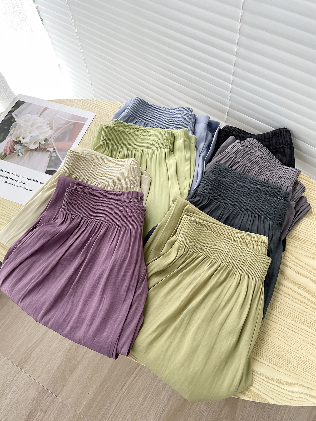 【轻薄垂顺 自带空调风凉感!】2024夏季薄宽松简约风冰丝阔腿裤女高腰防晒垂感休闲运动 长裤装