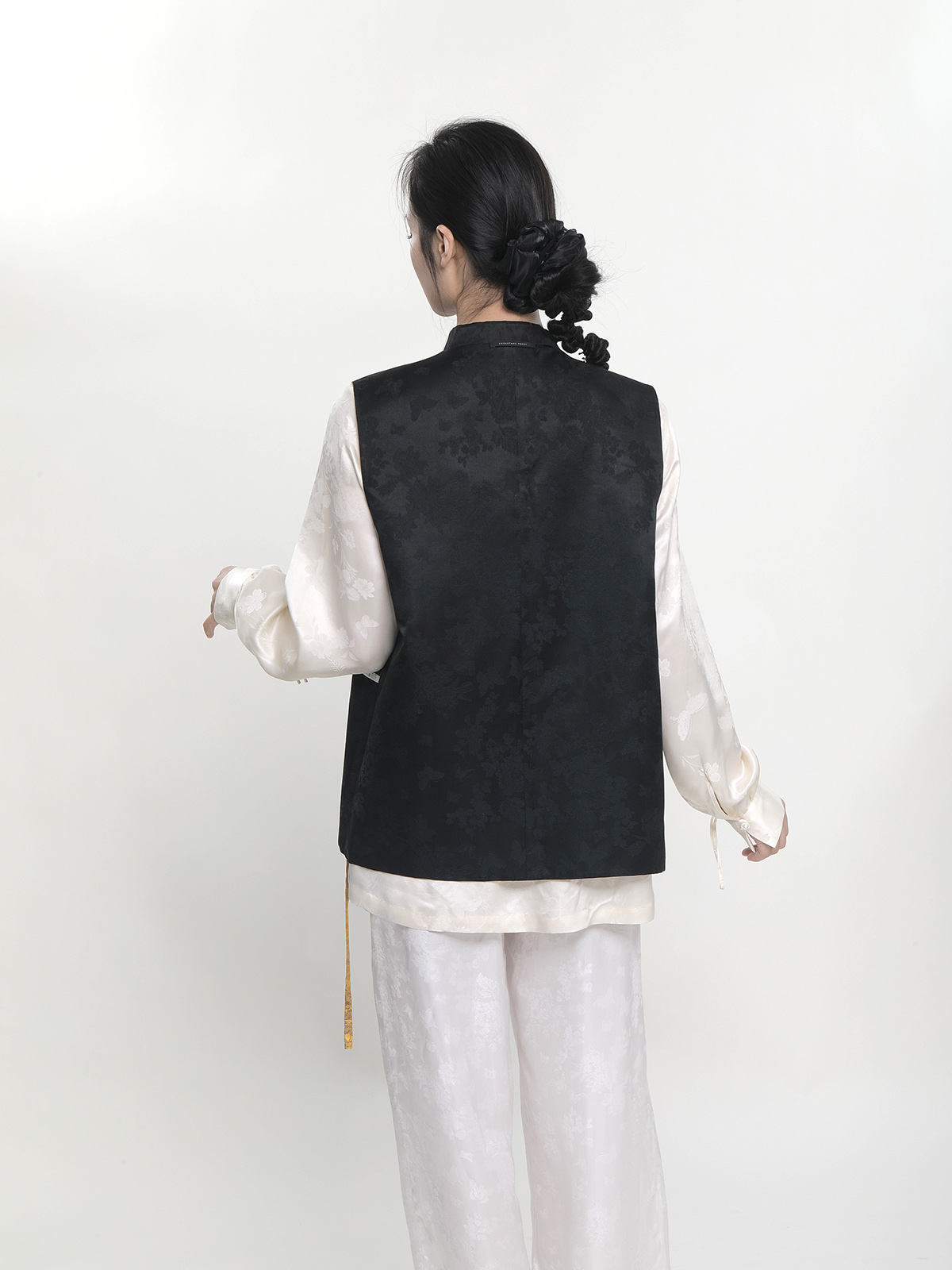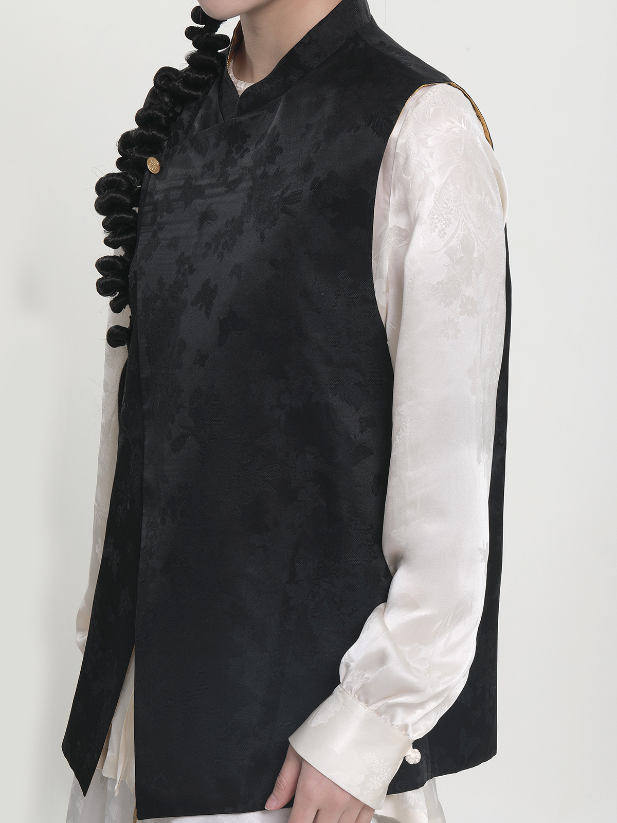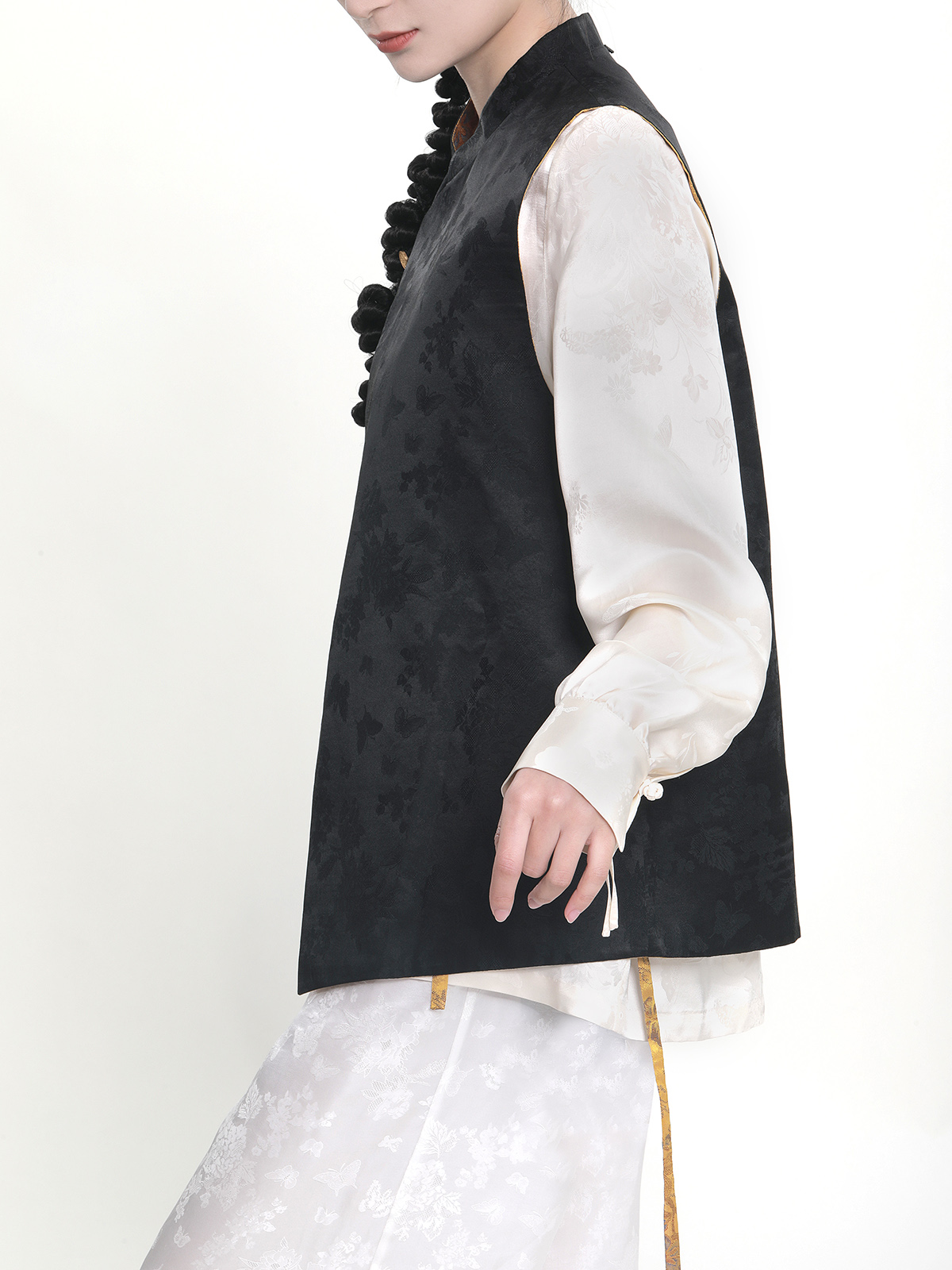 瑕疵| 盛唐牡丹 |花香引蝶真丝宋锦新中式马甲正反两穿(内衬布料随机搭配:黑色蝶恋花内衬或黑色清明上河图内衬)[特价品]](特殊商品不退不换)
