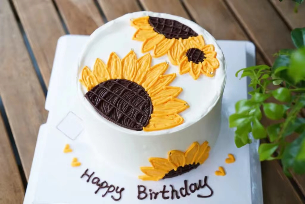 手绘 向日葵 一鲜奶动物奶油蛋糕