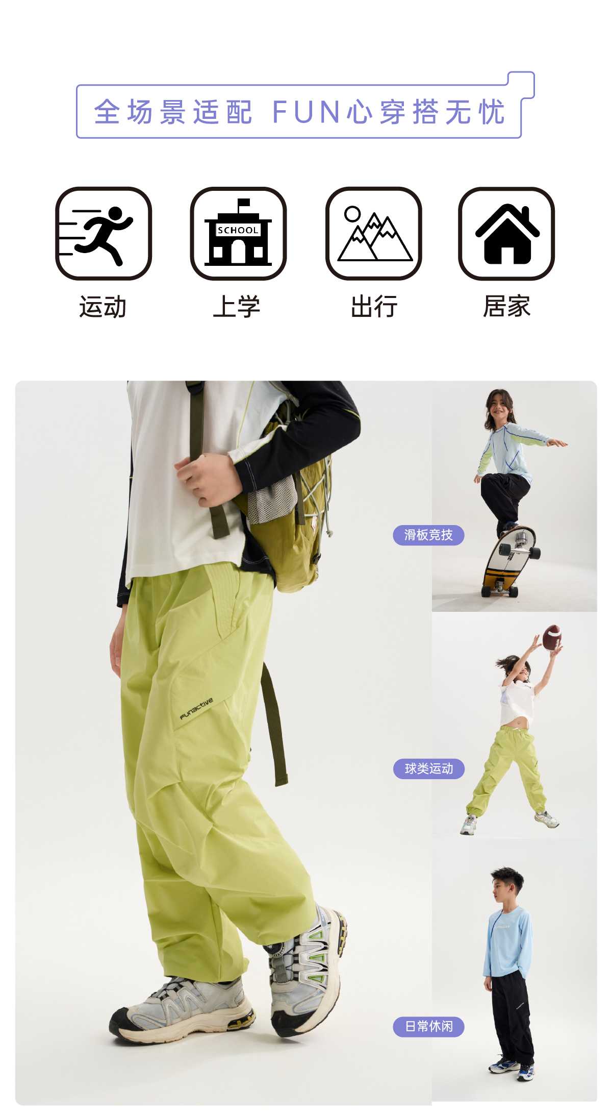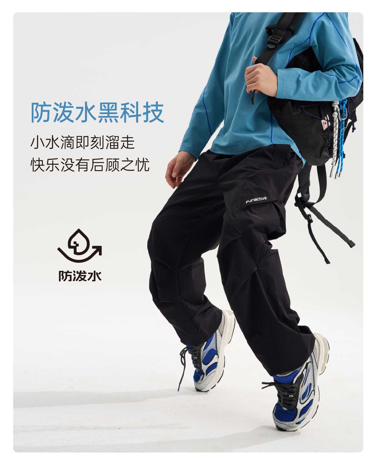 funactive男童束脚工装裤儿童户外运动防泼水裤子F1UK30331
