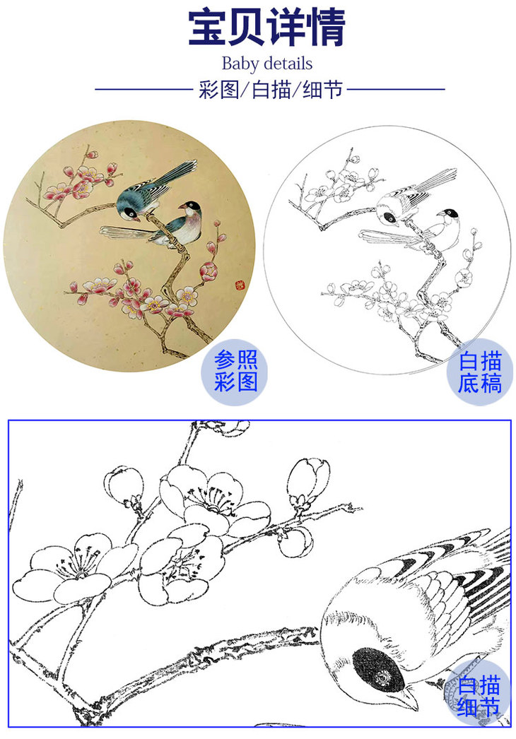 戴青池工笔花鸟小品白描底稿-多种白描尺寸可选-DQ26