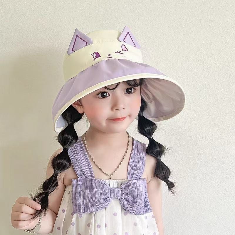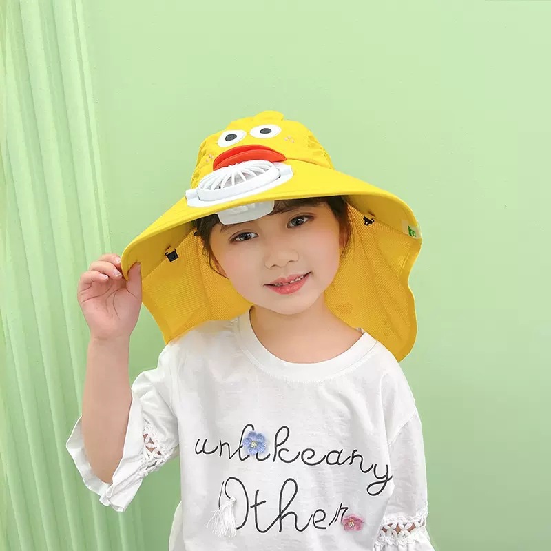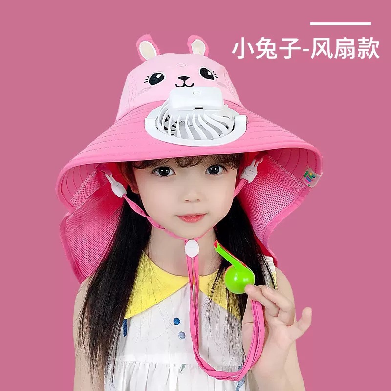 【大檐遮阳❗️超萌】大檐风扇帽夏季女童防晒帽防紫外线空顶遮阳帽可折叠男宝宝帽超萌,ya