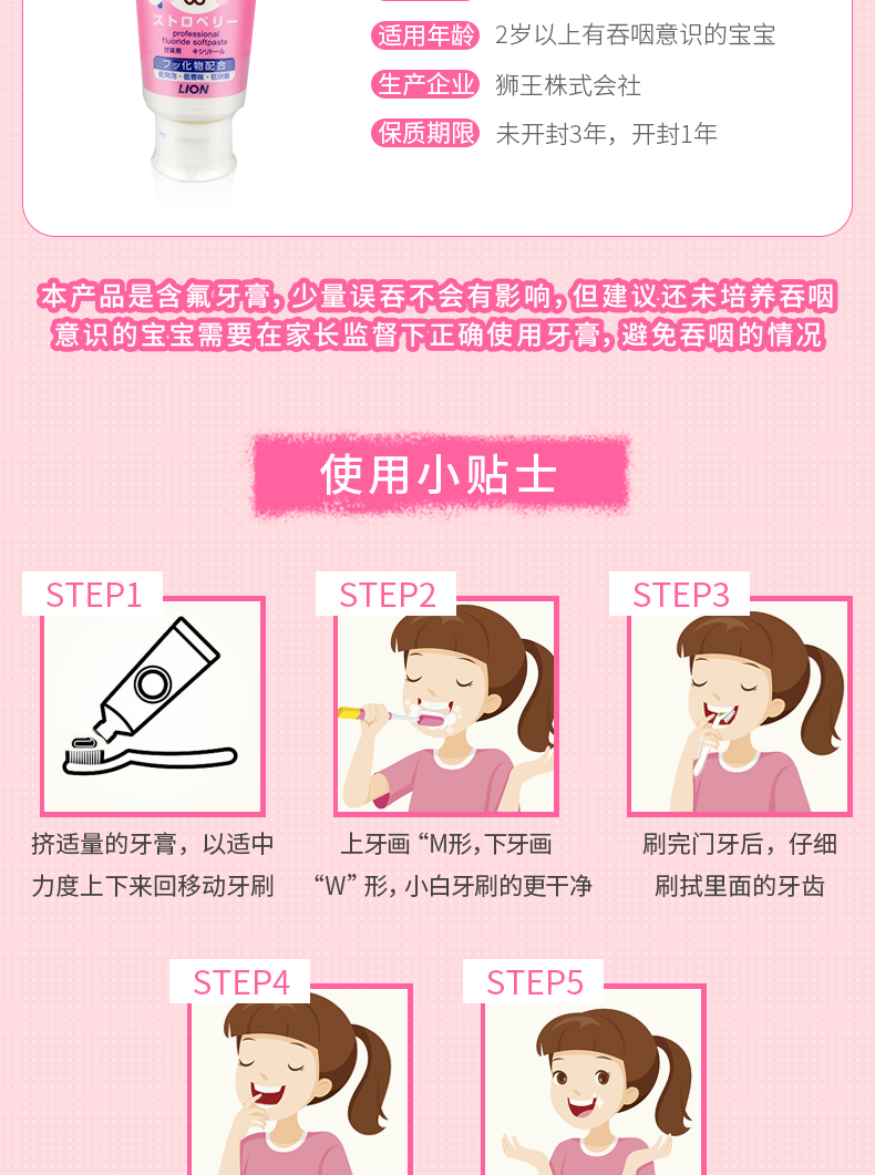 狮王LION儿童宝宝Check up低氟防蛀牙膏60g