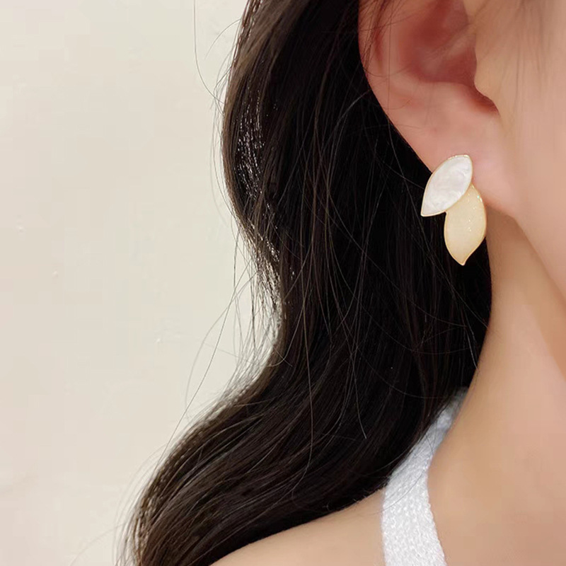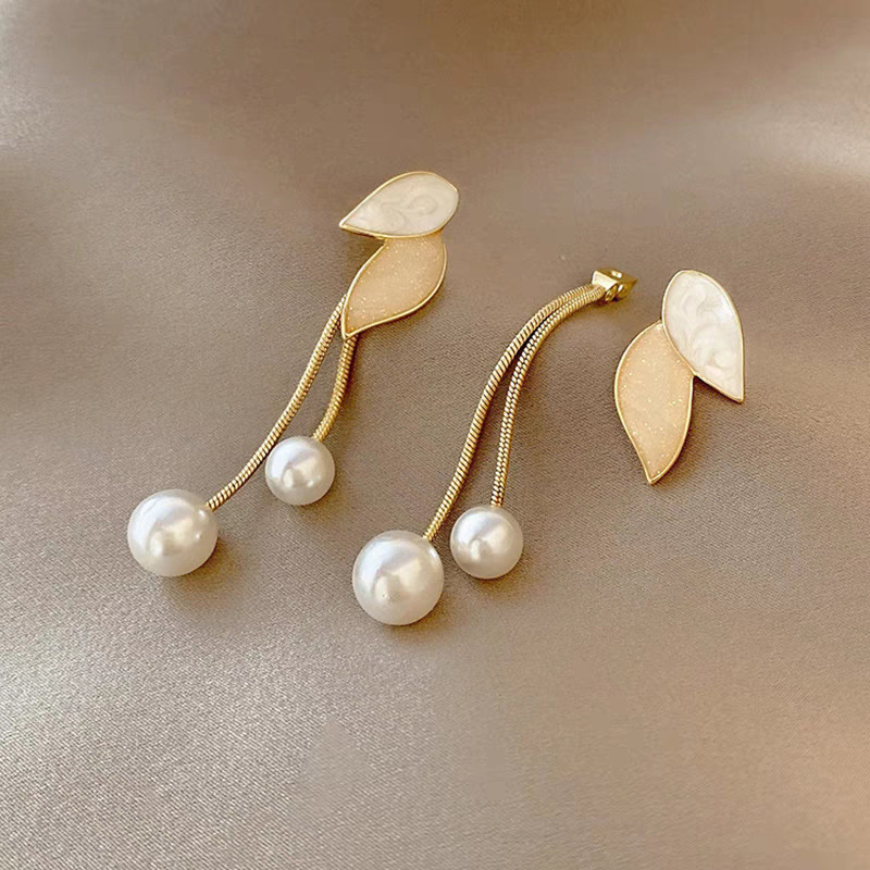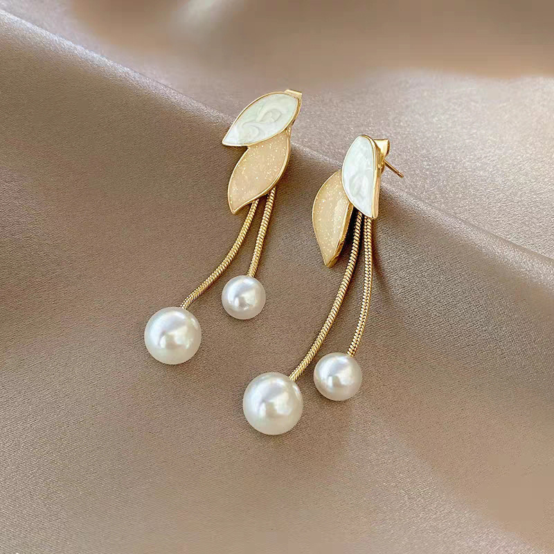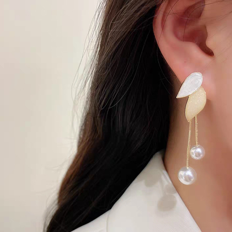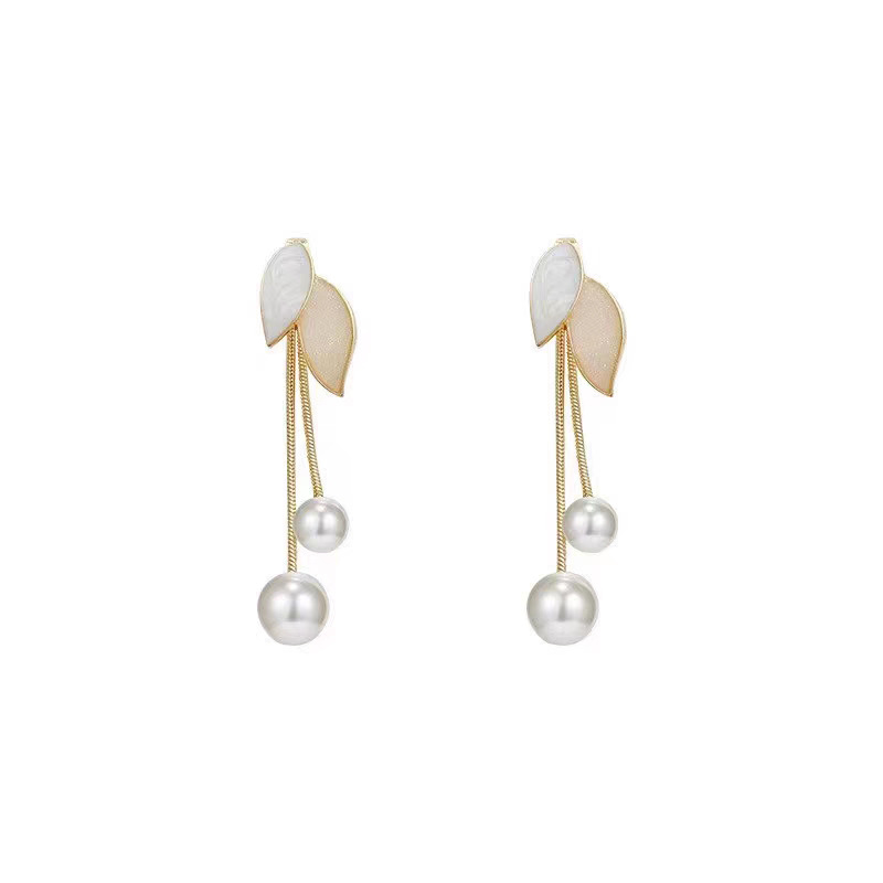 JU-C0028法式夏季新款树叶珍珠流苏耳环女清新叶子滴油气质耳钉潮长款耳饰