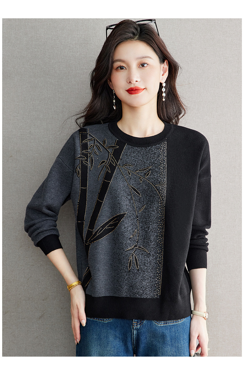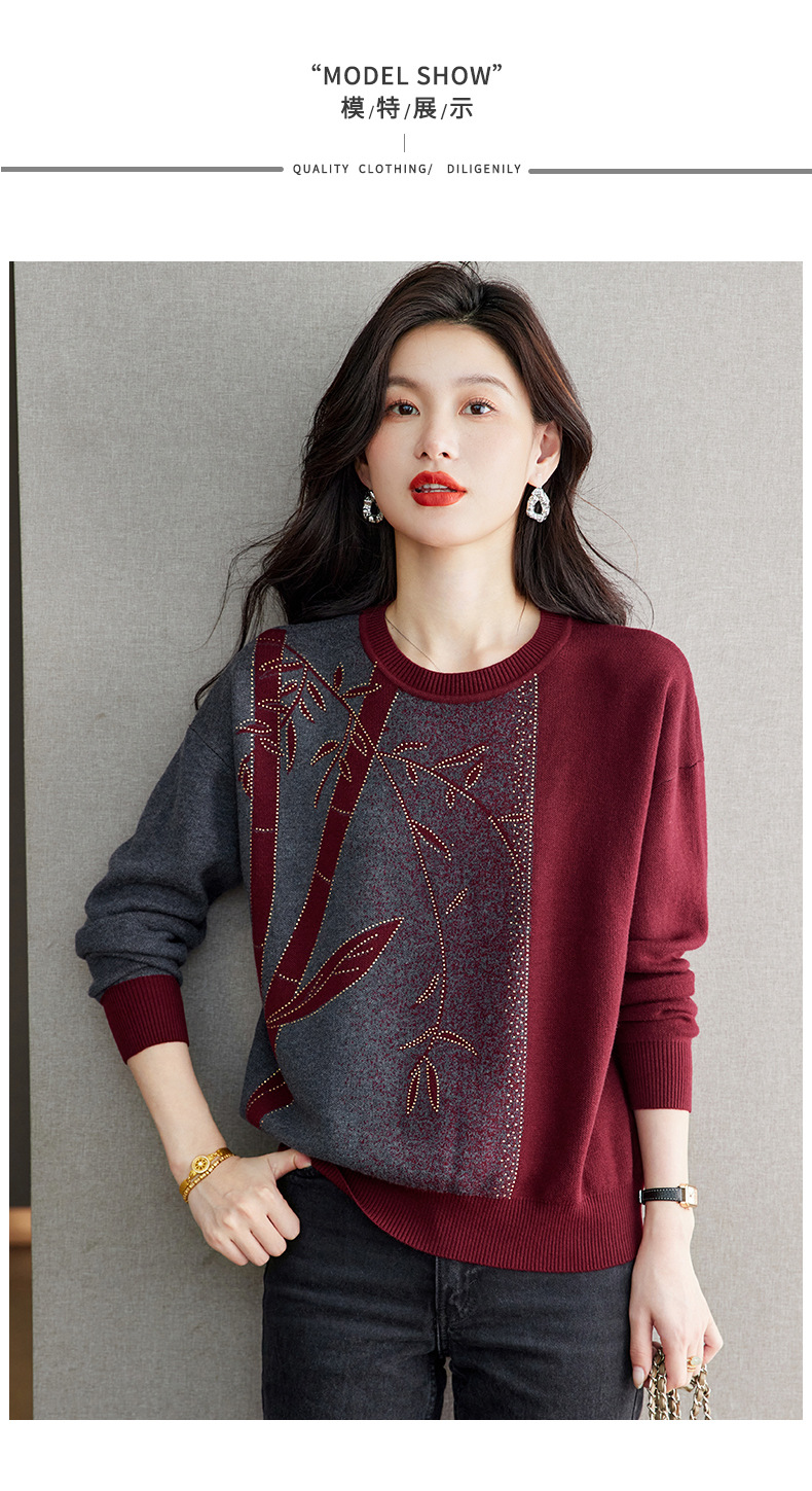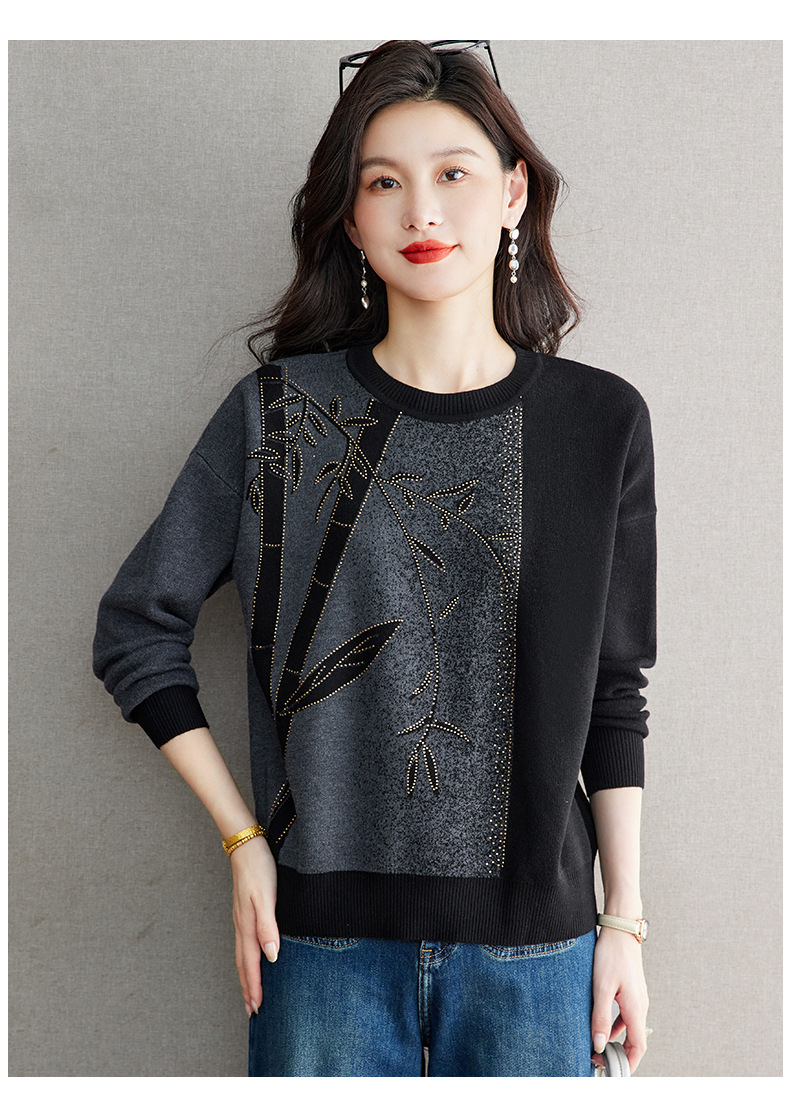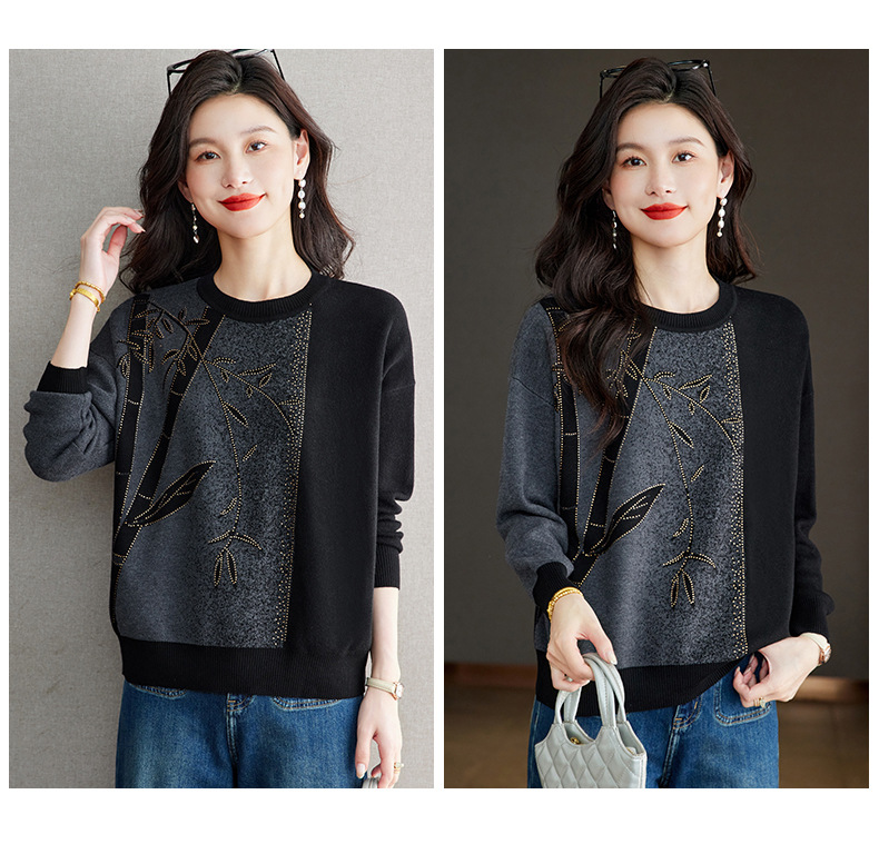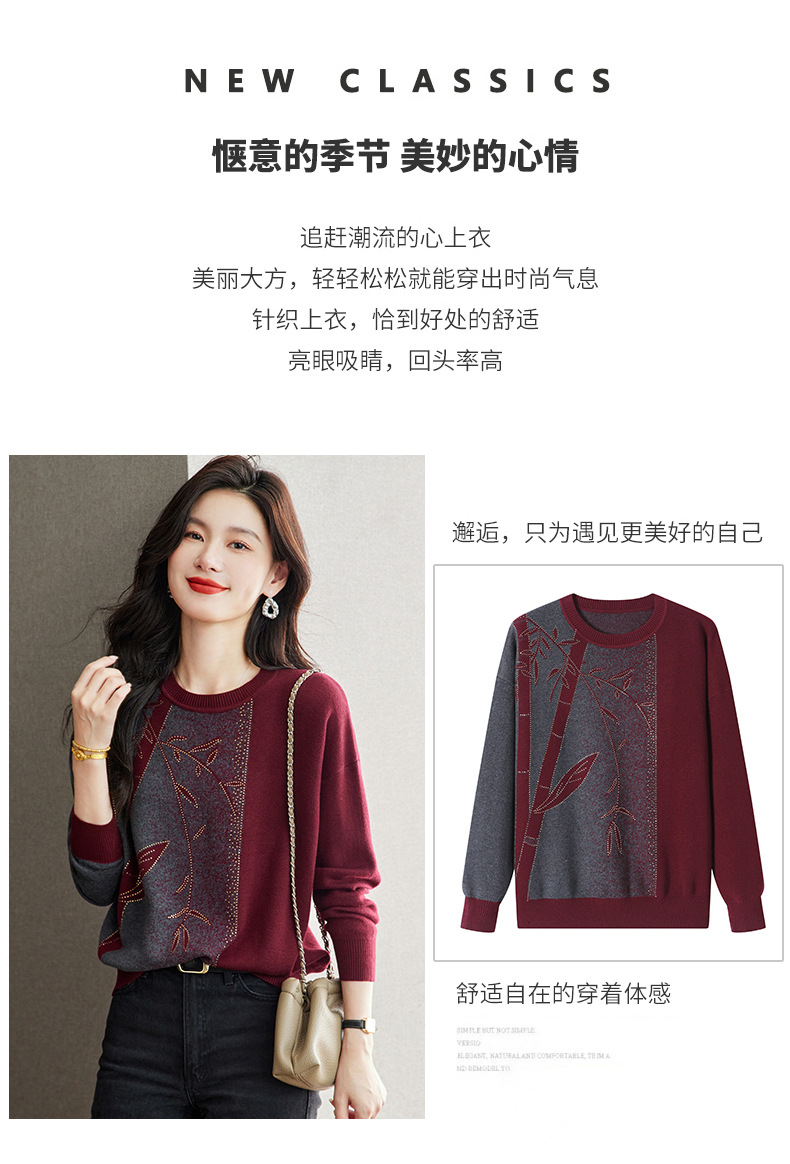 M2746-158高级感针织衫短款打底衫女2025秋冬新款原宿风妈妈装毛衣烫钻上衣