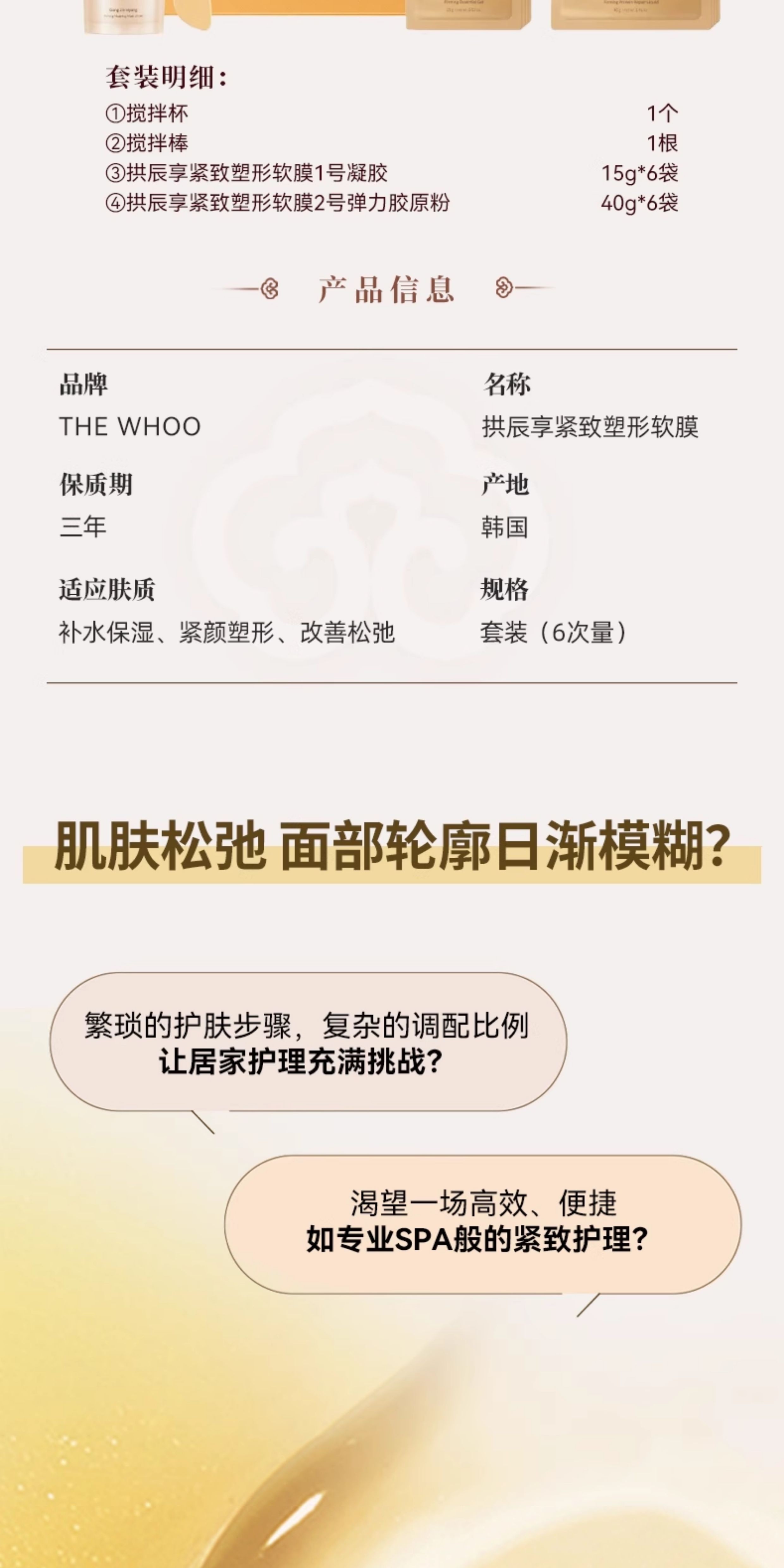 【保税仓】THE WHOO后拱辰享紧致塑形面膜套装(精华凝胶15g*6片+修复面膜40g*6片/套)