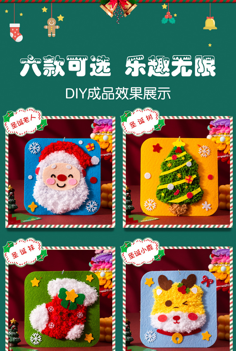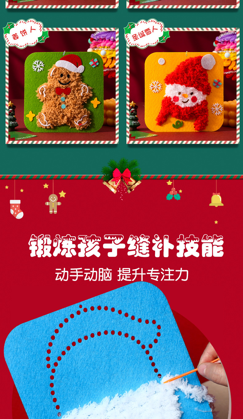 【圣诞穿线画,DIY手互制作材料包】圣诞节小礼物 物品挂件饰 儿童不织布缝缝乐手工diy材料包 幼儿园玩具-QQ