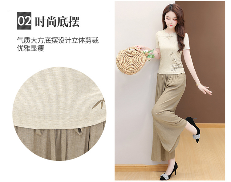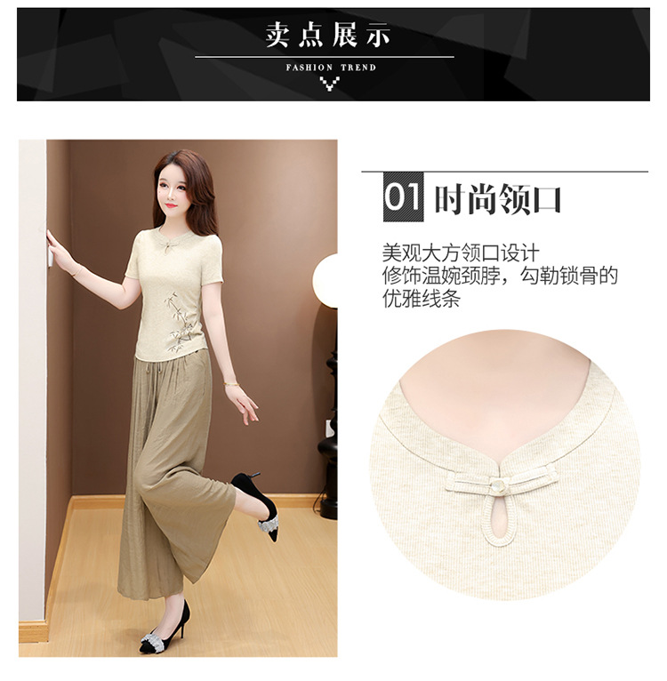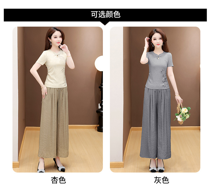 QYMYJ-25DA45-L 2025年夏款新中式复古短袖T恤衫松紧腰垂感休闲阔腿裤时尚两件套 商品缩略图0 QYMYJ-25DA45-L 2025年夏款新中式复古短袖T恤衫松紧腰垂感休闲阔腿裤时尚两件套 商品缩略图1