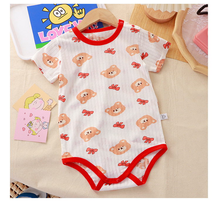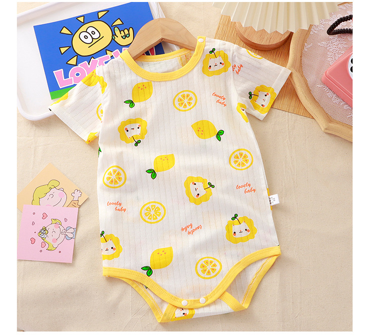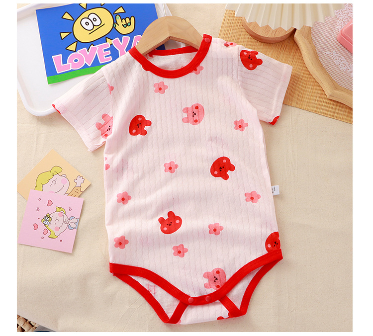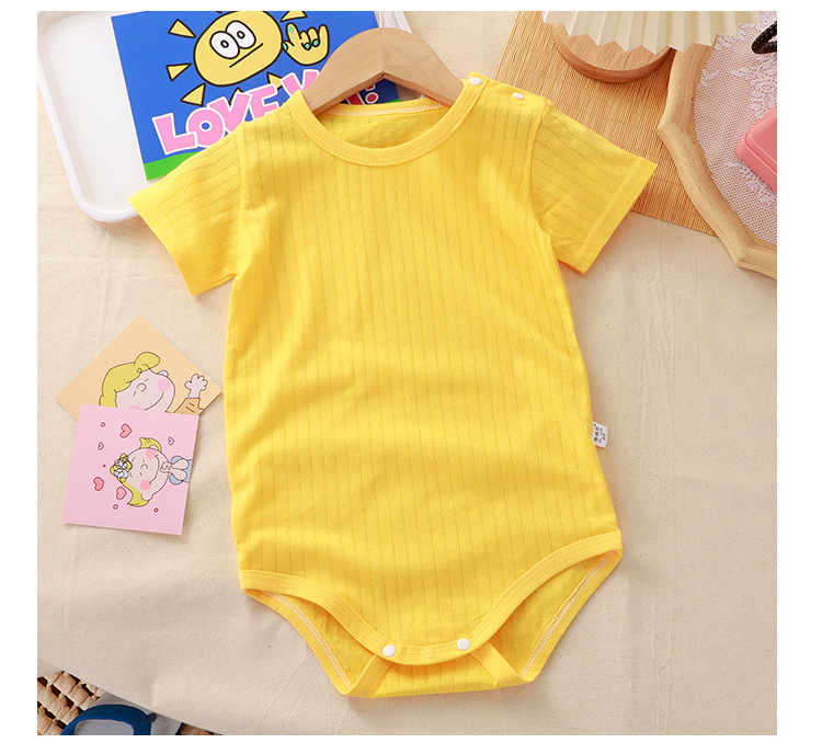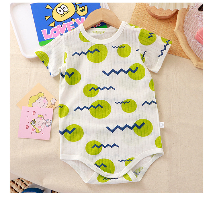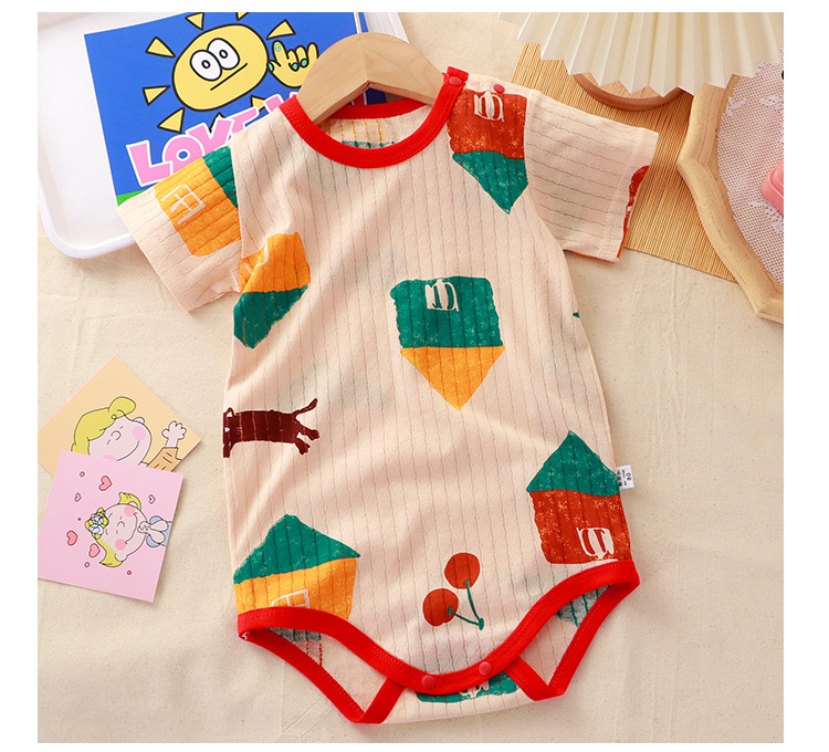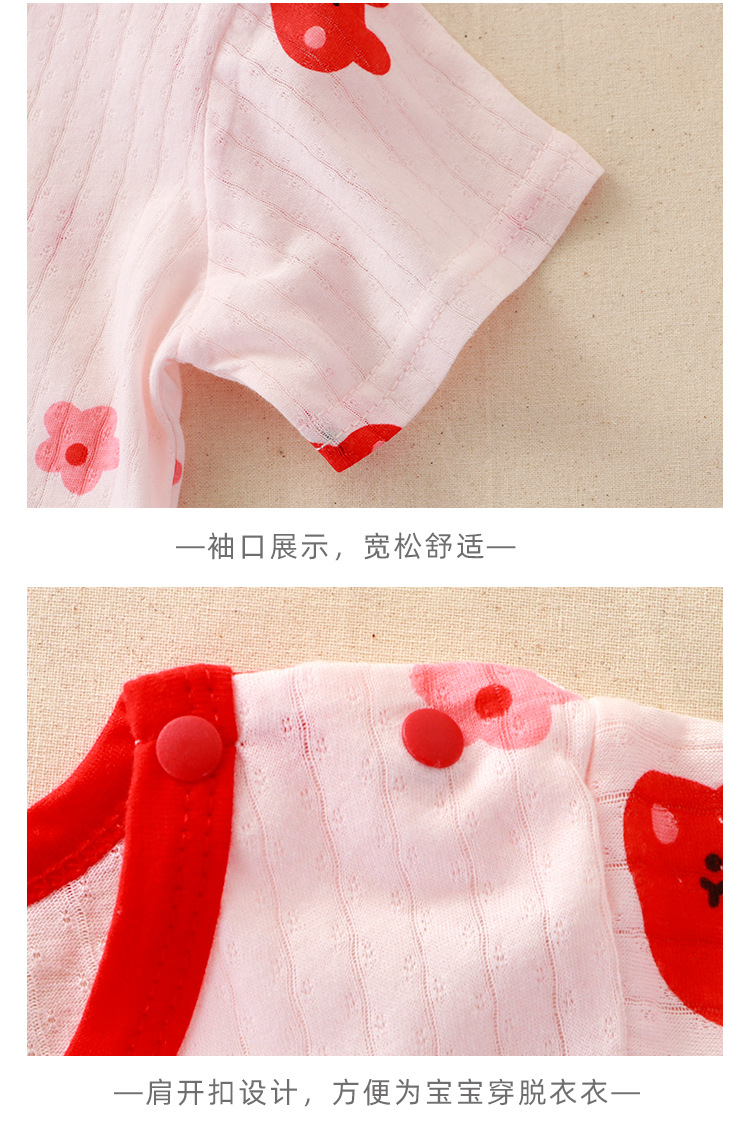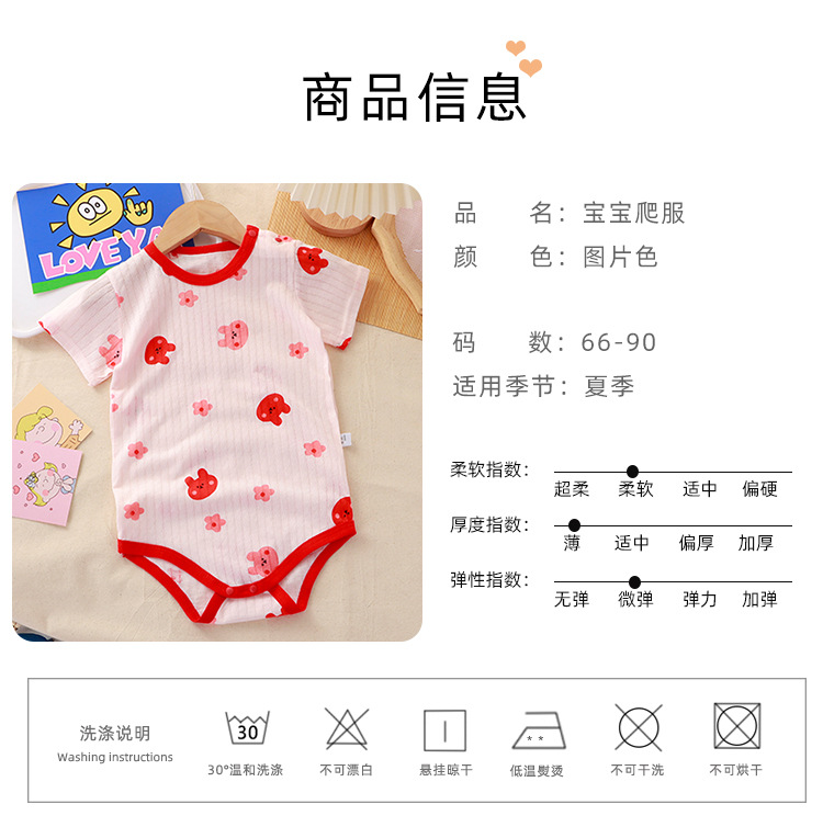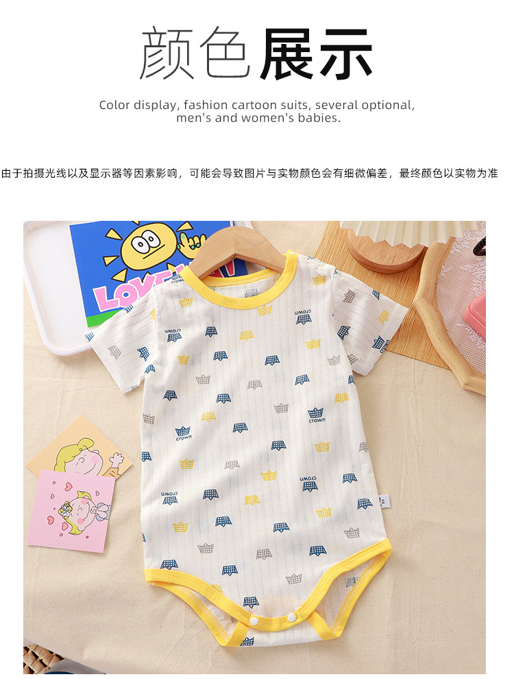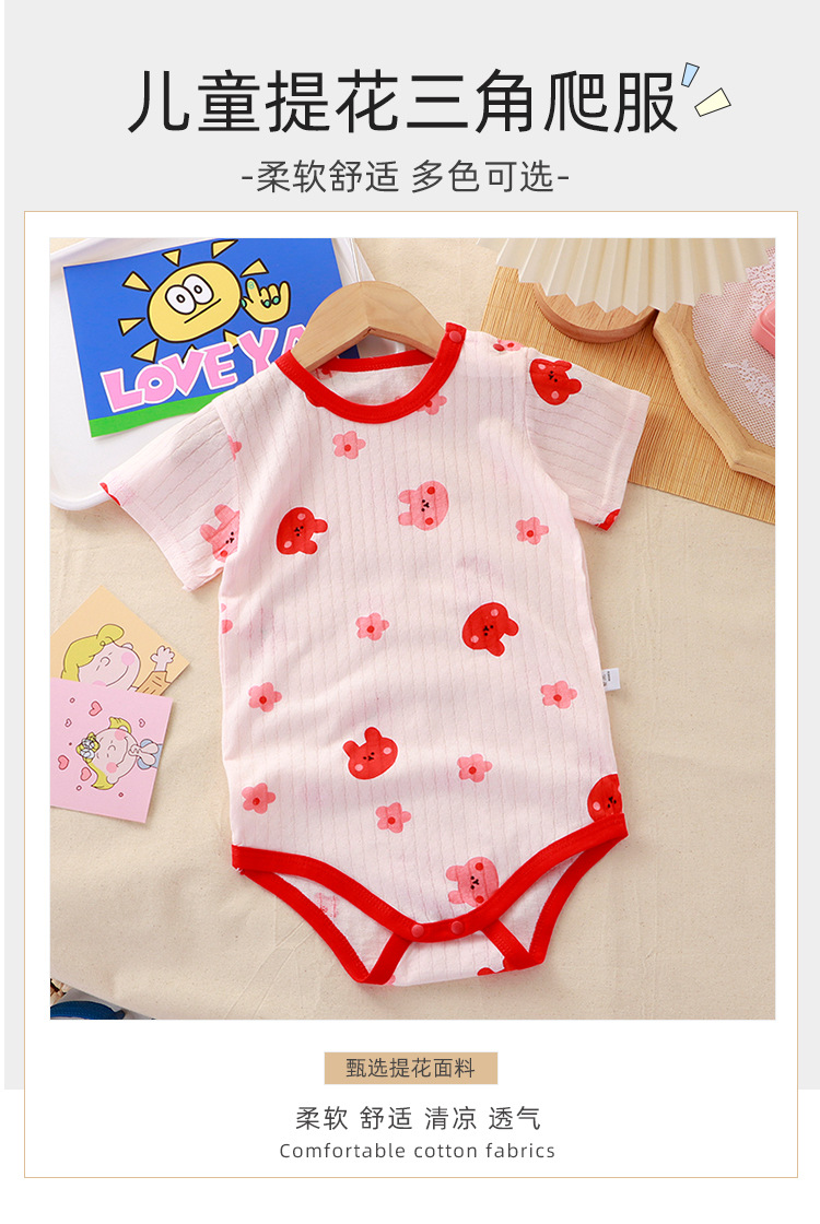 【49.9/任选2件】儿童提花三角爬服 婴儿包屁衣服 夏季包臀 春装男女宝宝 纯棉连体短袖小童新生儿三角哈衣-QQ
