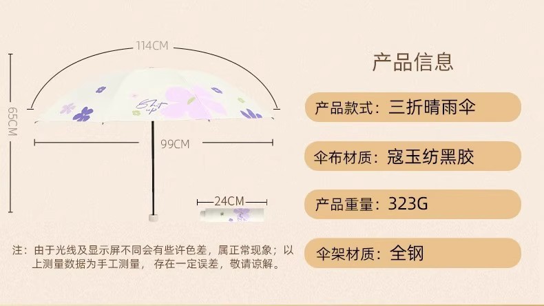 天堂伞黑胶防晒折叠伞(甘酪白)/1把补单专用