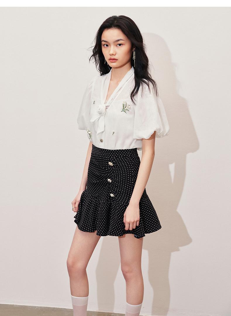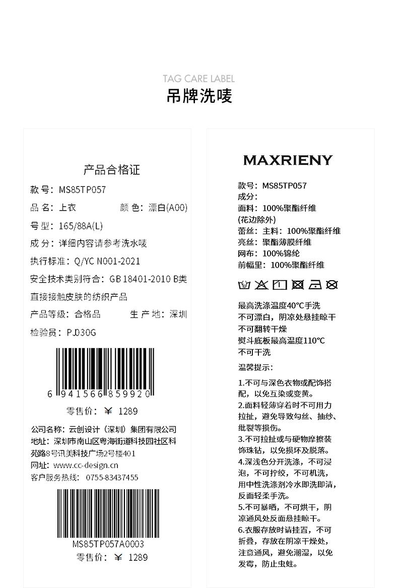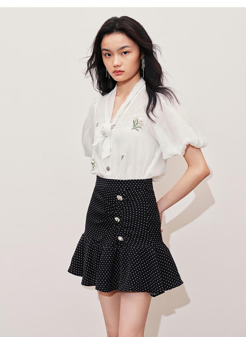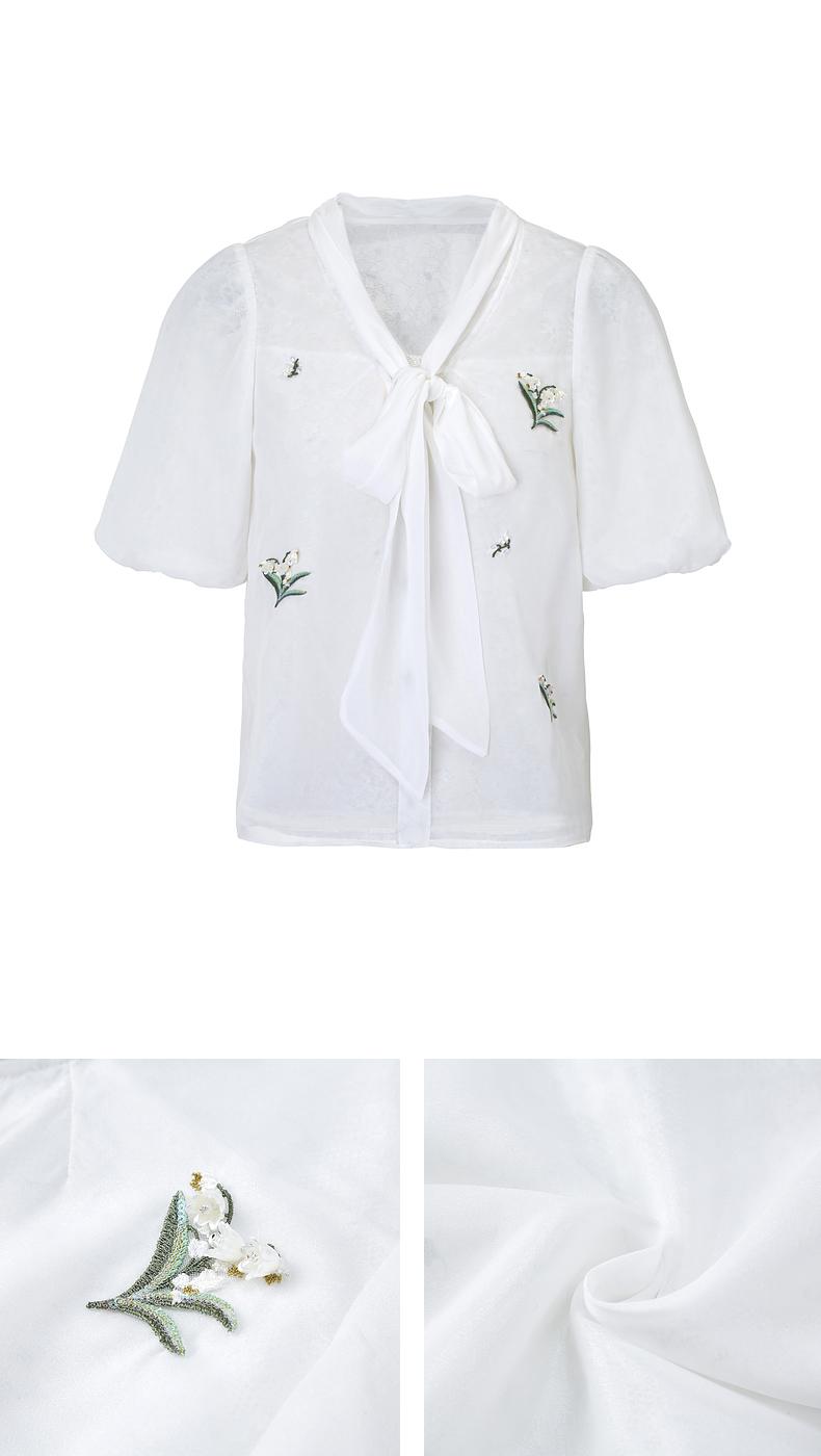 MAXRIENY2024小香风气质白色高腰时尚休闲印花设计师蕾丝雪纺衫(货号:MS85TP057)