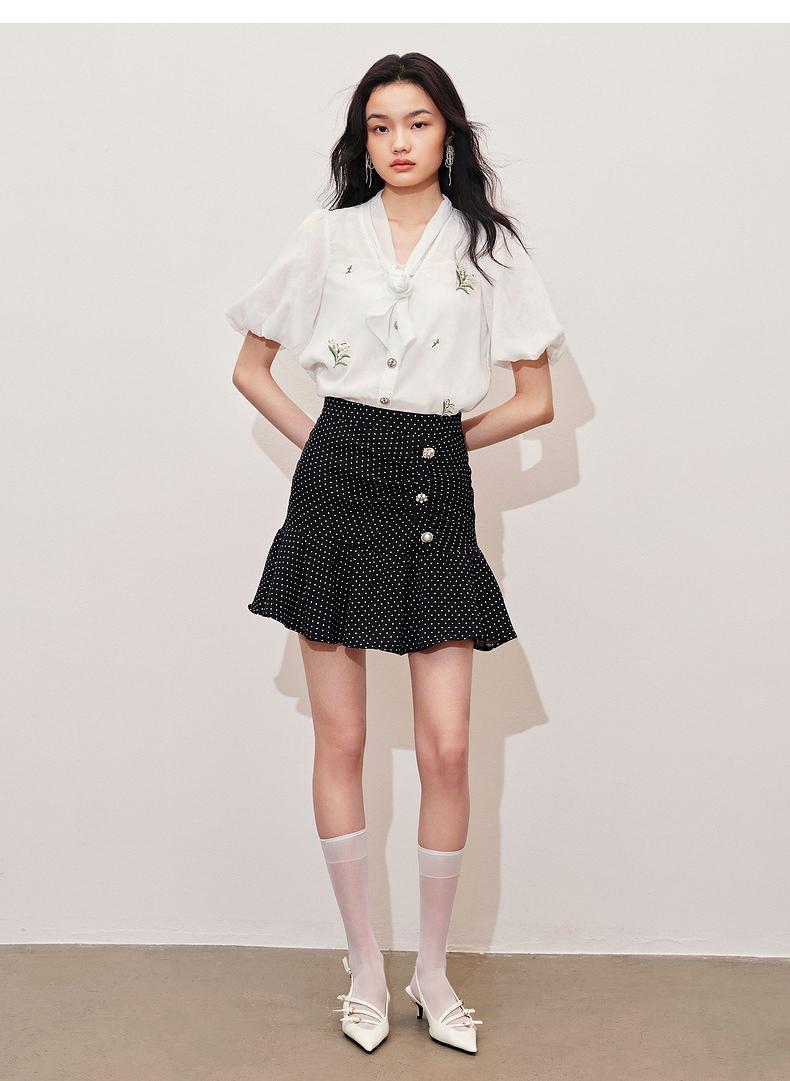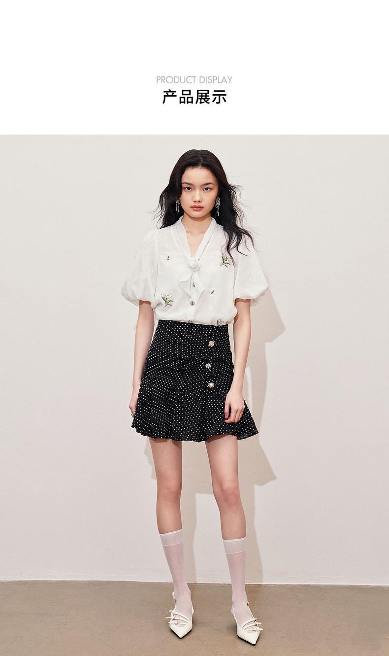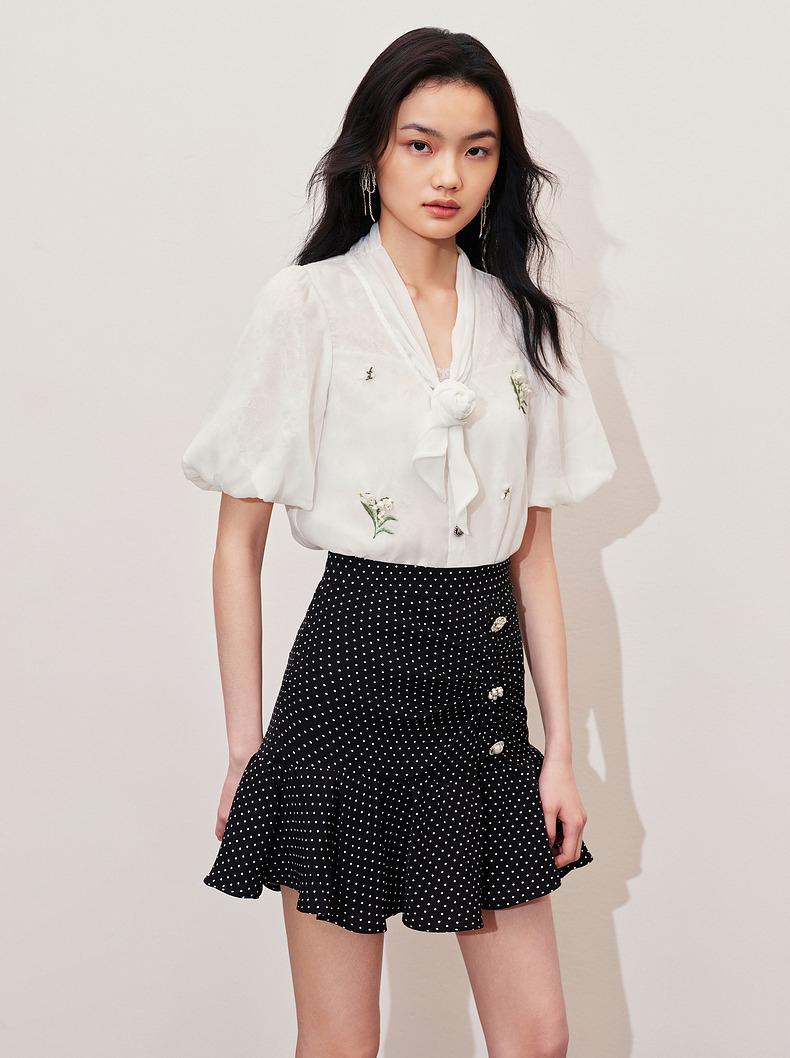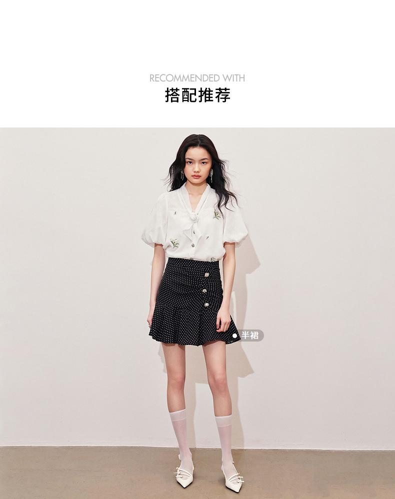 MAXRIENY2024小香风气质白色高腰时尚休闲印花设计师蕾丝雪纺衫(货号:MS85TP057)
