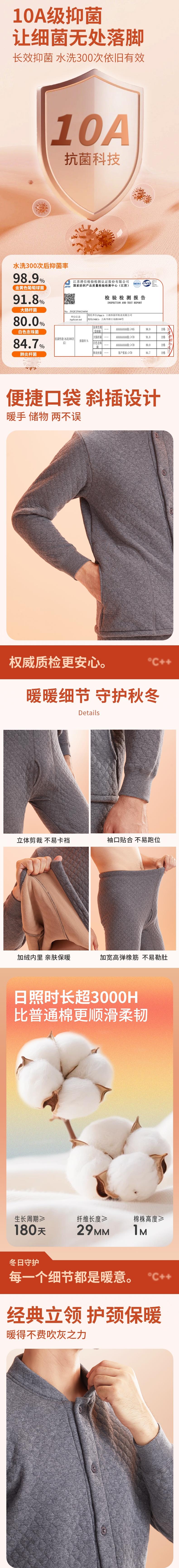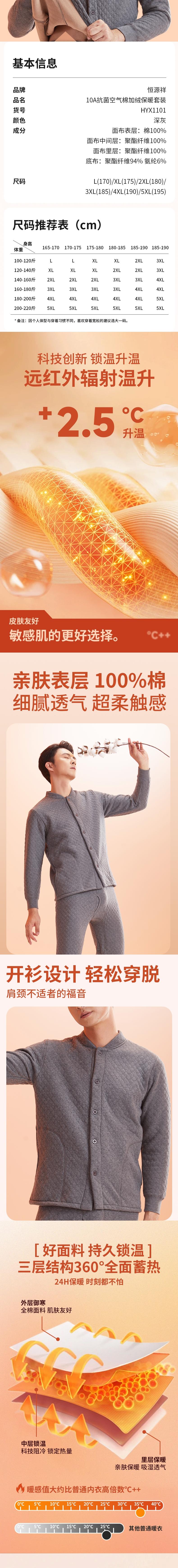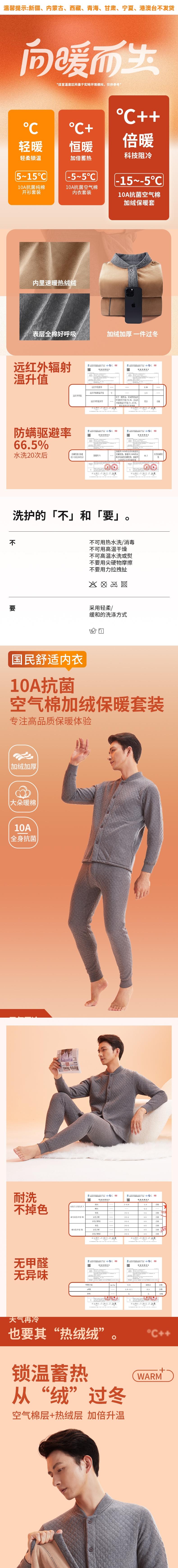 恒源祥 10A抗菌空气棉加绒保暖套装 HYX1101