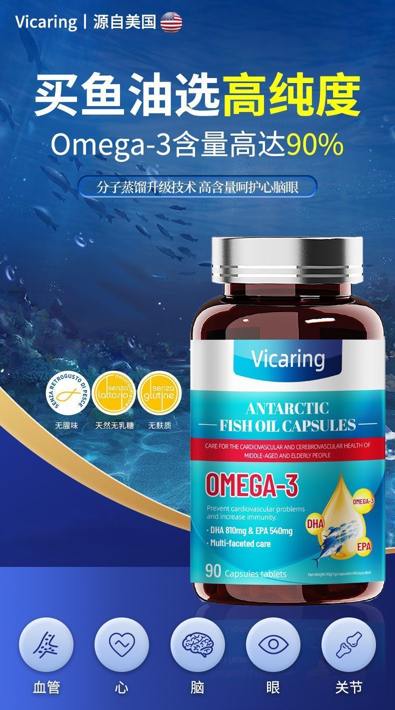 Vicaring磷虾鱼油凝胶糖果 63g(0.7g/粒x90粒/瓶)