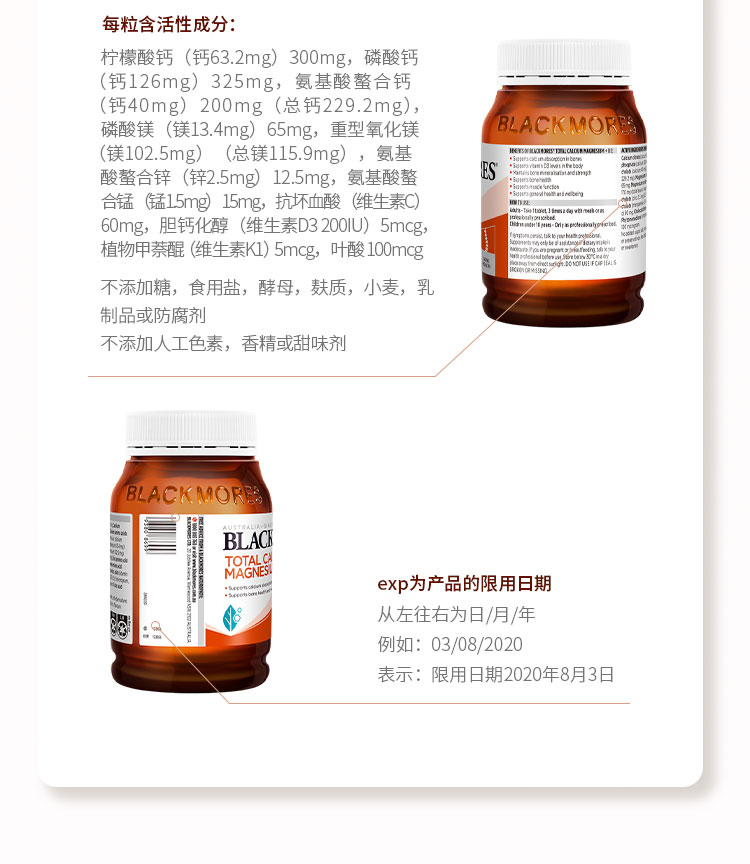 【跨境】澳佳宝Blackmores 钙镁维生素D3 200粒/瓶