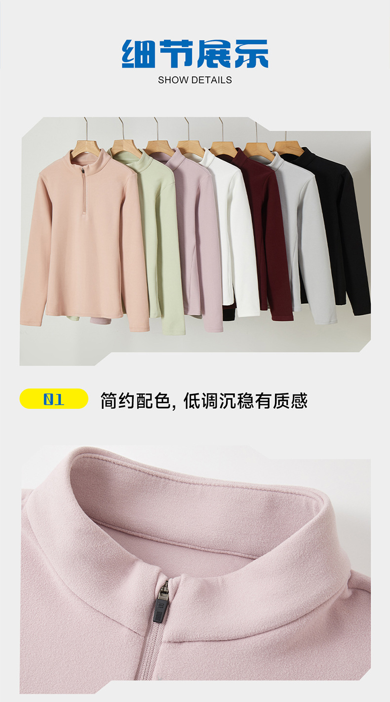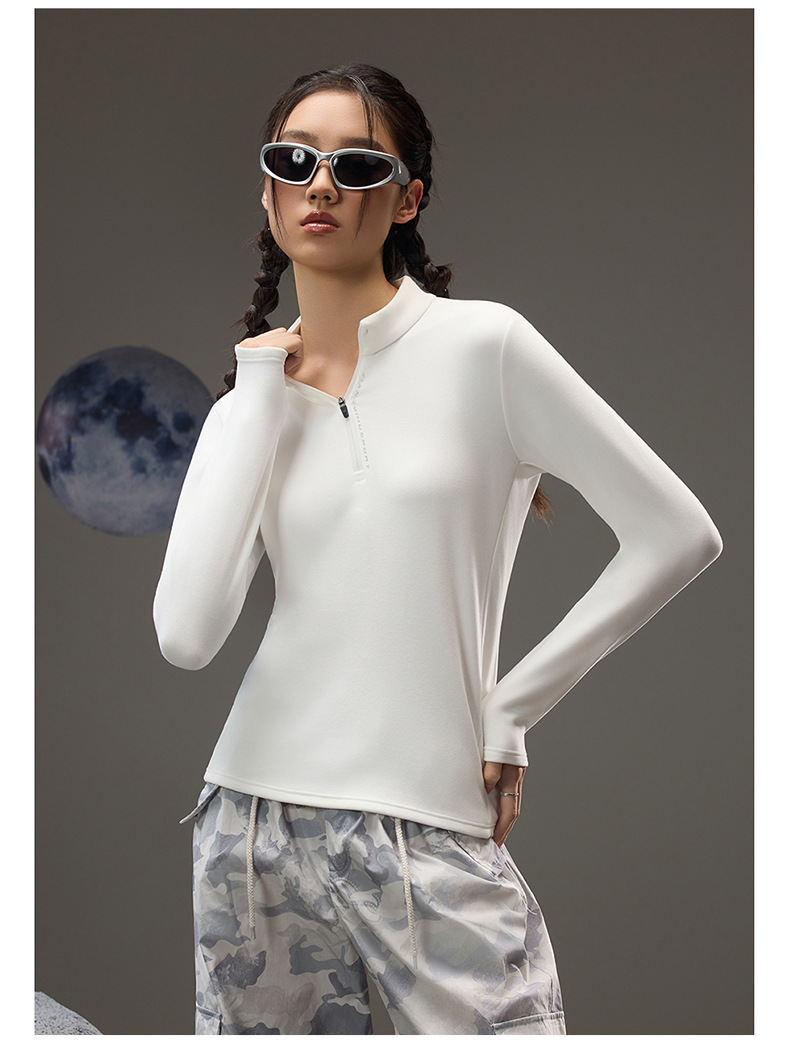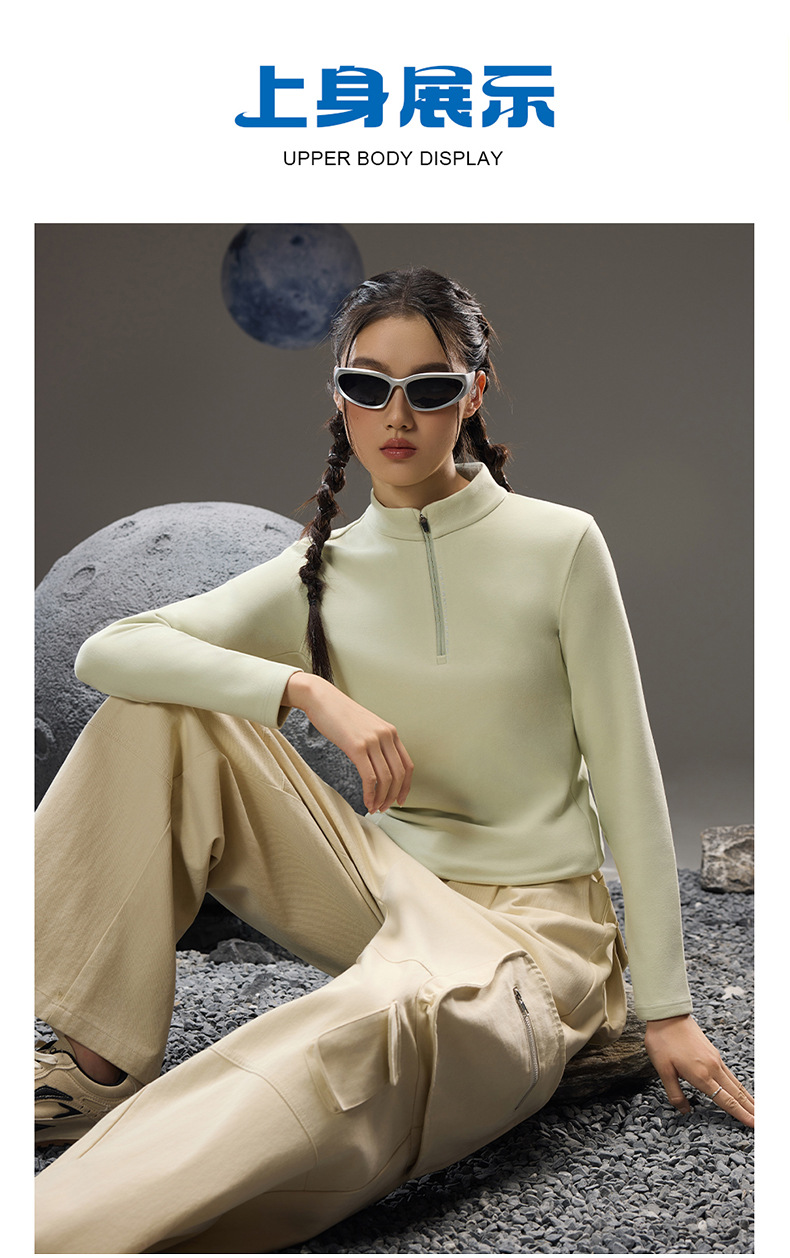 百媚生 中高领磨毛超柔打底衫女户外运动保暖套头卫衣8082