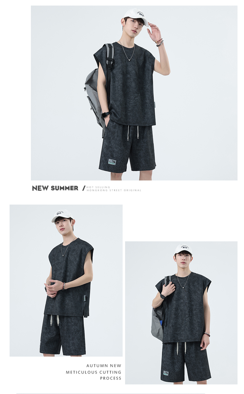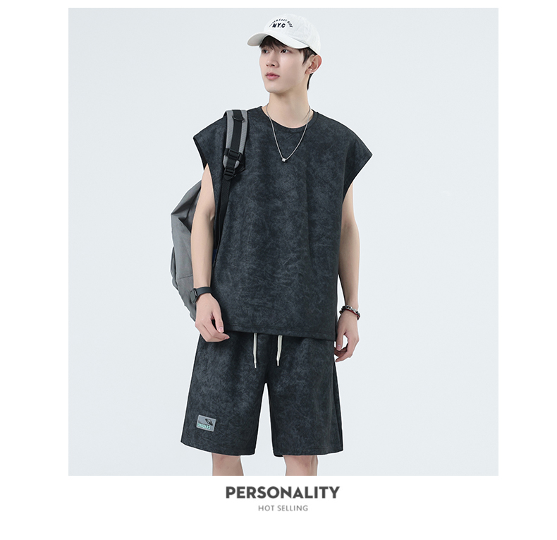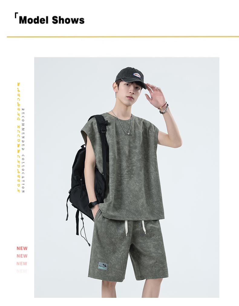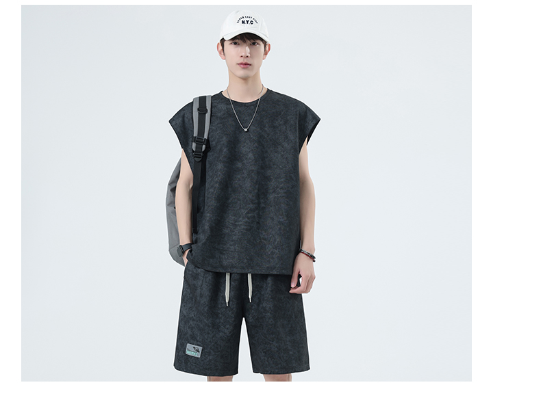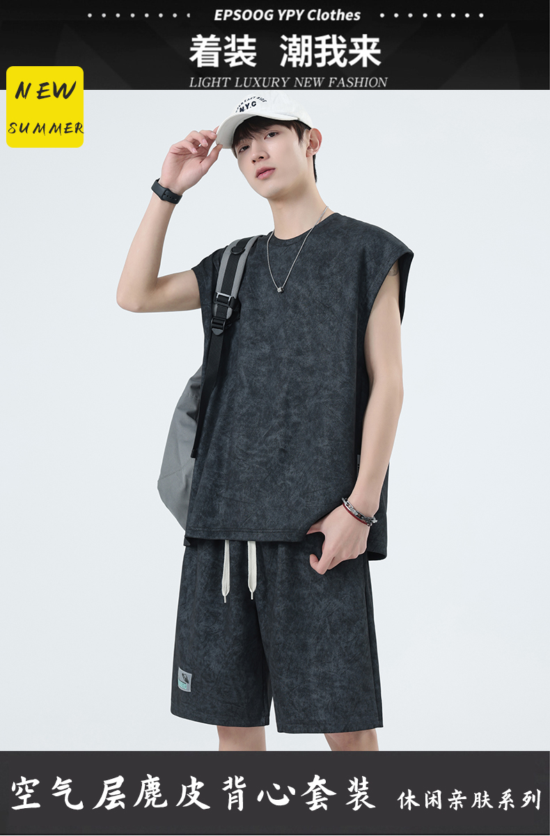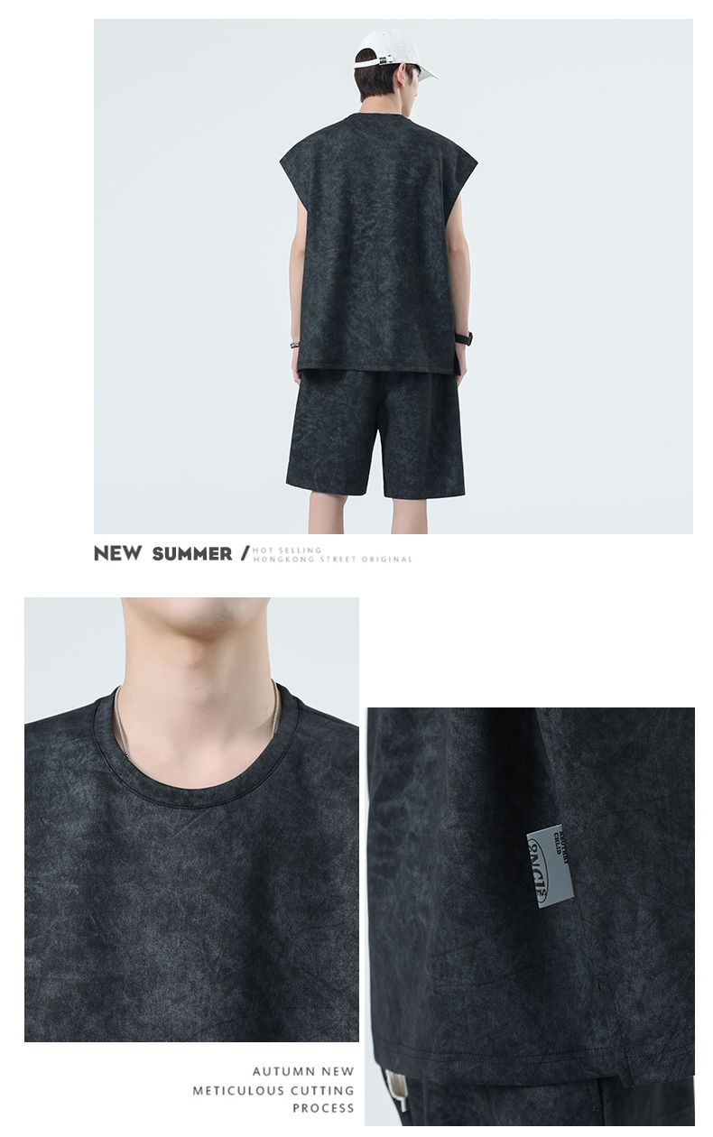 【特大码】【空气层】【DSY】大依优型大码圆领短袖背心T恤短裤套装夏季加肥加大肥佬休闲宽松透气上衣男士无袖夏装300斤