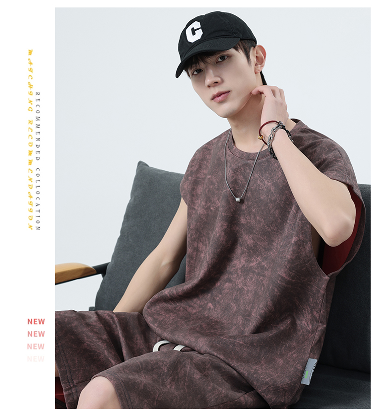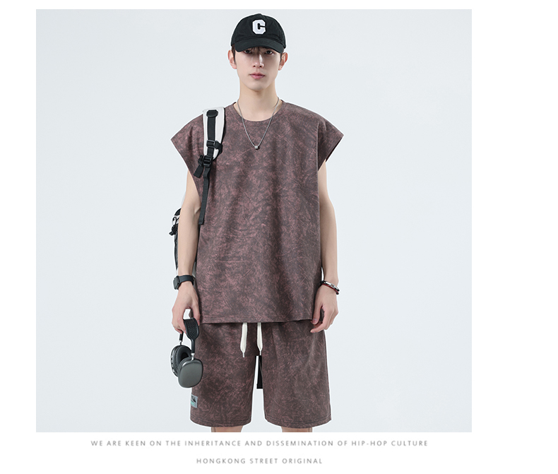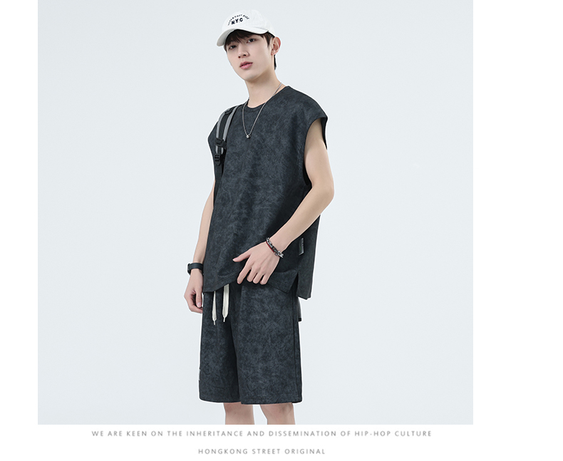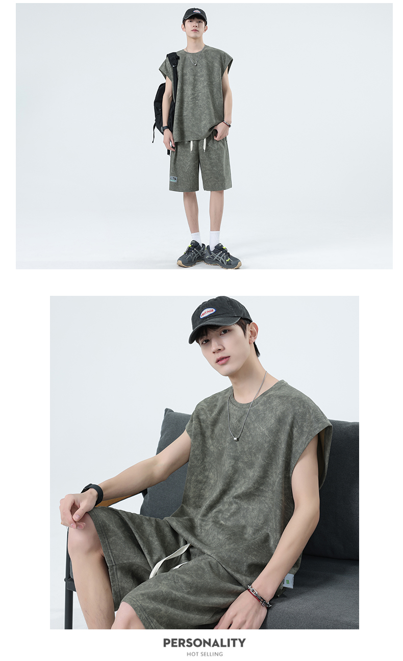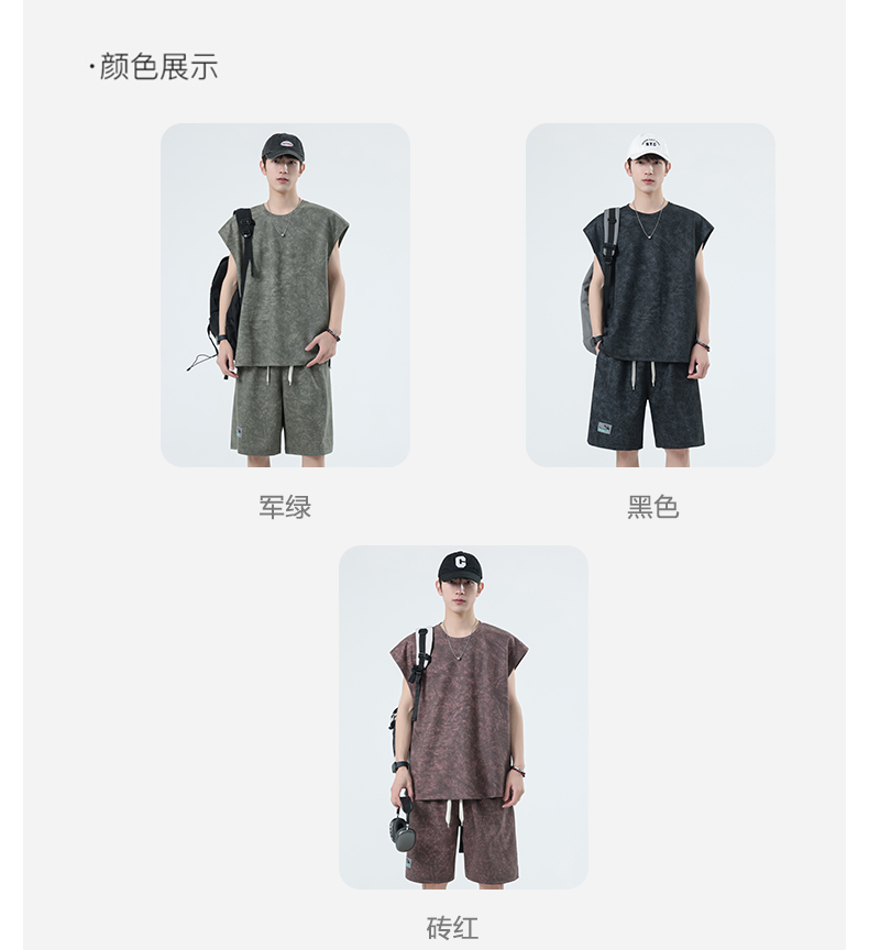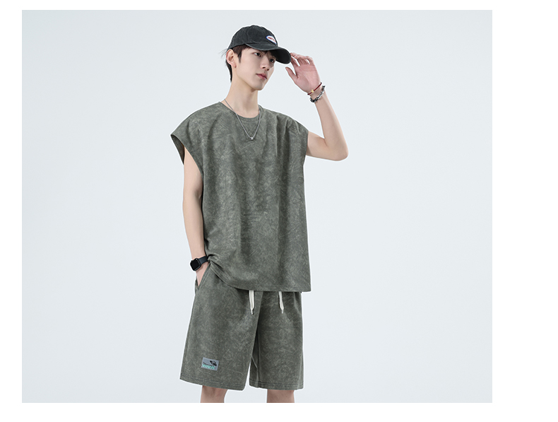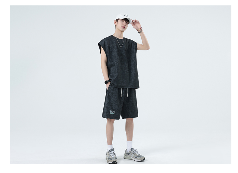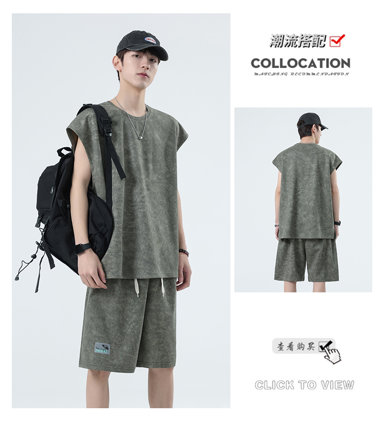 【特大码】【空气层】【DSY】大依优型大码圆领短袖背心T恤短裤套装夏季加肥加大肥佬休闲宽松透气上衣男士无袖夏装300斤