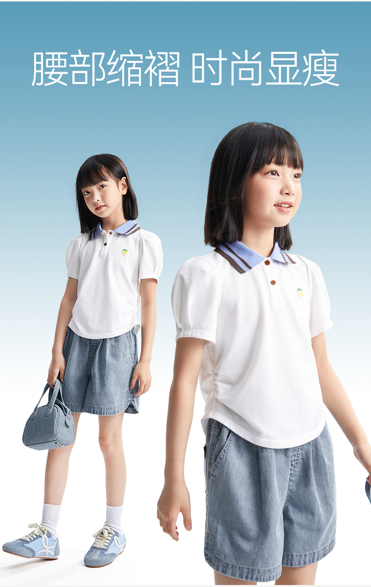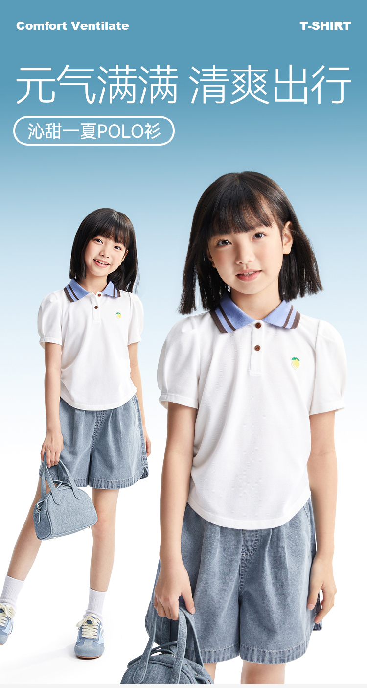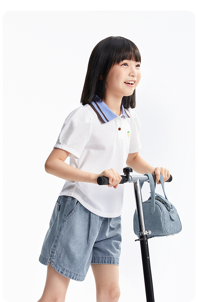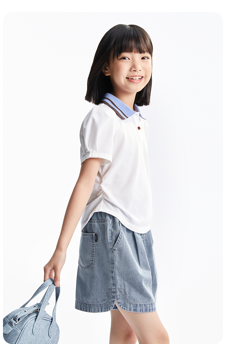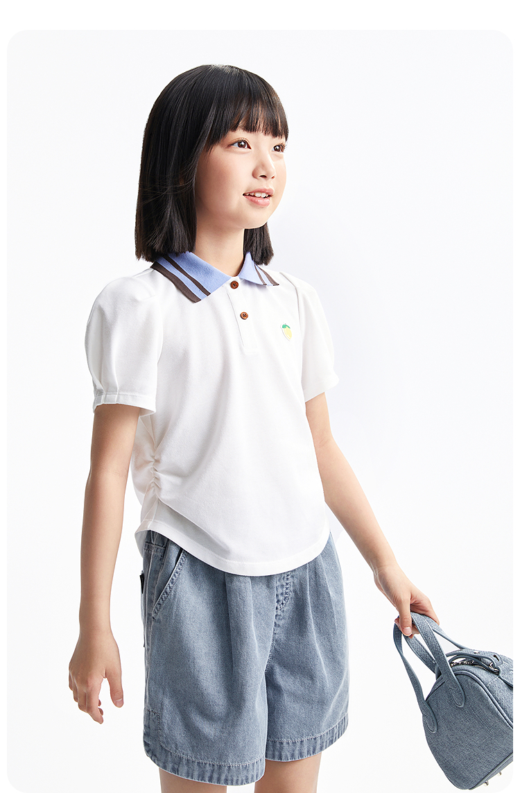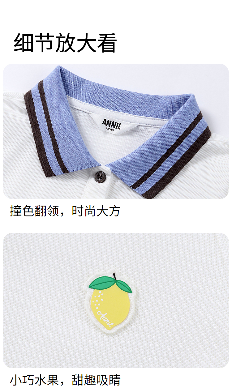 女童翻领短袖针织衫夏季新款安奈儿童装EG621699