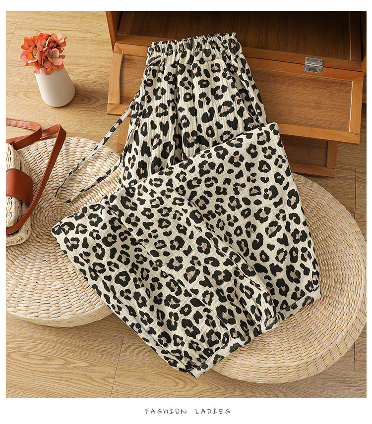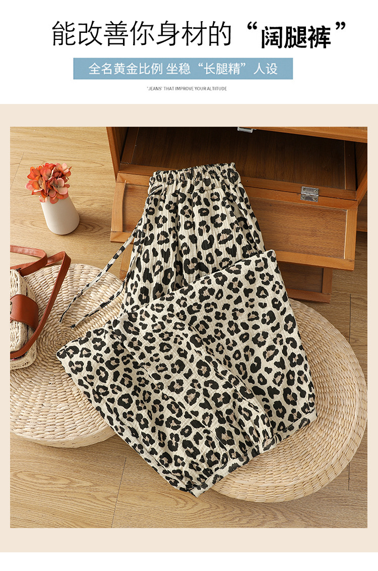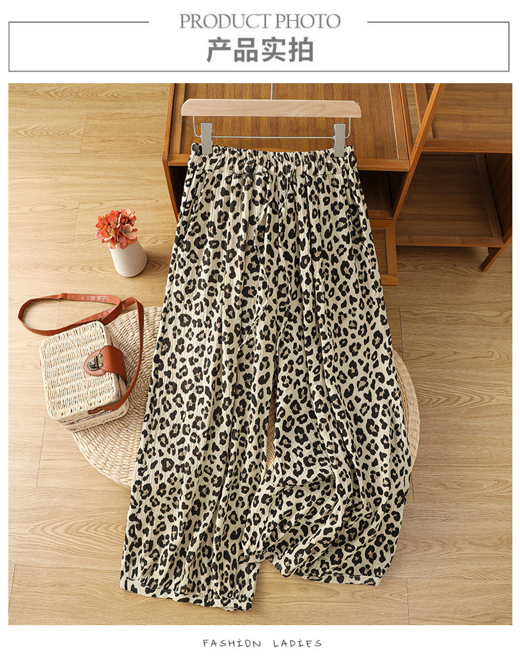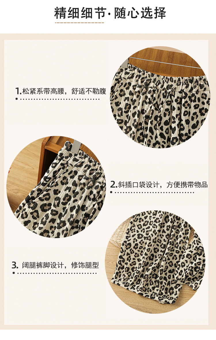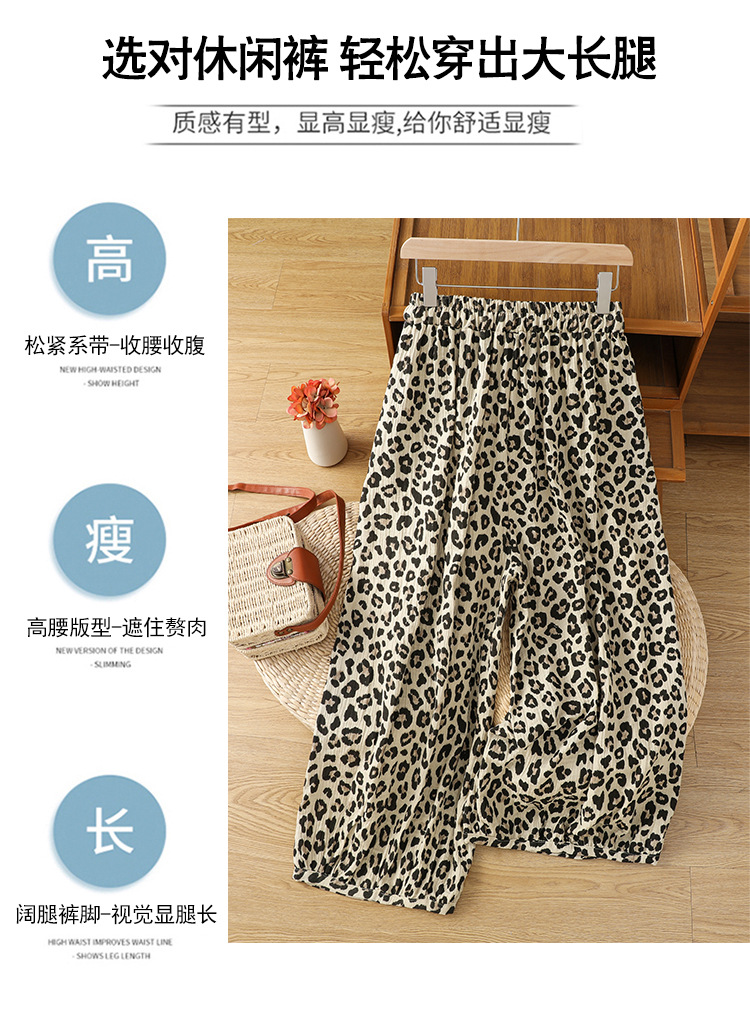 GYH 881豹纹印花松紧腰棉纱阔腿休闲裤灯笼裤