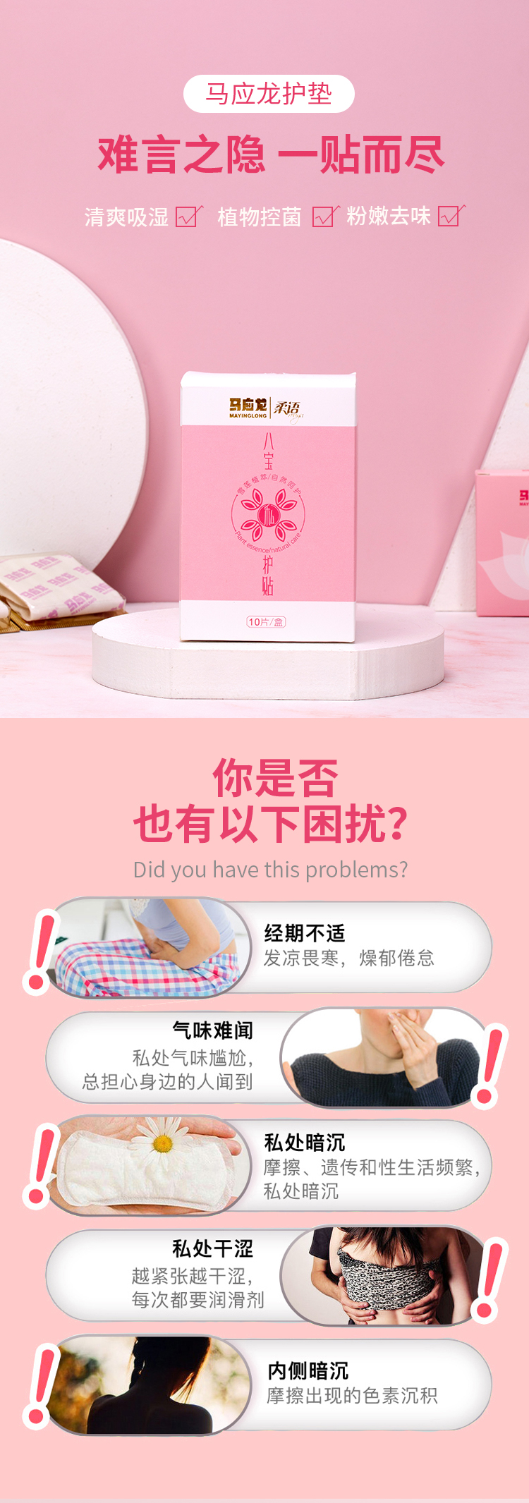 【第2盒半价】马应龙八宝雪莲贴私护养护经前后卫生护垫 妇科护垫去异味经期不调 10片