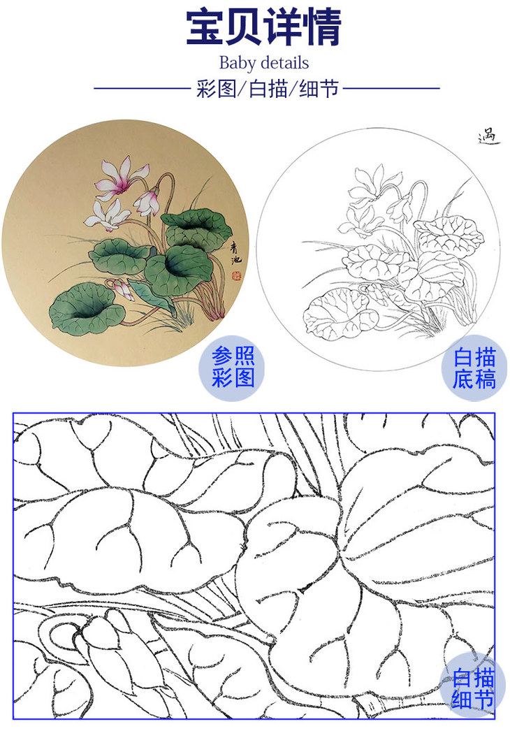 戴青池工笔花鸟小品白描底稿-多种白描尺寸可选-DQ23