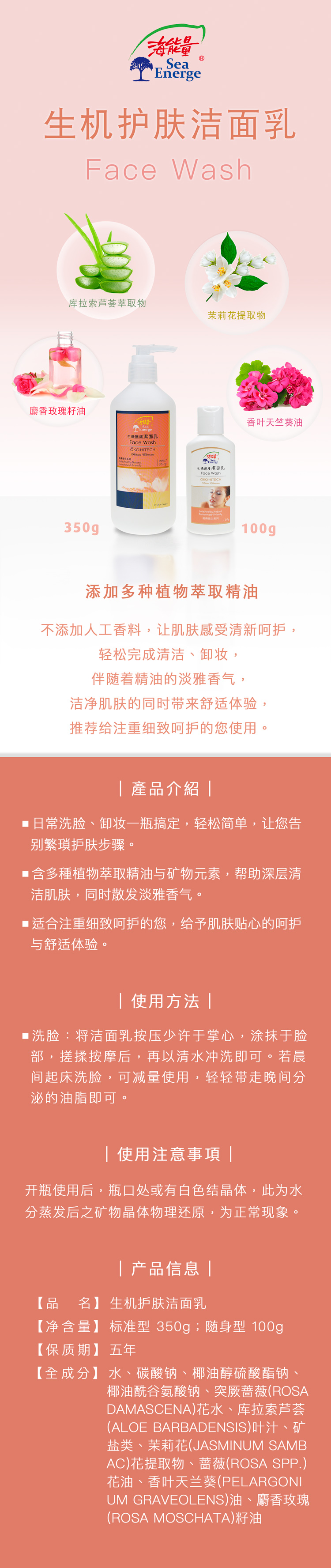生机护肤洁面乳 | 100g/350g 洗面奶 可卸妆 多种植物精油 海能量