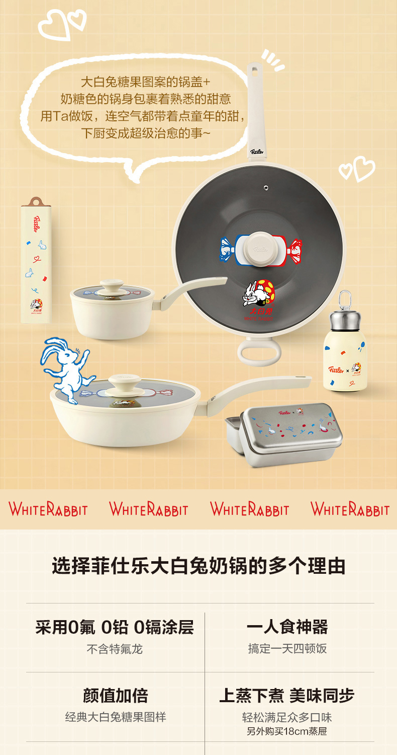 【微店专属联名套组】大白兔IP联名炒锅28cm+奶锅18cm-赠硅胶铲锅垫便当盒便当袋