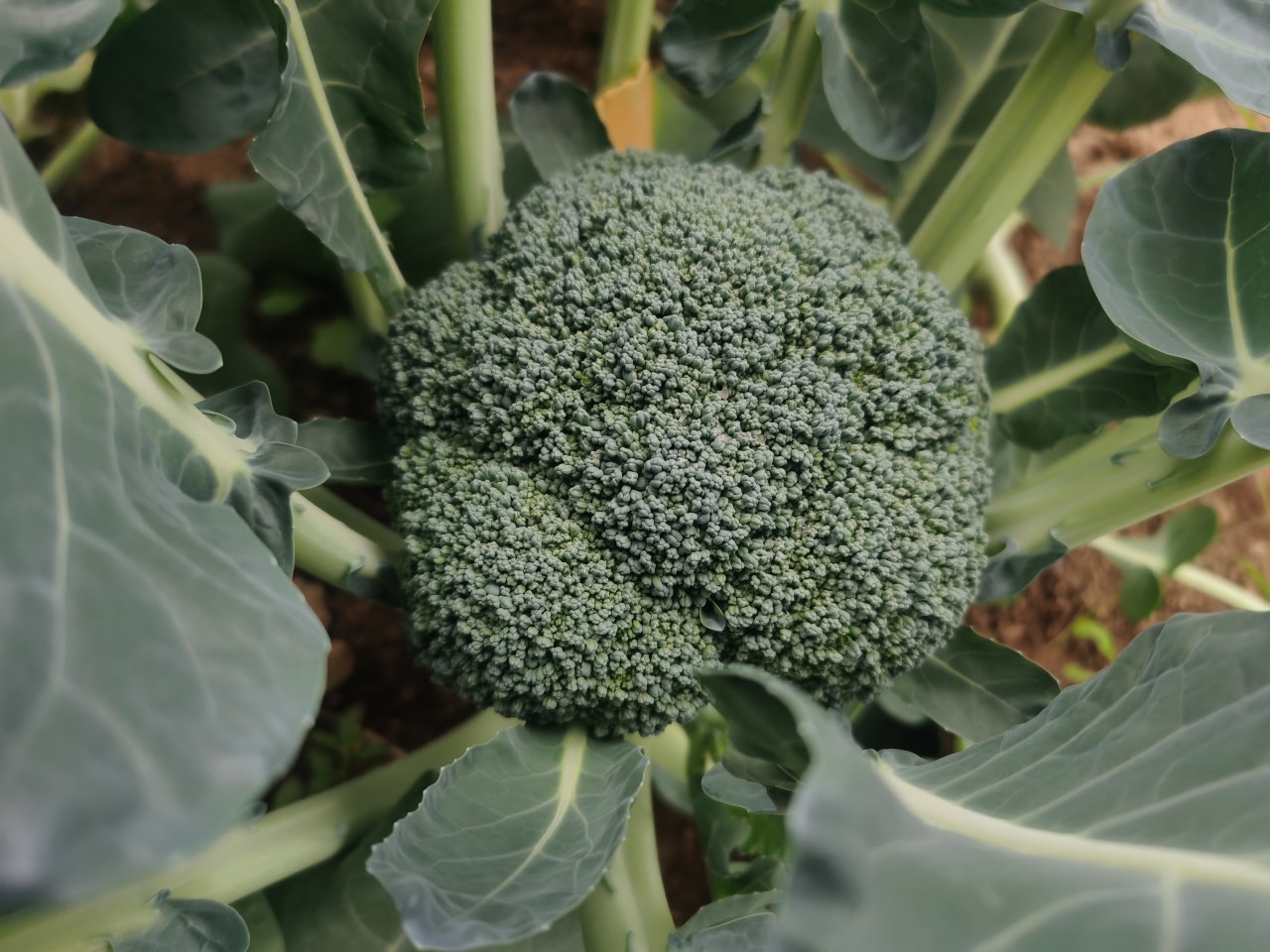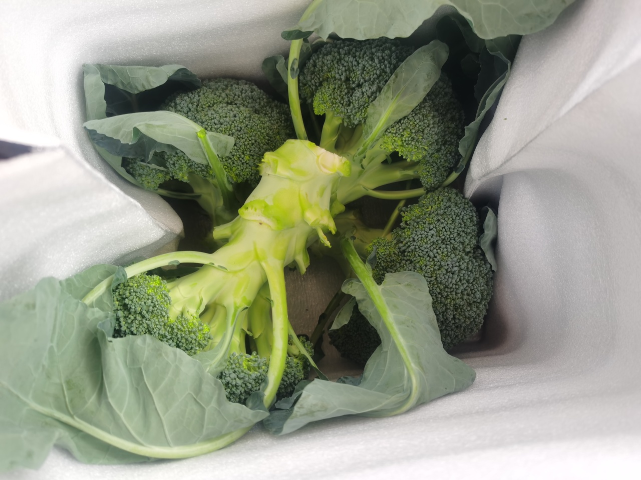 生产方式:西兰花遮雨棚下生态种植,不使用任何的化学农药、化肥、激素,使用多种益生菌类相配合防控病虫害,不盖地膜,人工除草。