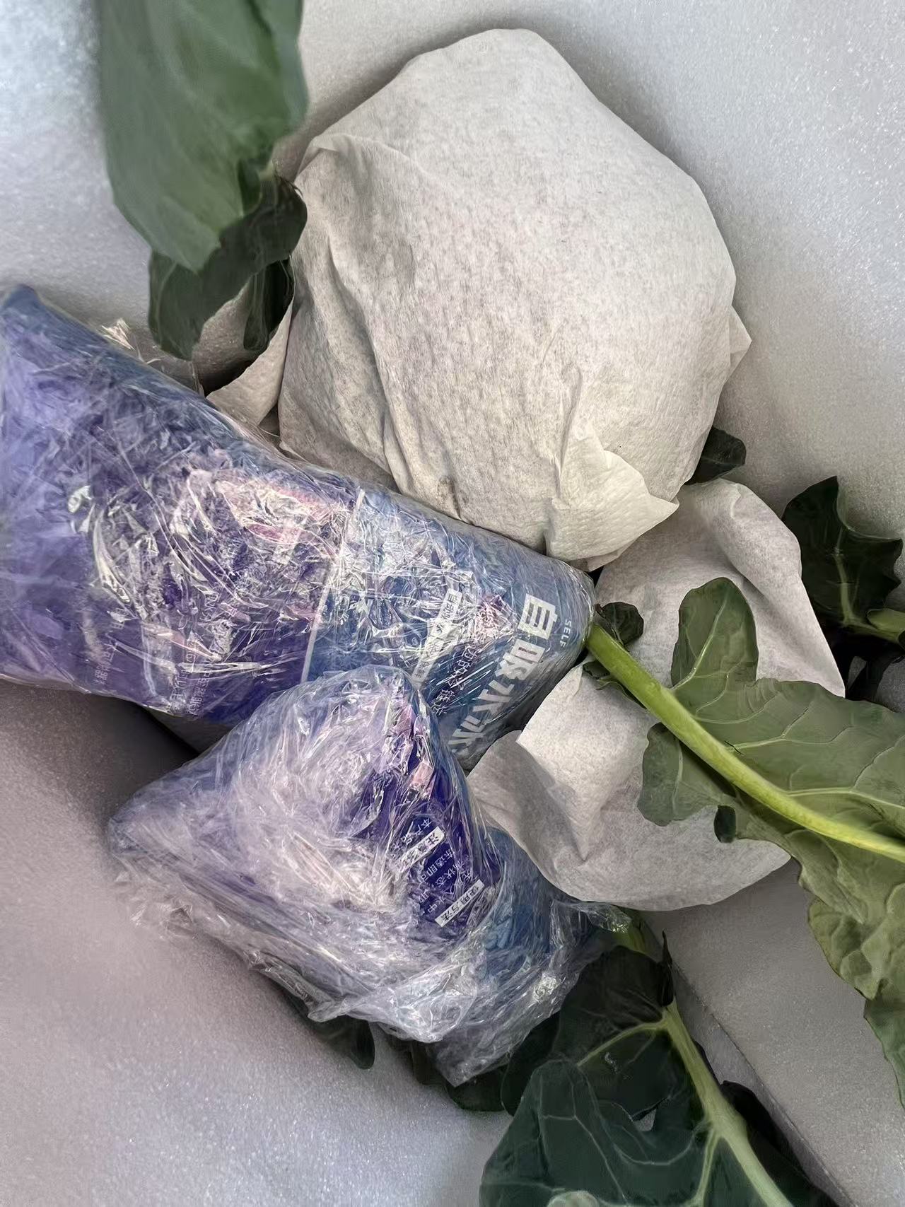 3、为了保鲜,发货时会带一些嫩茎叶,茎会给花持续供应水分和营养,减缓变黄的速度。茎很嫩,营养价值高,口感类似莴苣,也可食用。