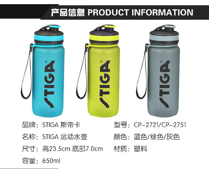 STIGA斯帝卡 专业运动水壶 许昕大赛同款(650ML)